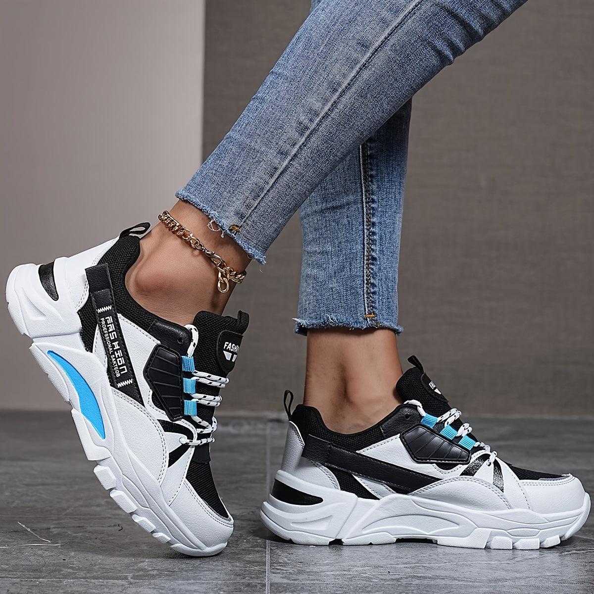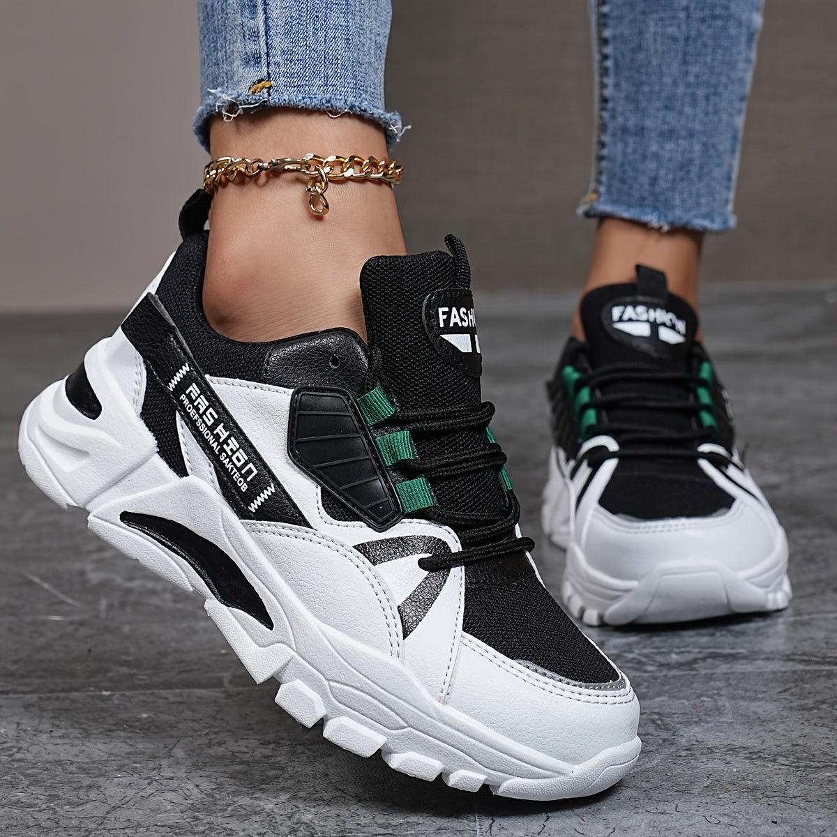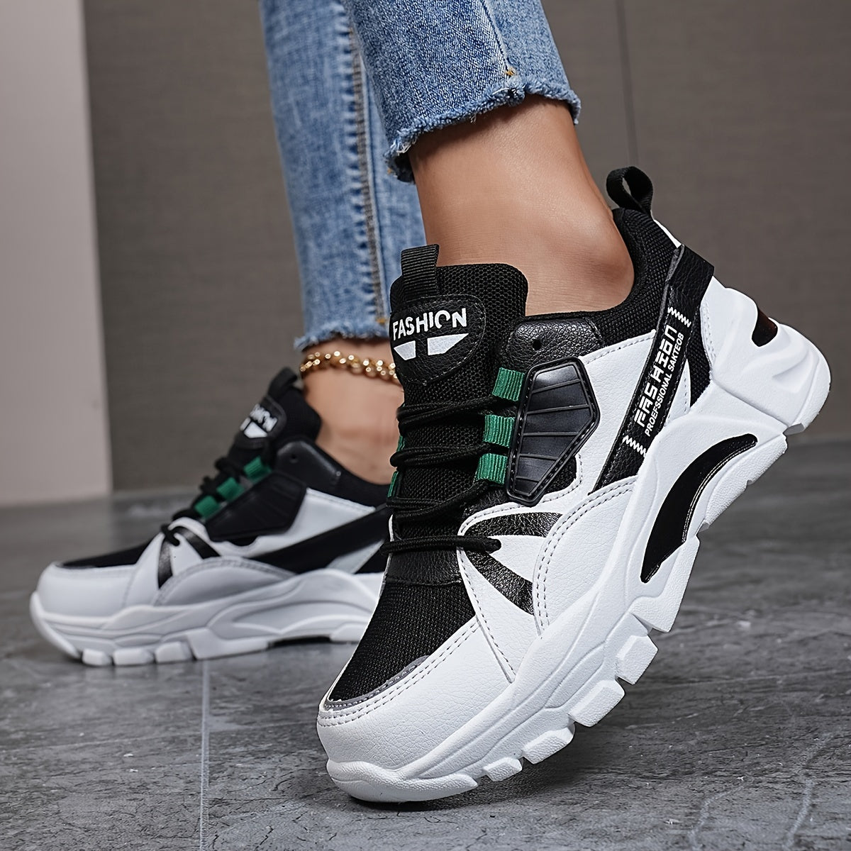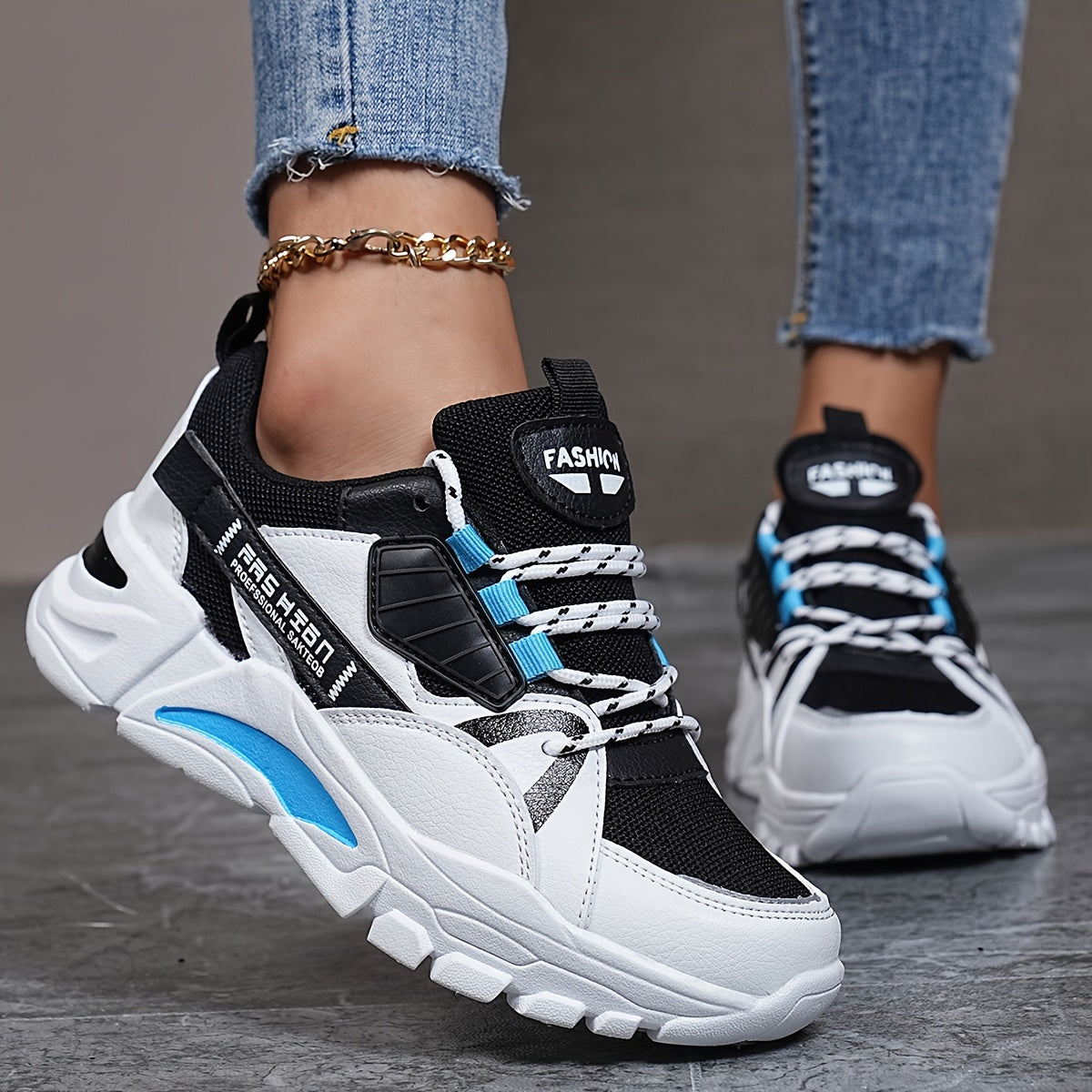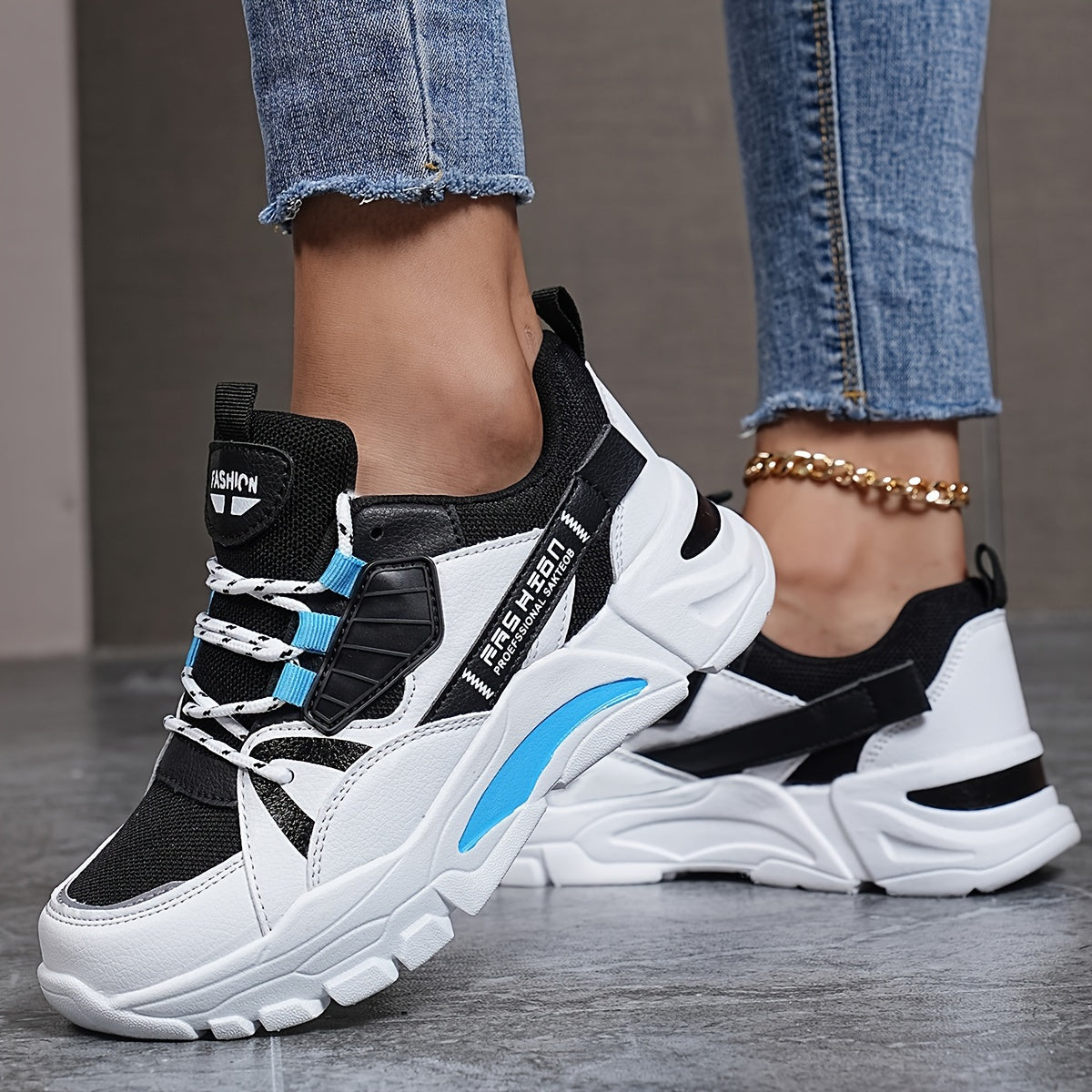 Women's Fashion Sneakers Geometric Pattern Low-Top with EVA Sole, Lace-Up Casual Sports Shoes, Hand-Washable Fabric Inner, All-Season Comfort Footwear with Plain Toe Design
