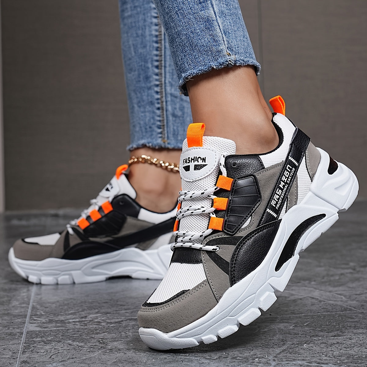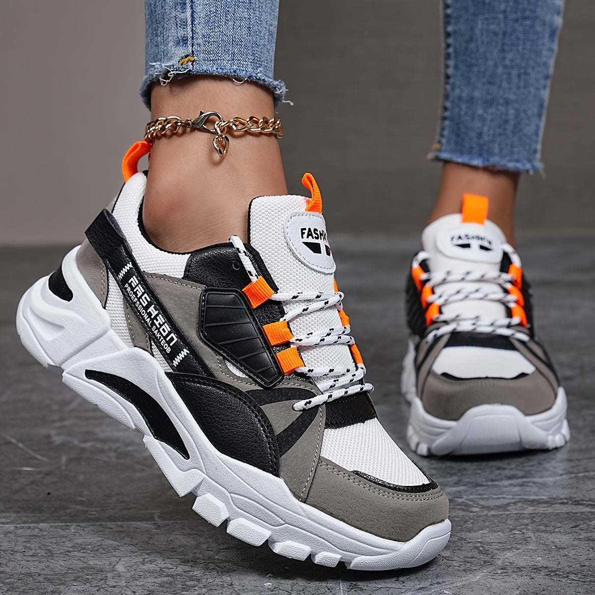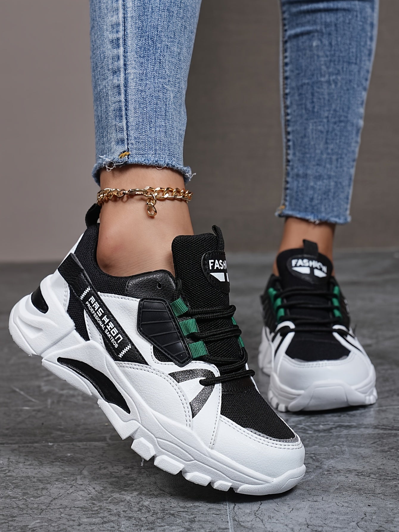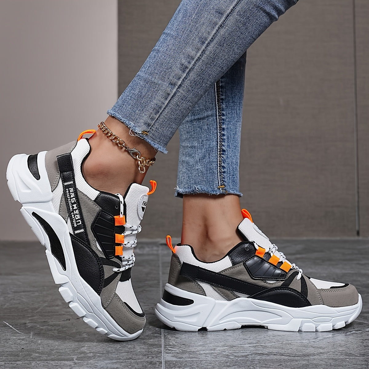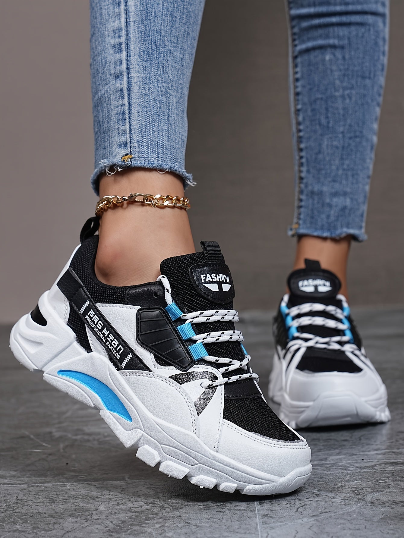 Women's Fashion Sneakers Geometric Pattern Low-Top with EVA Sole, Lace-Up Casual Sports Shoes, Hand-Washable Fabric Inner, All-Season Comfort Footwear with Plain Toe Design