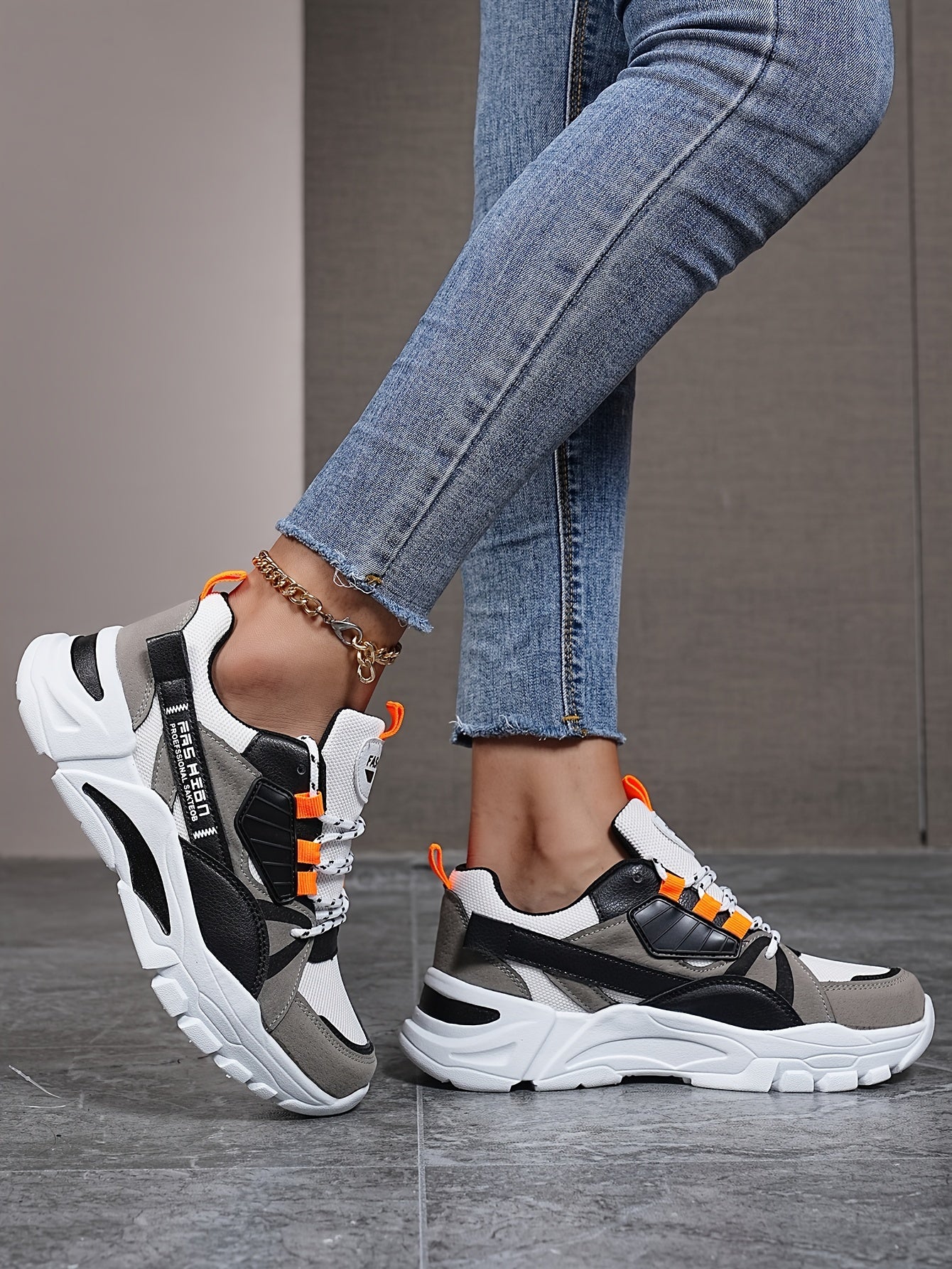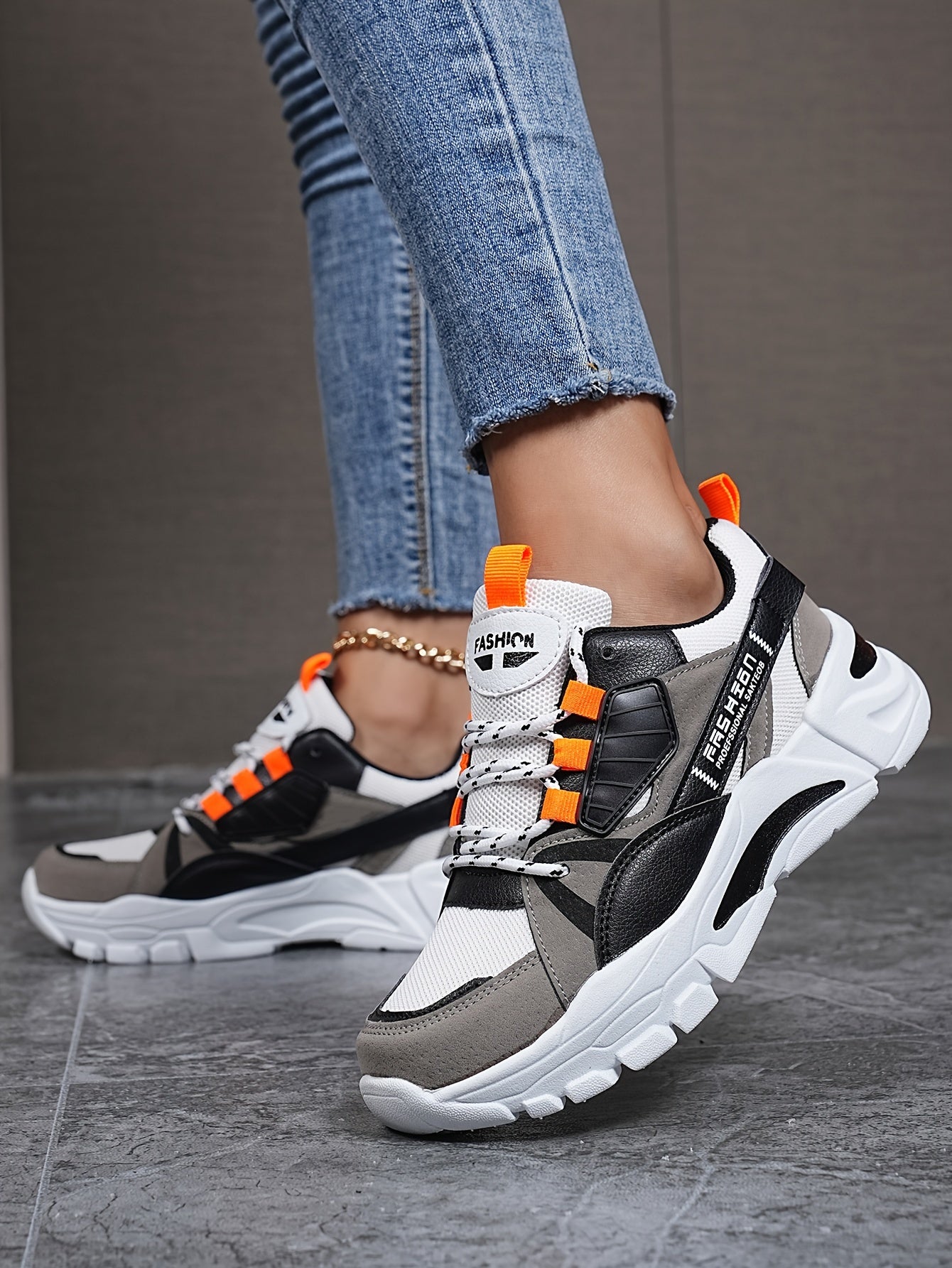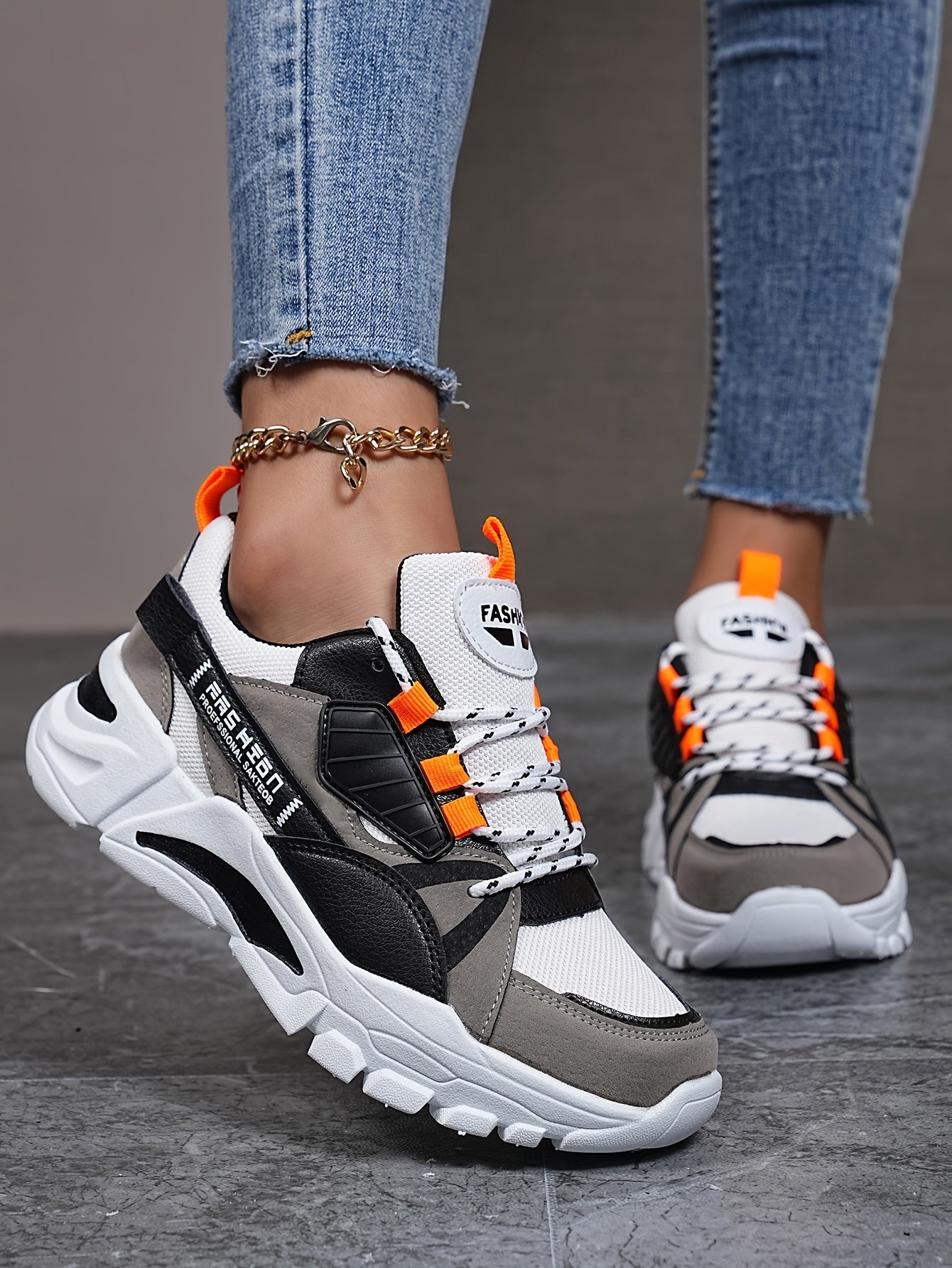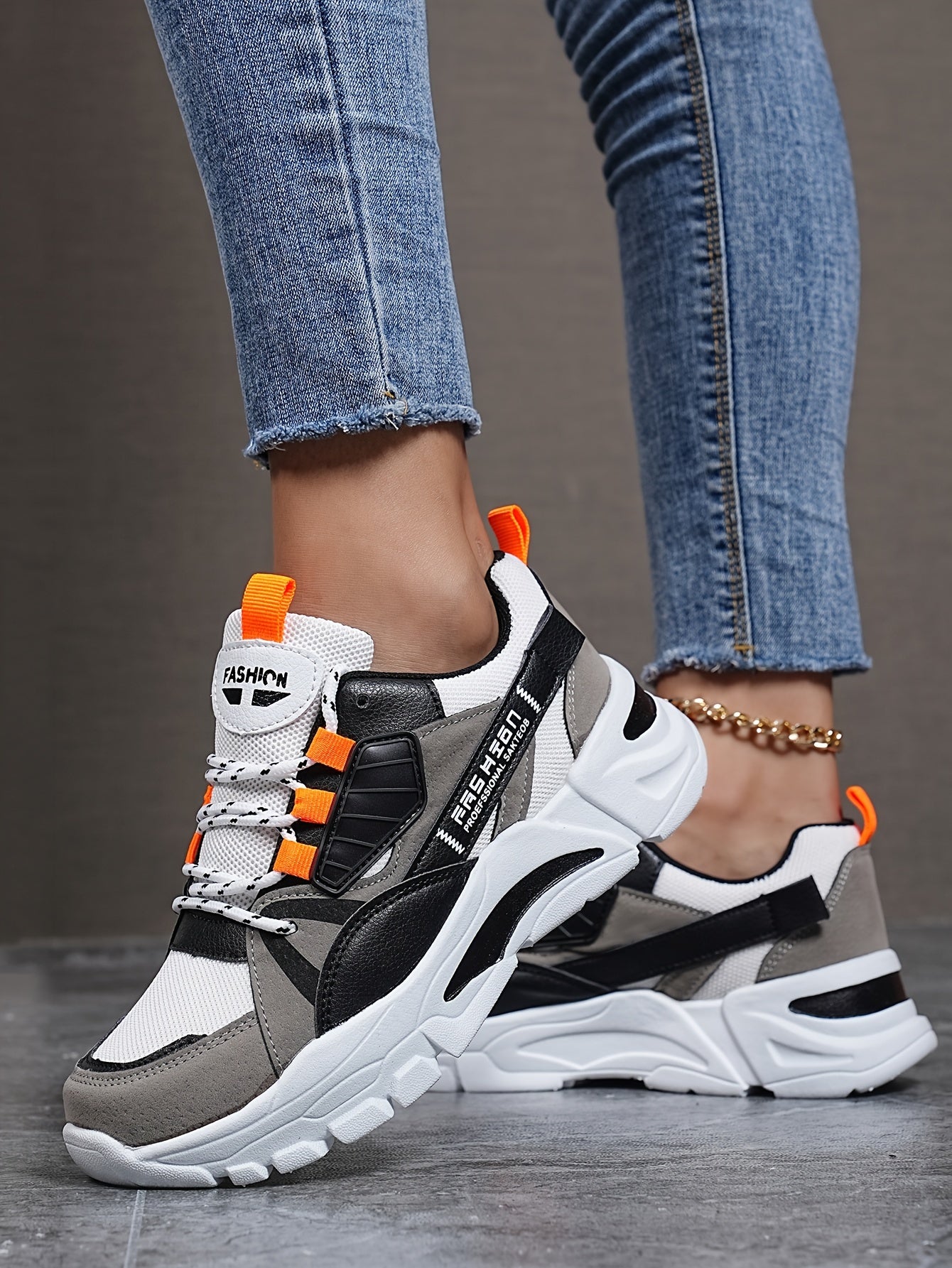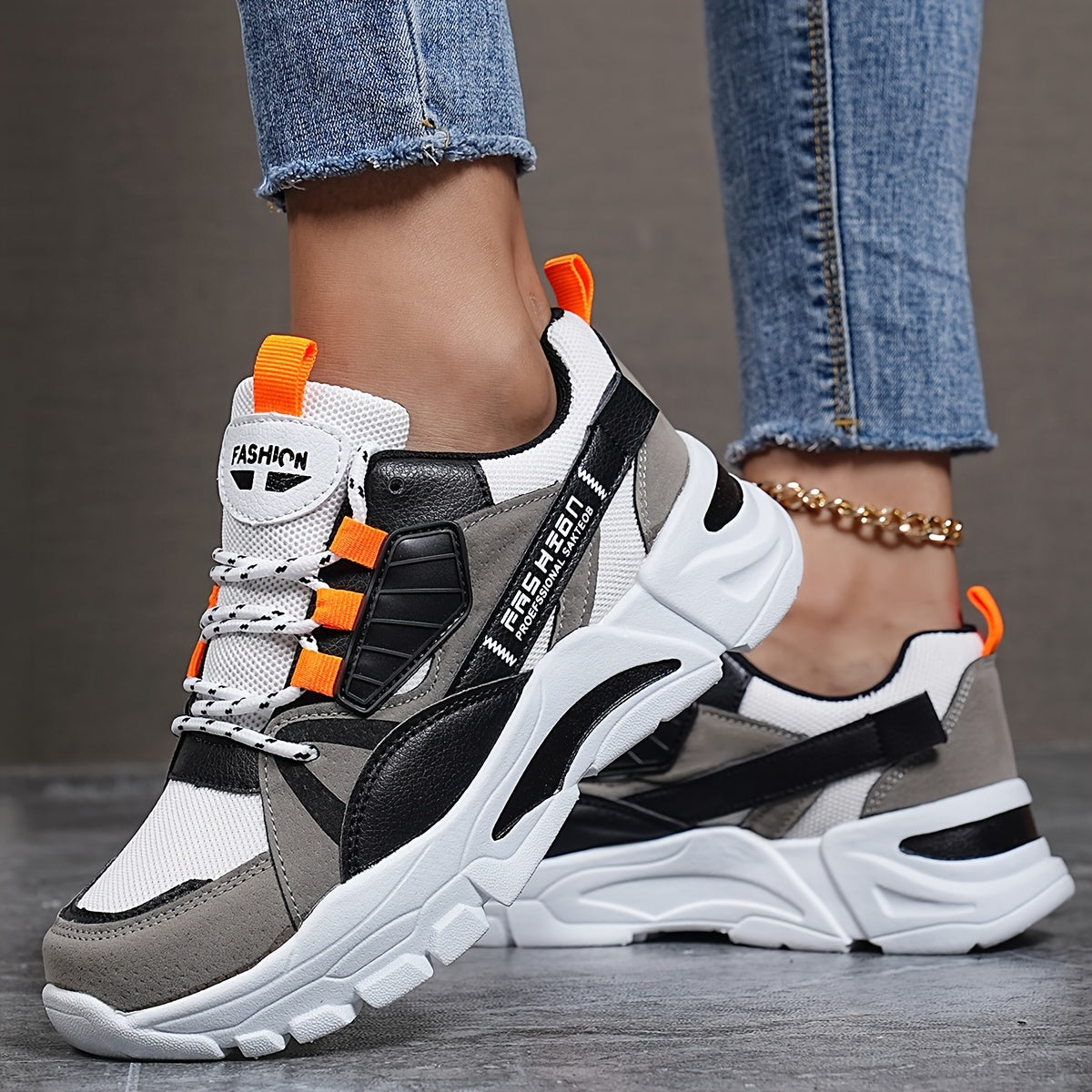 Women's Fashion Sneakers Geometric Pattern Low-Top with EVA Sole, Lace-Up Casual Sports Shoes, Hand-Washable Fabric Inner, All-Season Comfort Footwear with Plain Toe Design