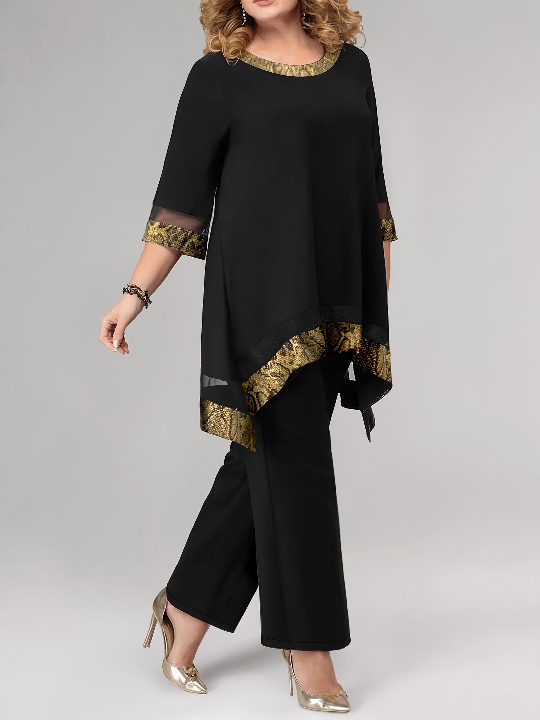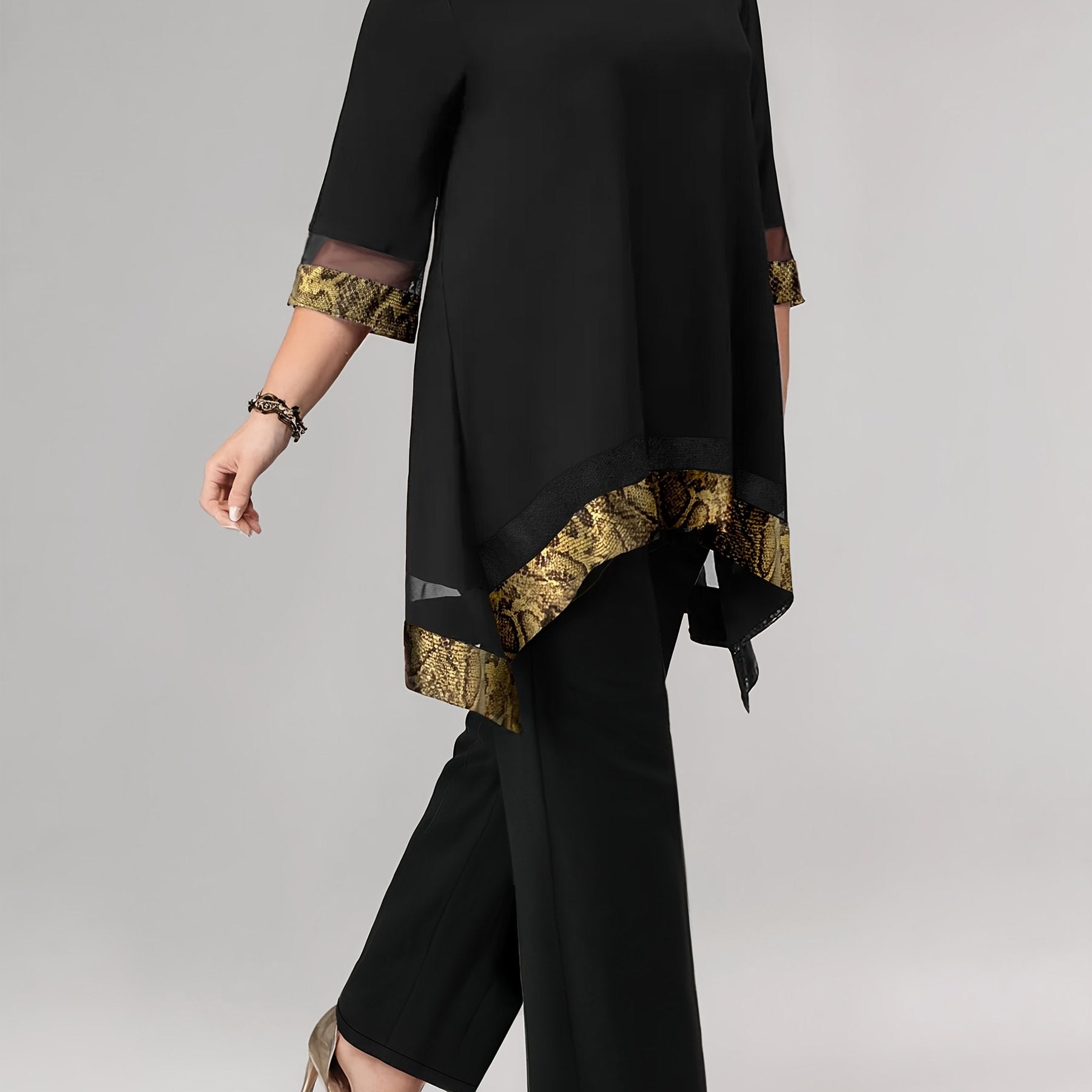Women'S Fashion Solid Color Mesh Splicing Top Plus Trousers, Two-Piece Suit for Daily Elegance