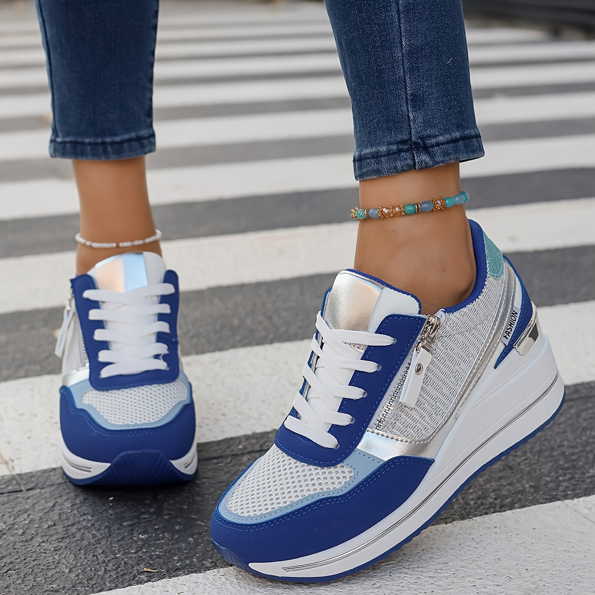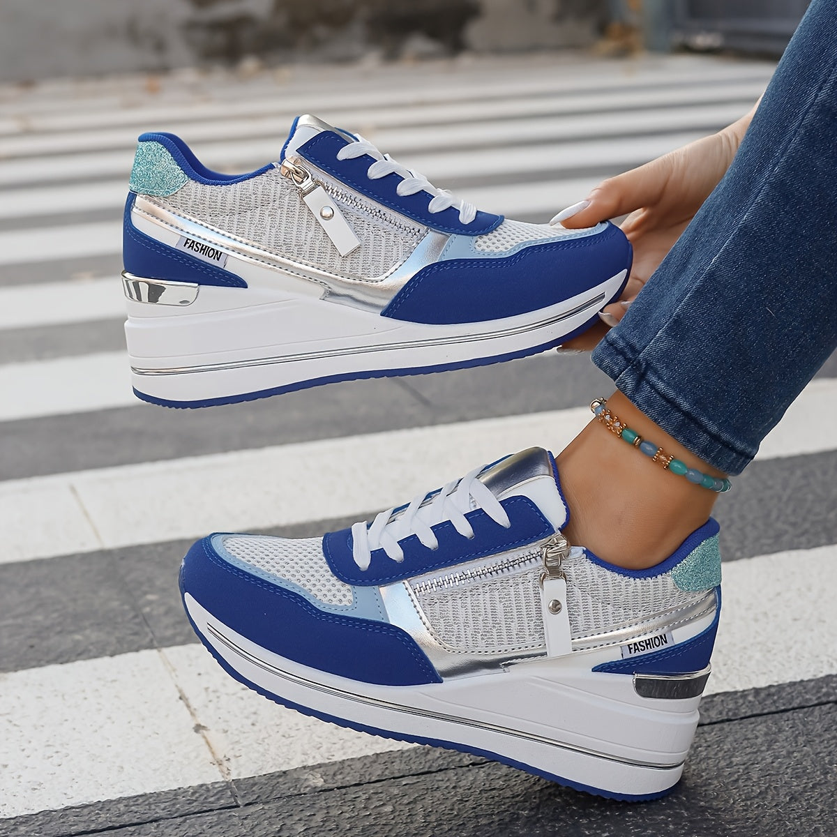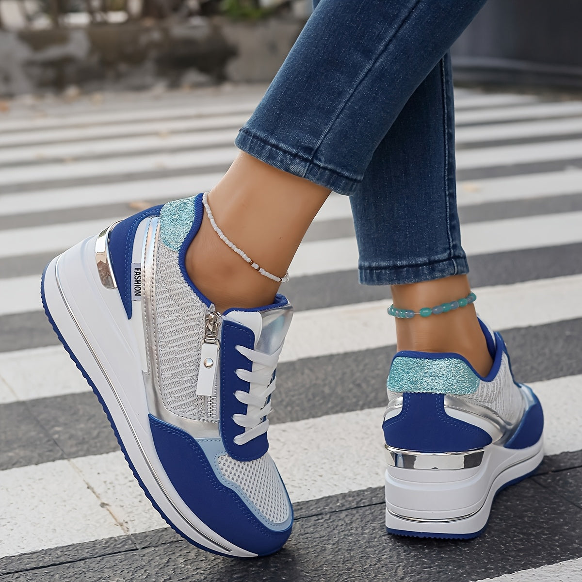 Women'S Fashionable Atmospheric Casual Shoes, Thickened Heightened Non-Slip Anti-Slippery Durable, Blue, with Stabilizing Support, Mesh Fabric Upper, Man Made Materials (Polyurethane) Upper, Fabric Inner, PVC Sole, Fabric Ins