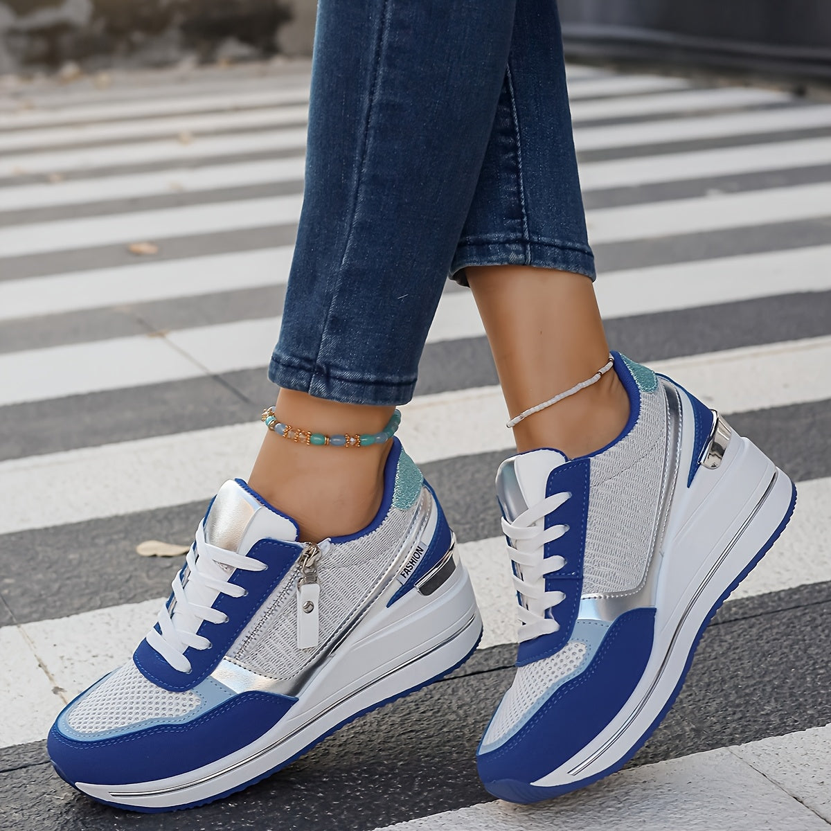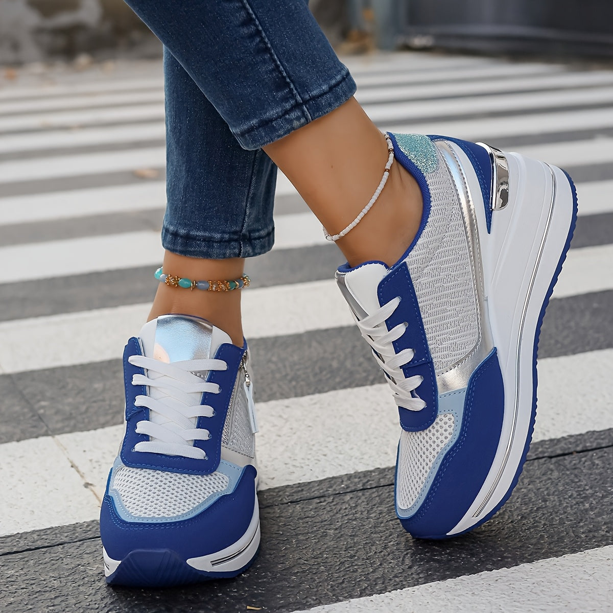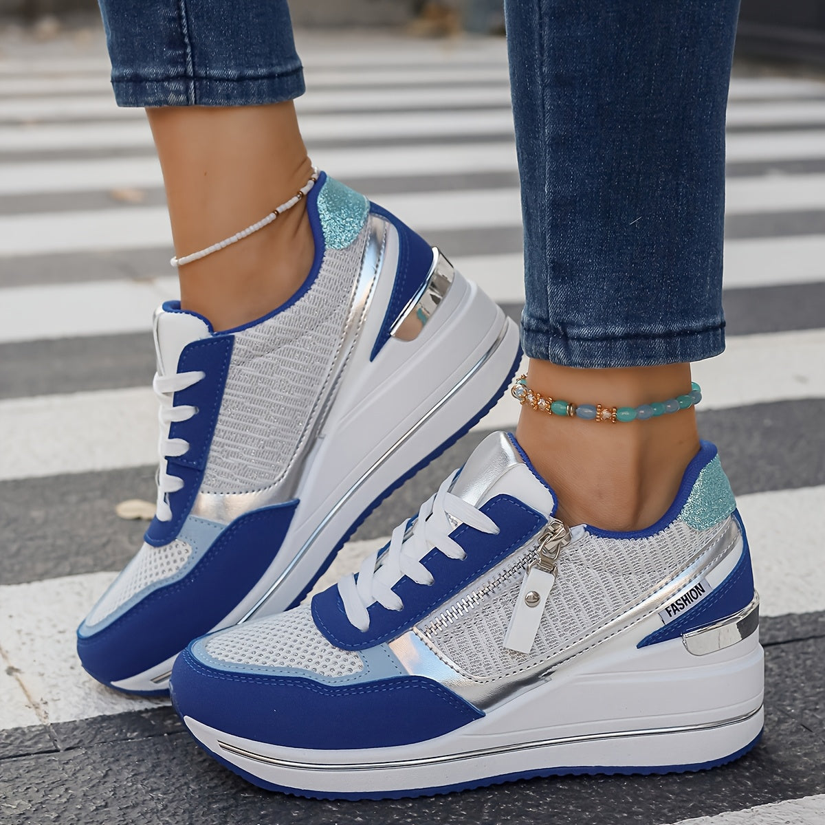 Women'S Fashionable Atmospheric Casual Shoes, Thickened Heightened Non-Slip Anti-Slippery Durable, Blue, with Stabilizing Support, Mesh Fabric Upper, Man Made Materials (Polyurethane) Upper, Fabric Inner, PVC Sole, Fabric Ins
