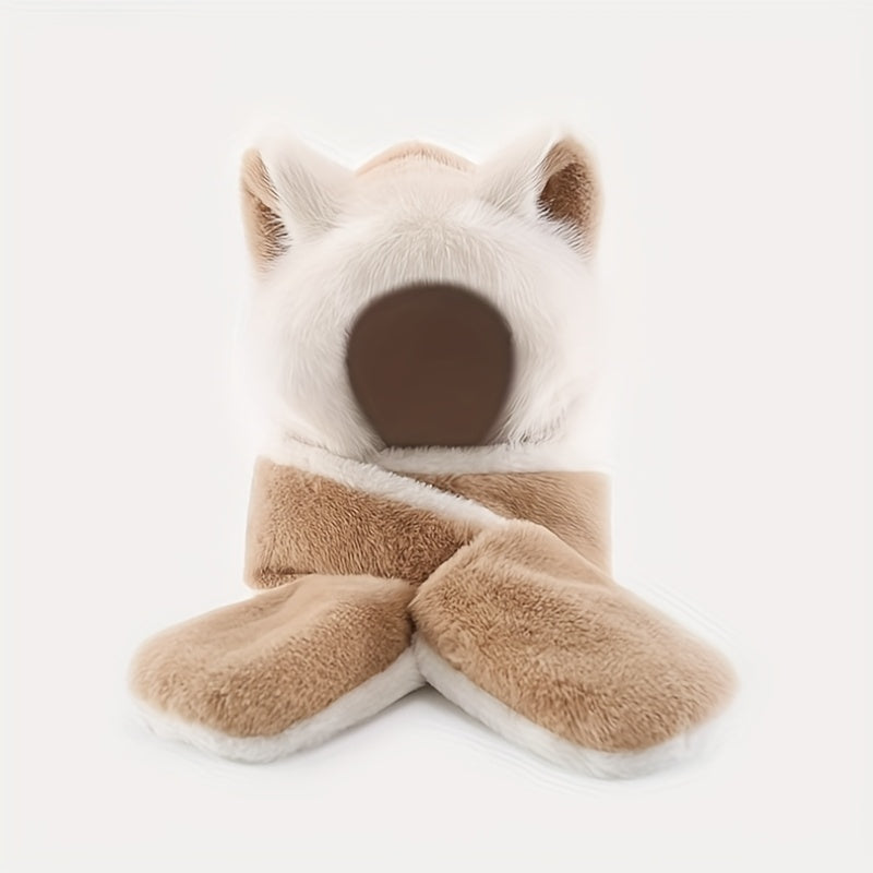 Women's Fox Ear Hat 3-in-1 with Scarf & Gloves - Winter Warm Windproof Cute Fox Ears, Lightweight Jacket-Compatible for cold Weather, Hand Washable Maomao Hat for, New Year & Holiday Outfits (Non-Stretch)