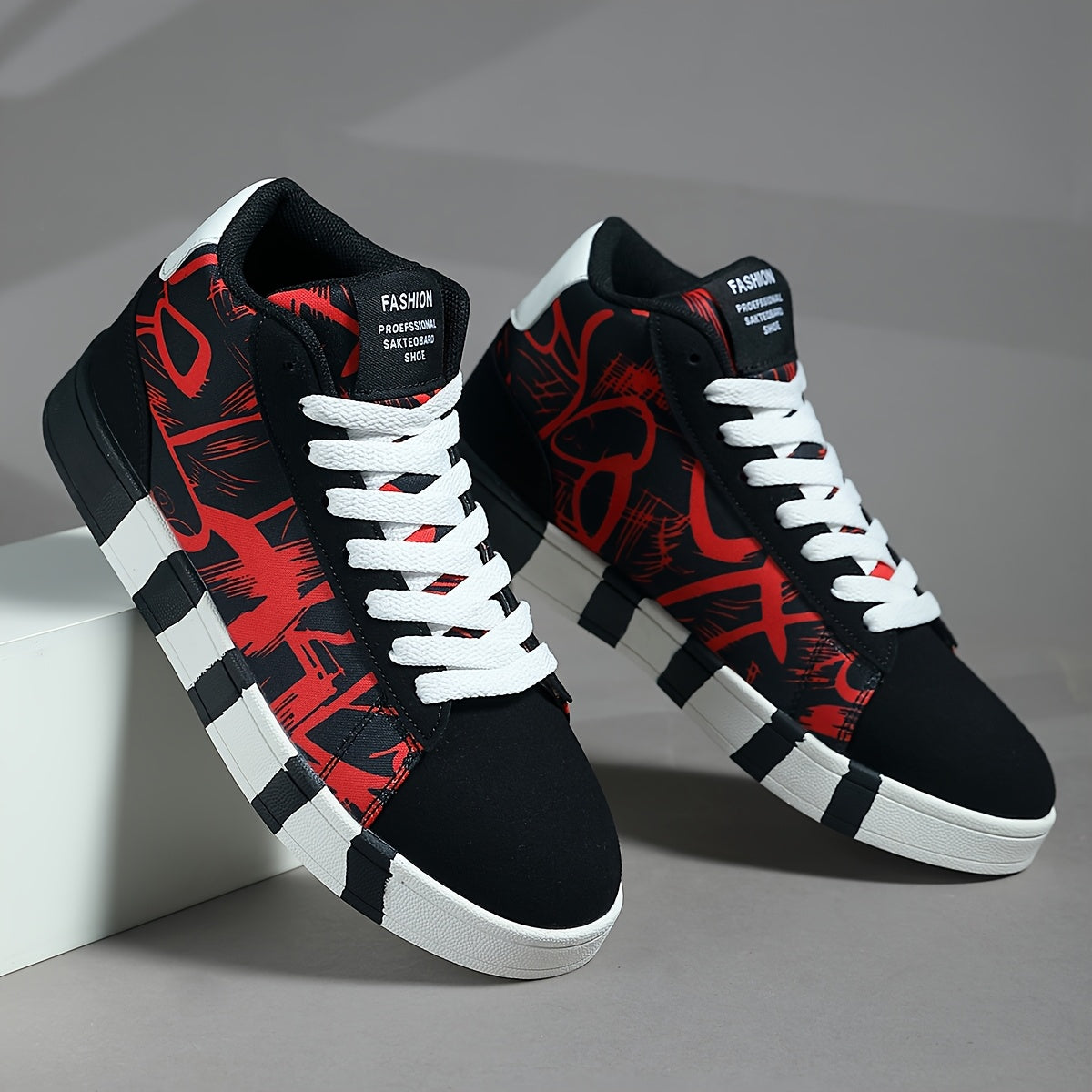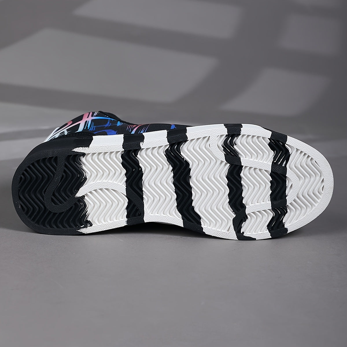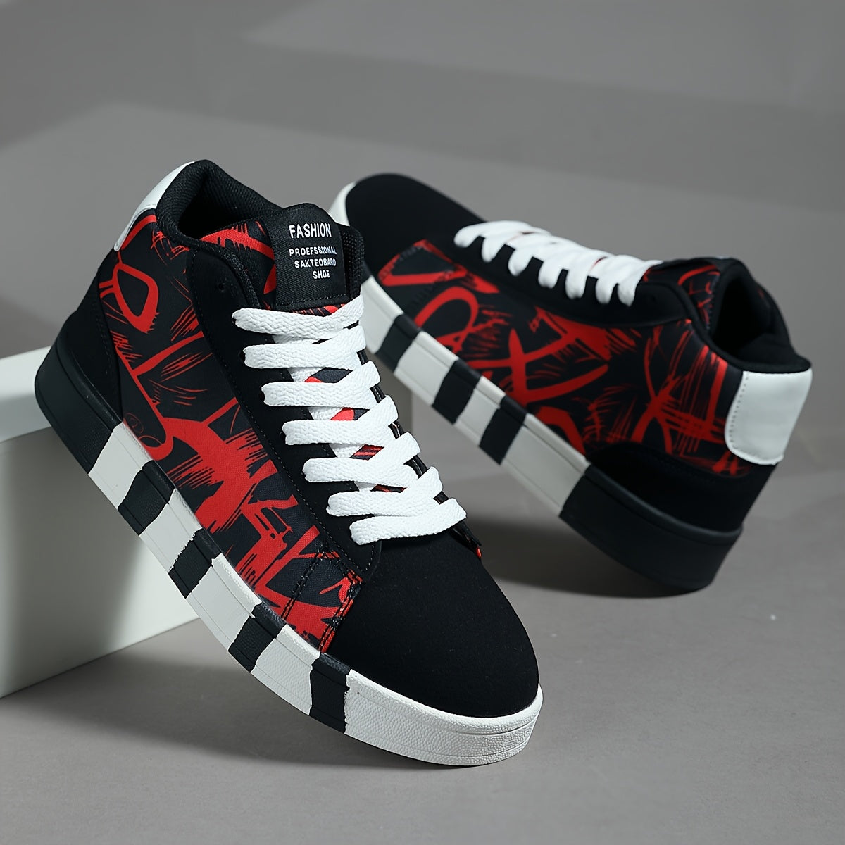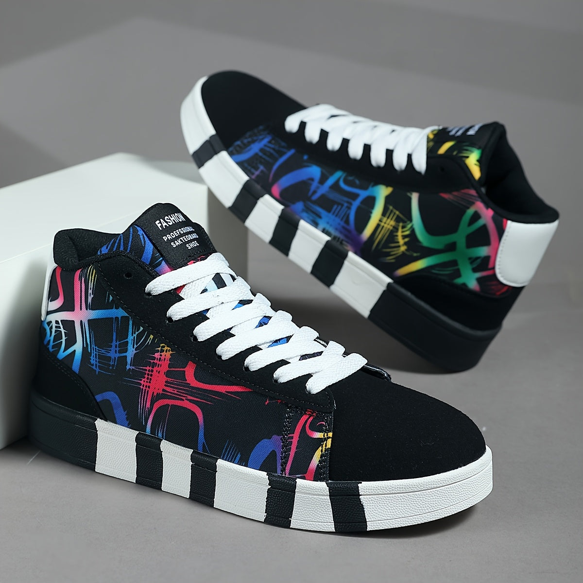 Women'S High-Top Casual Skate Shoes, Black and White Graffiti Design, Lightweight Fabric Lining, All-Season Rubber Sole Sneakers for Outdoor Sports and Hiking, Skate Shoes