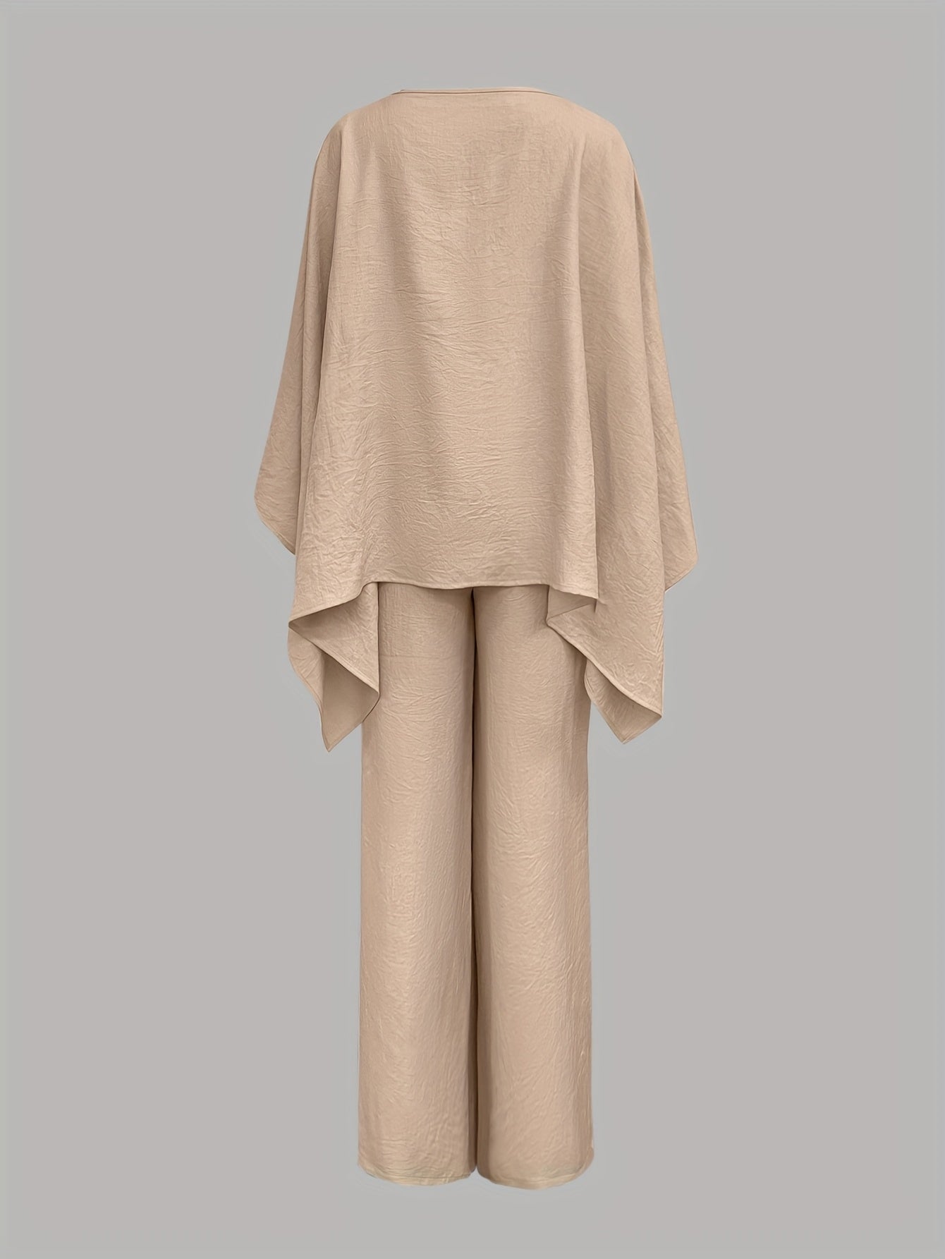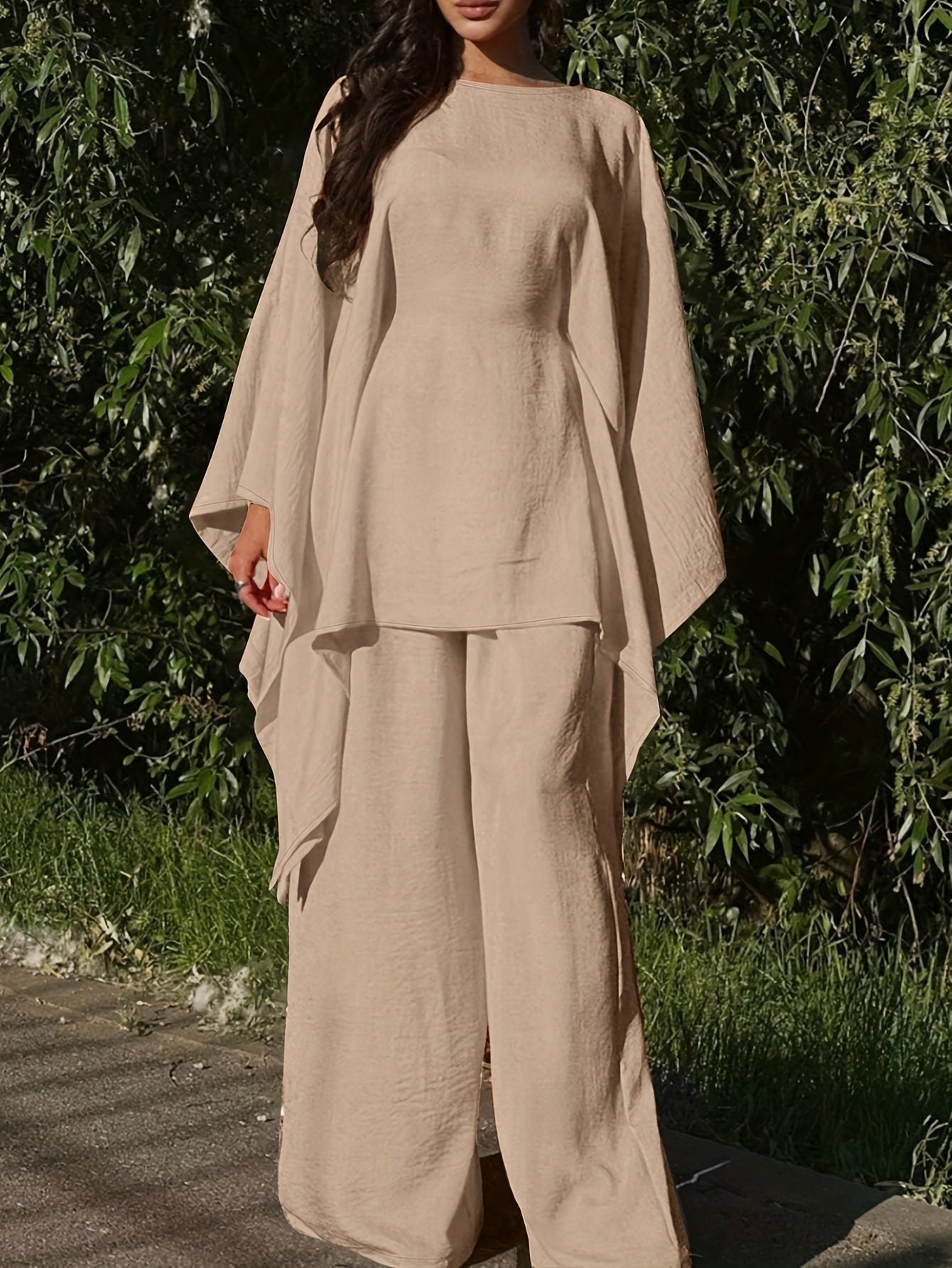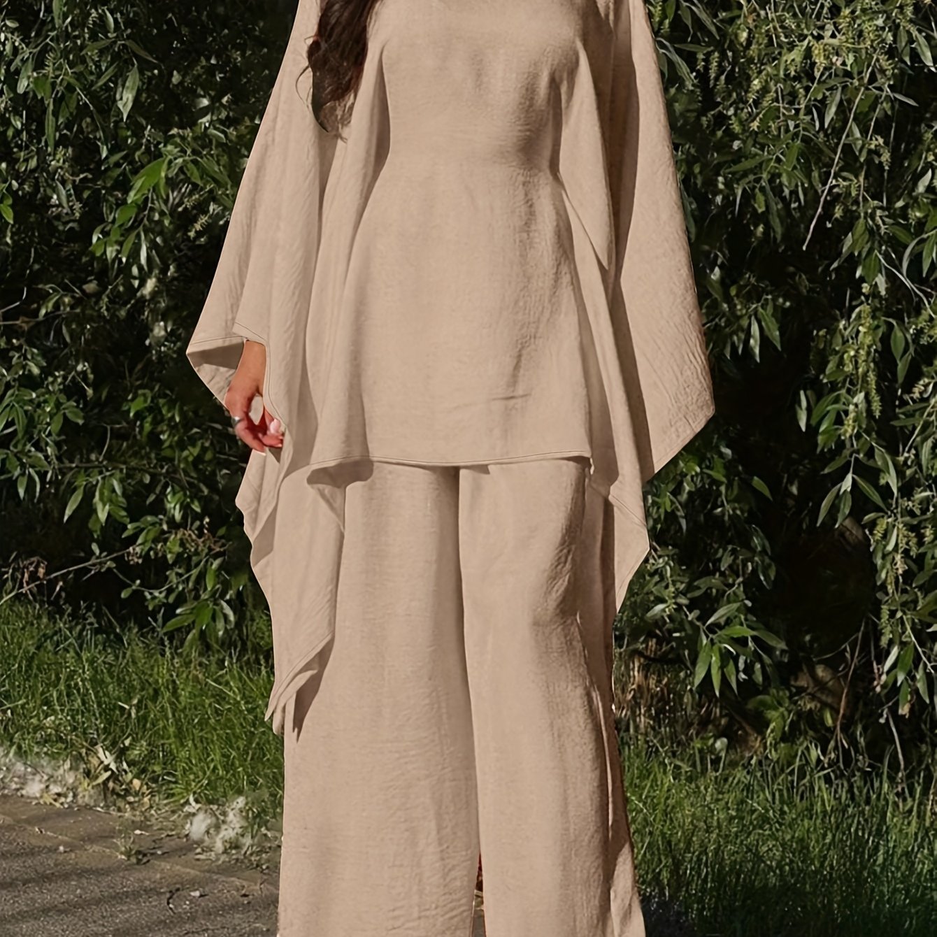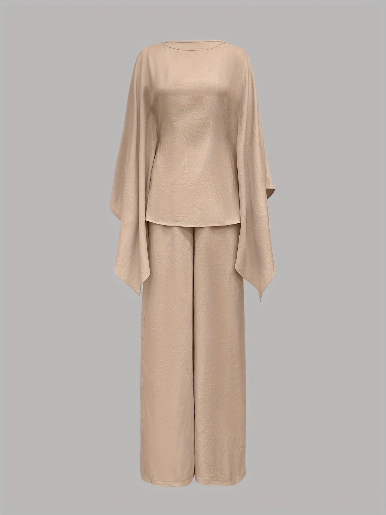 Women'S Holiday Casual Elegant Waist-Cinched Batwing Sleeve Loose Set - Solid Color, All-Season, Allseason Attire|Casual Elegance|Waist Cinching