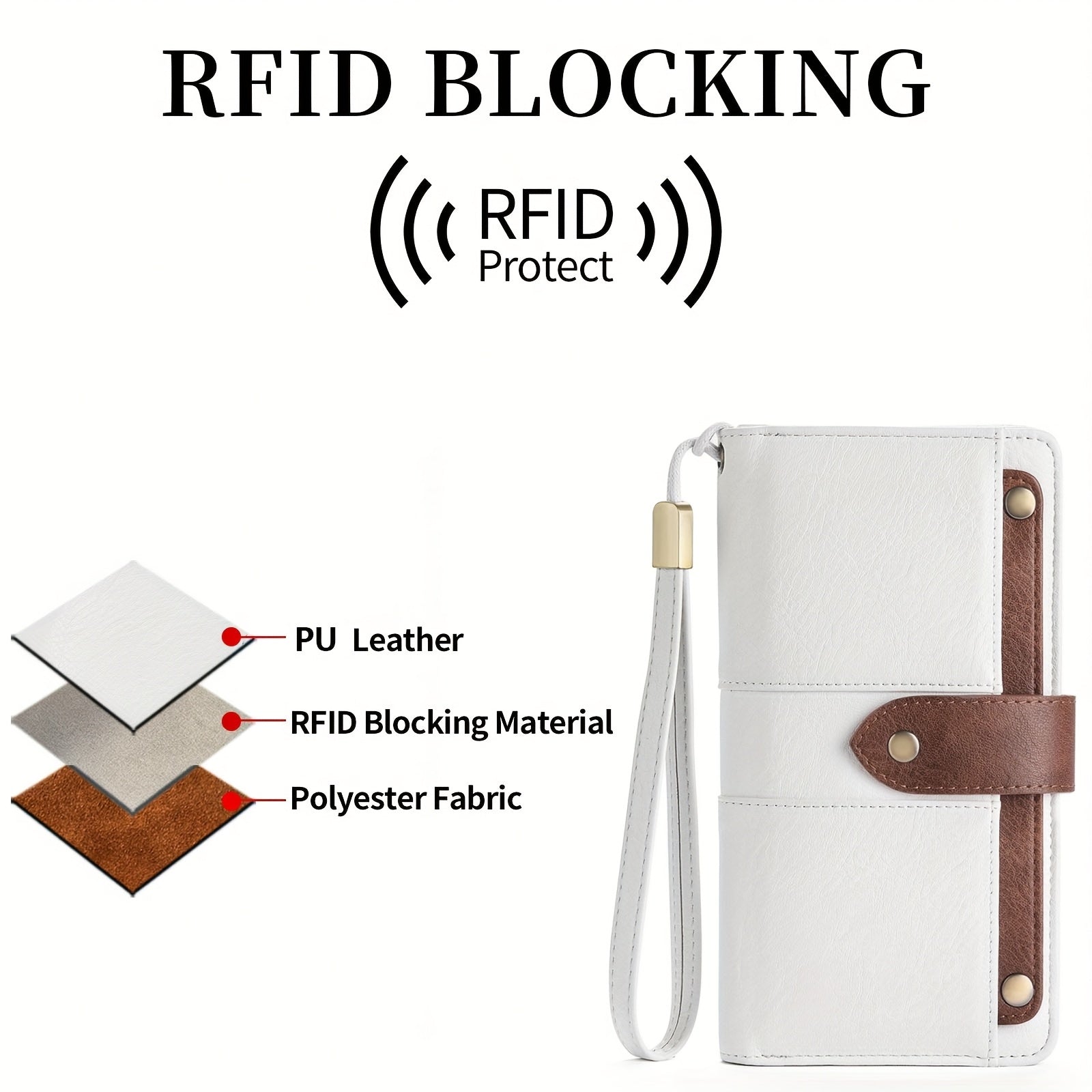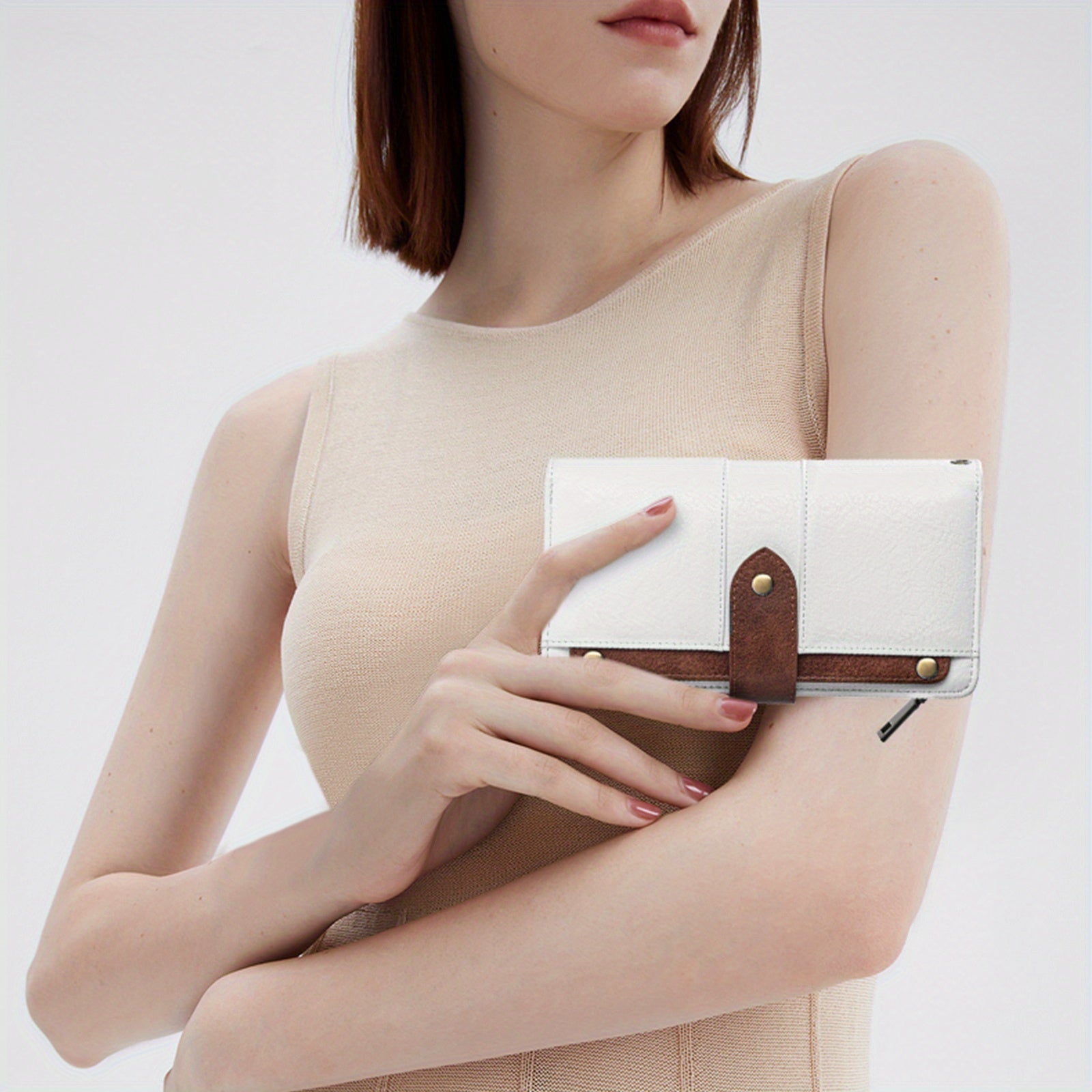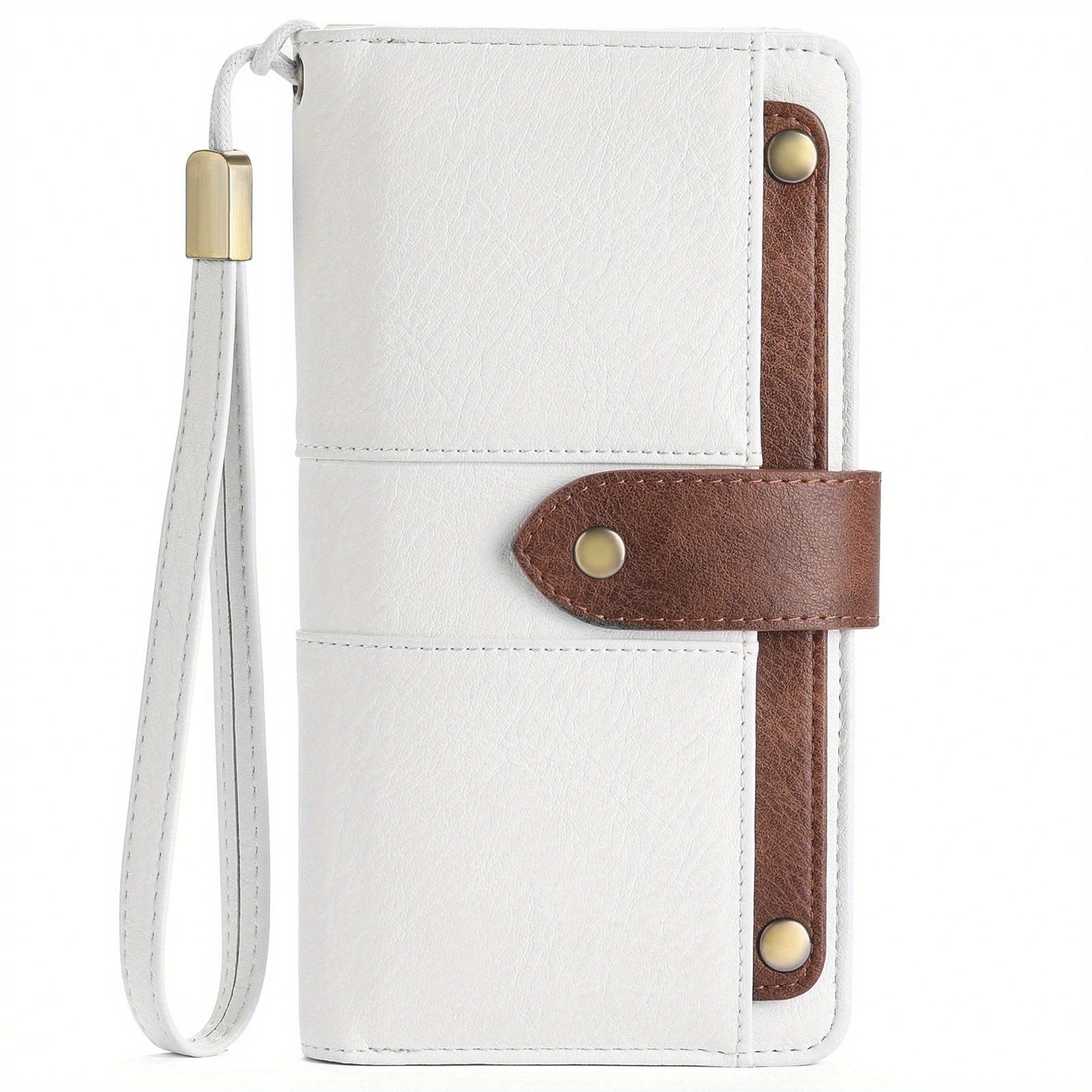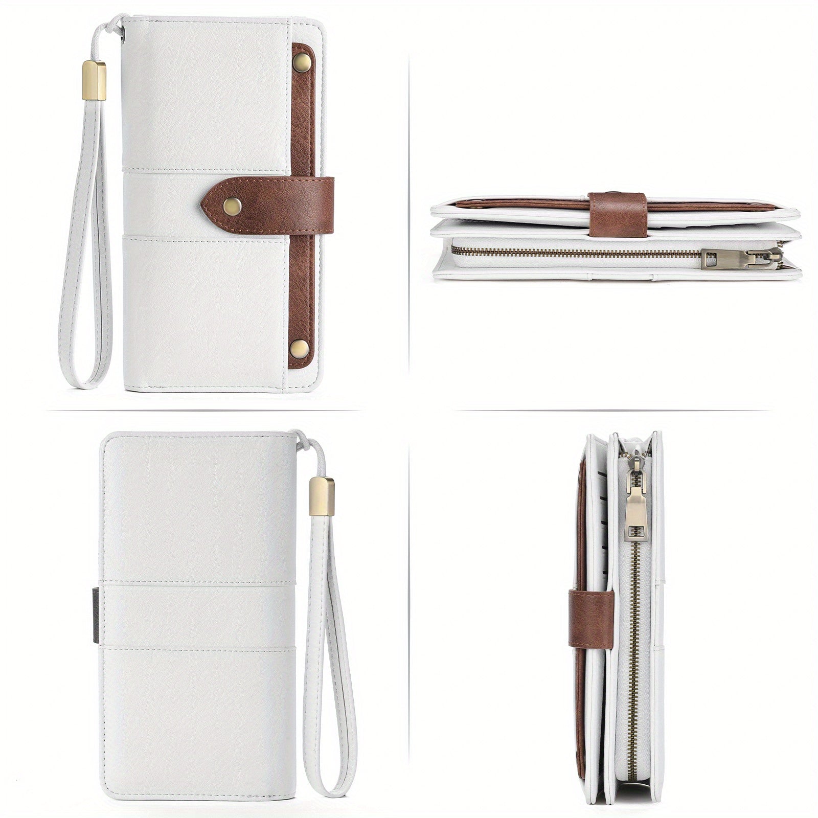 Women's Large Capacity Wallet Handbag with Wrist Strap - Elegant White & Golden-Tone Long Wallet, Golden-Tone Hardware, Multi-Compartment Organizer with Cash Pocket & Card Holder for Everyday Use, School, Work, Travel - Styli