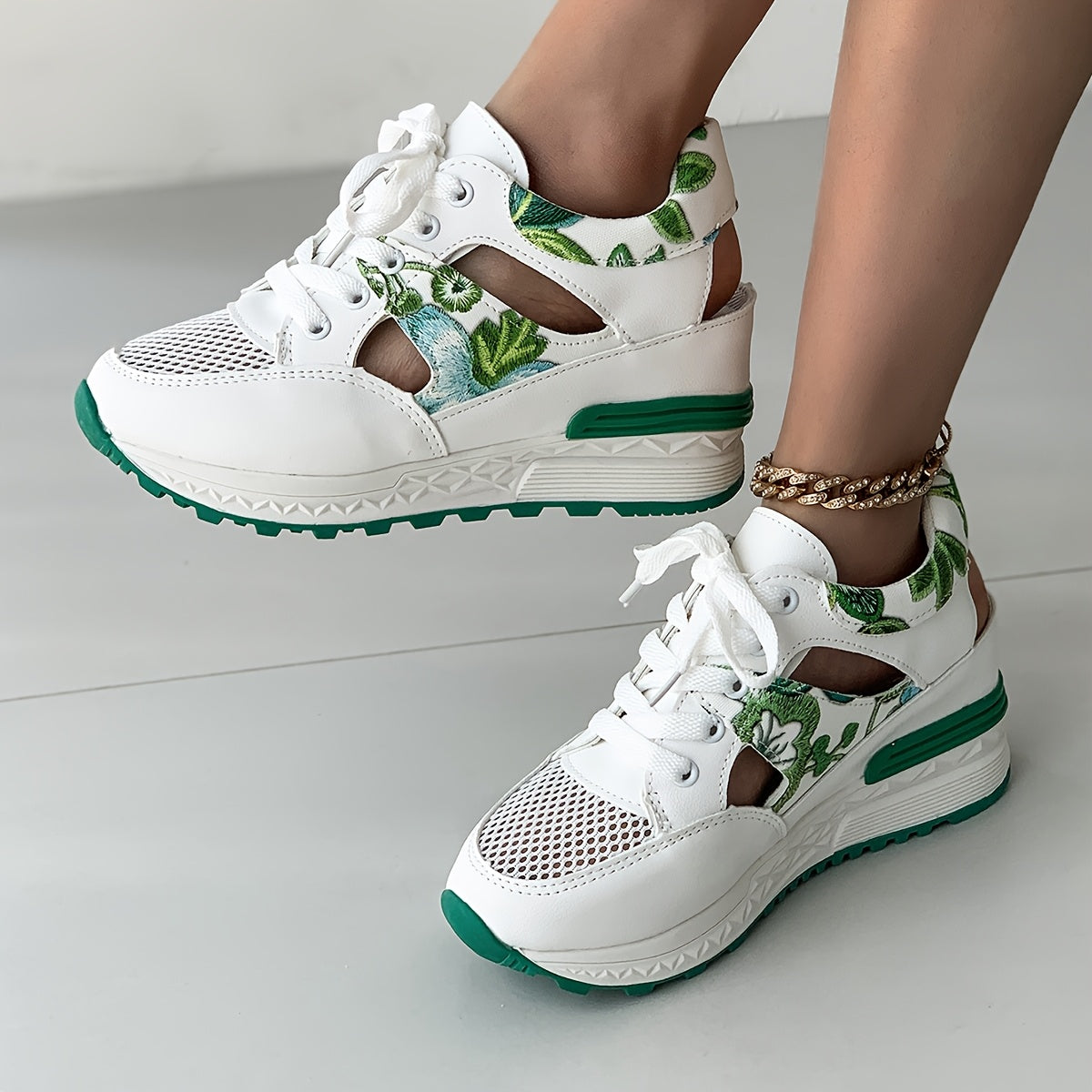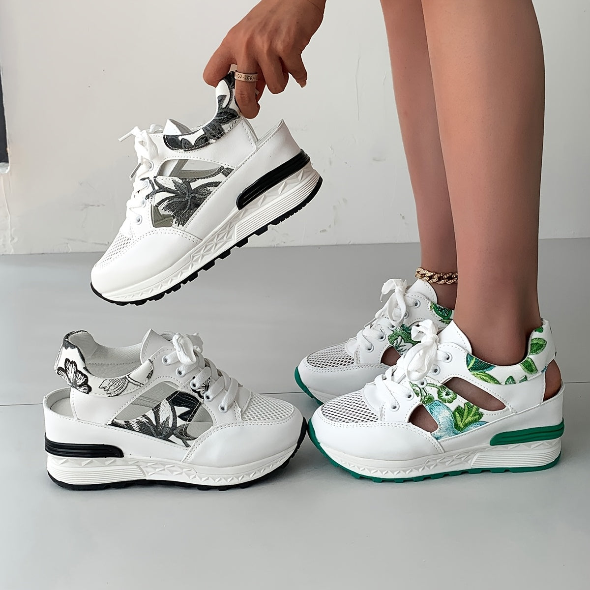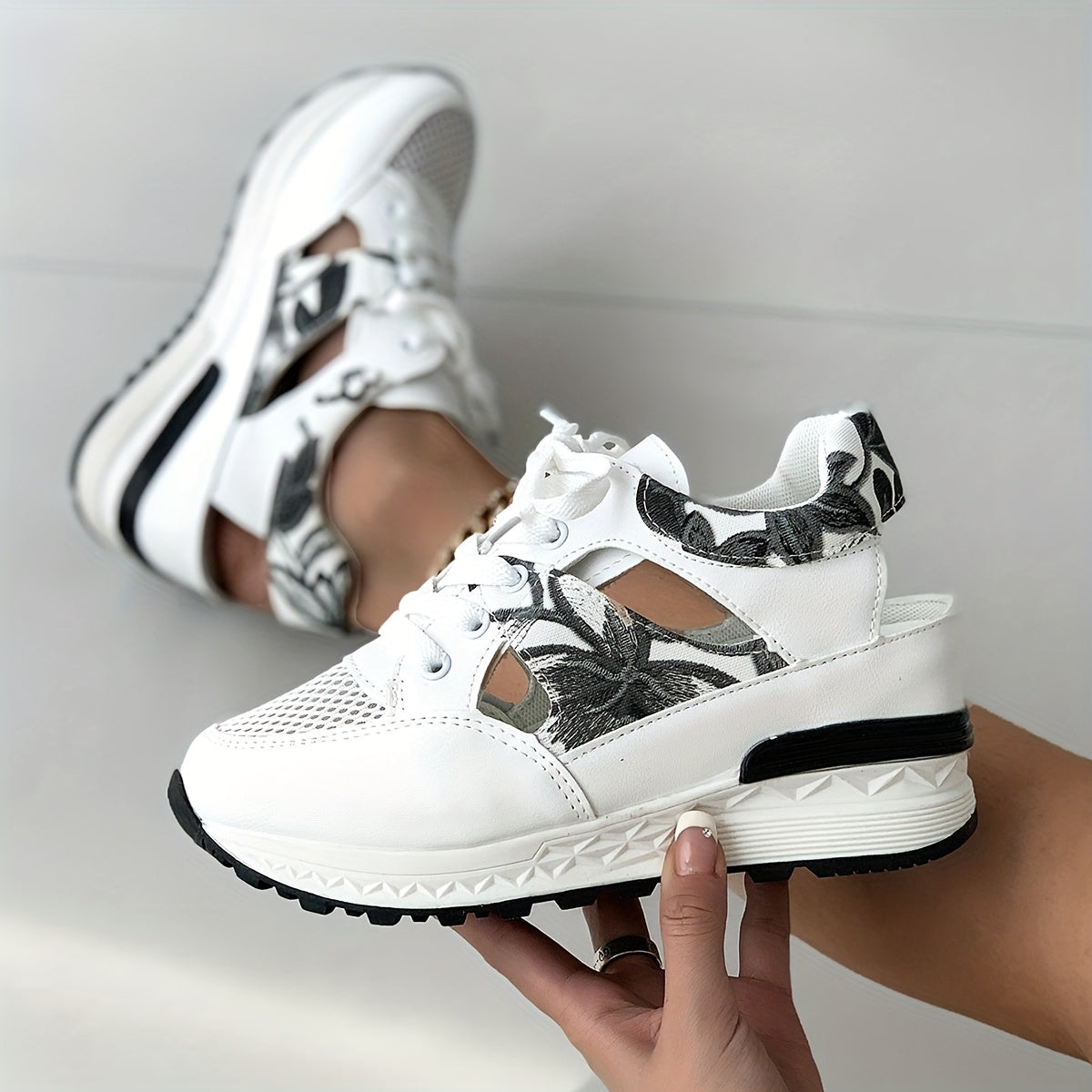 Women's New Fashion Leaf Floral Versatile Casual Lightweight Breathable Mesh Outdoor Sports Sandals with Thick Soft Sole for Height Boost