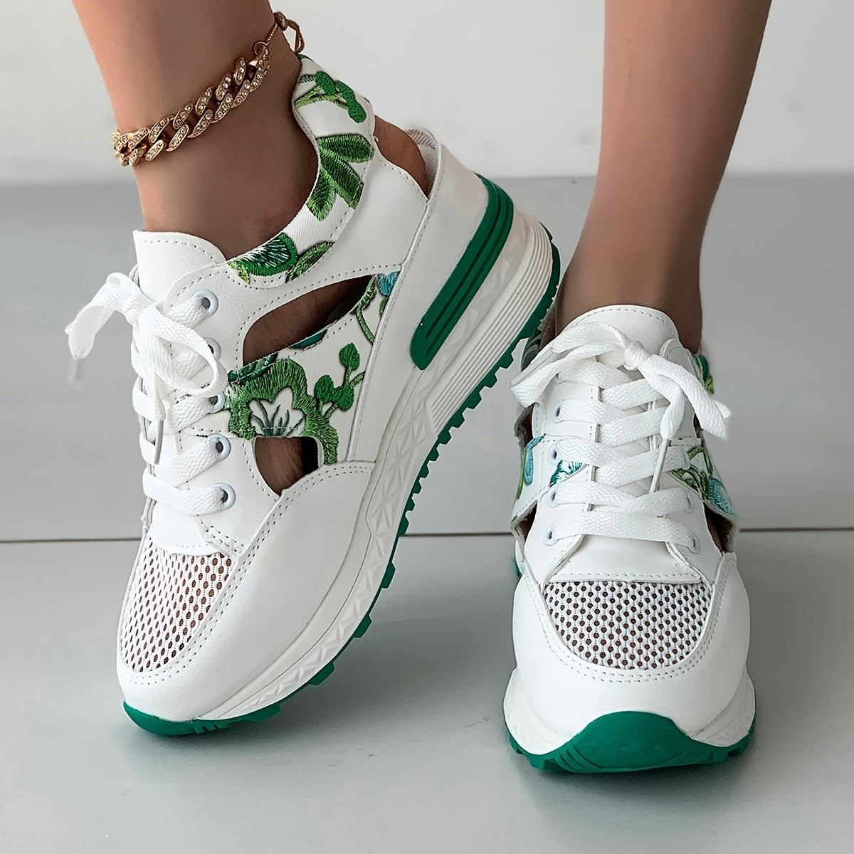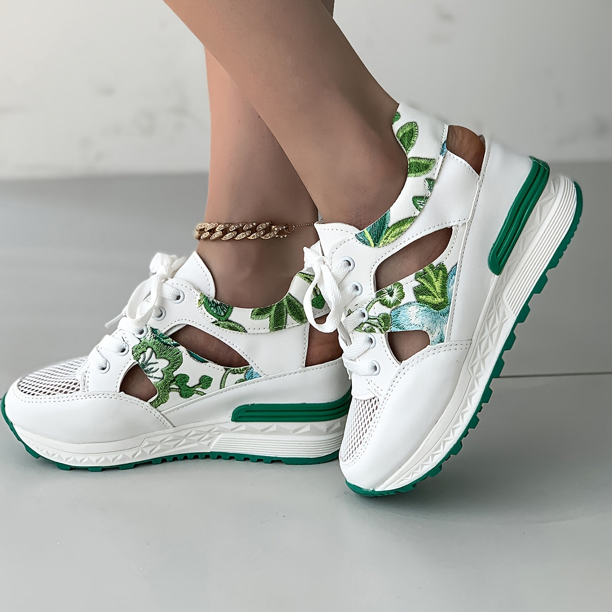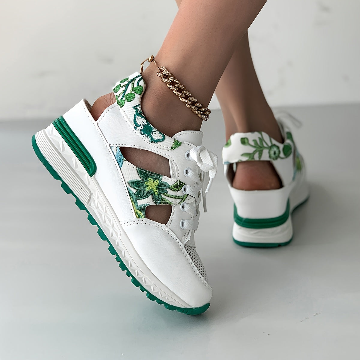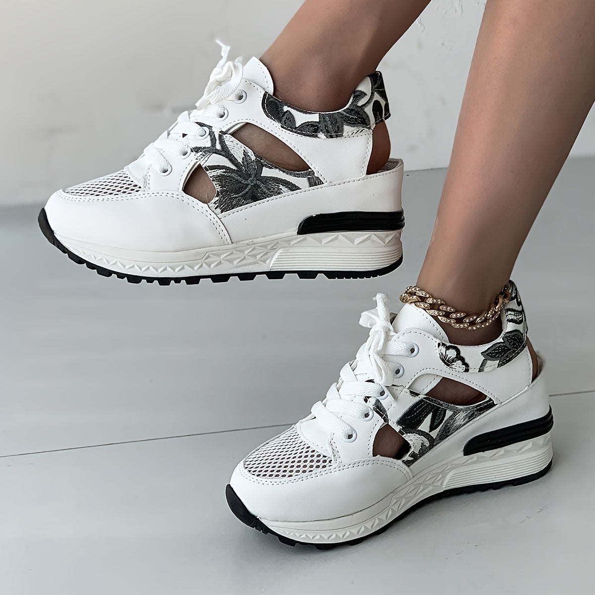 Women's New Fashion Leaf Floral Versatile Casual Lightweight Breathable Mesh Outdoor Sports Sandals with Thick Soft Sole for Height Boost