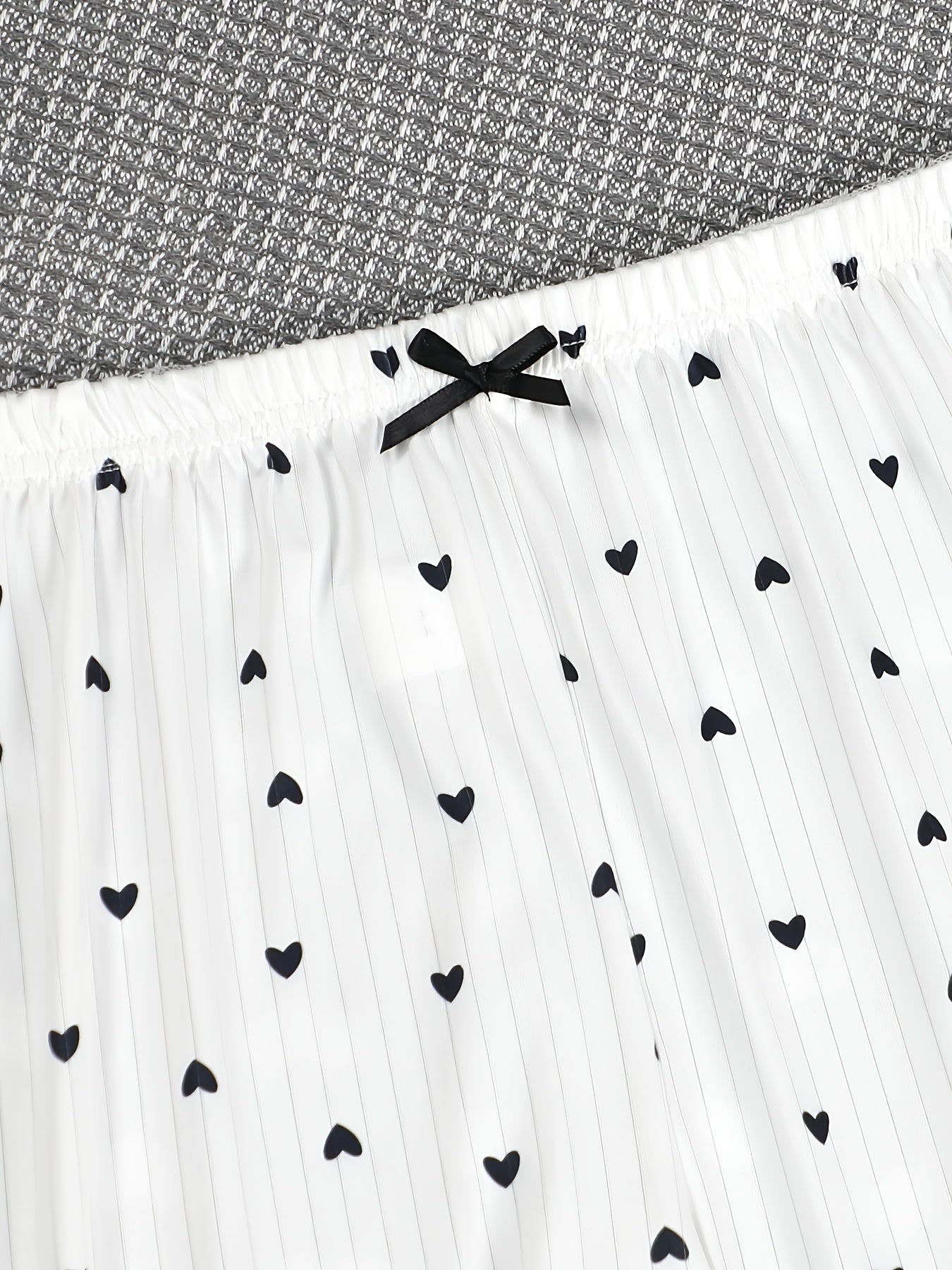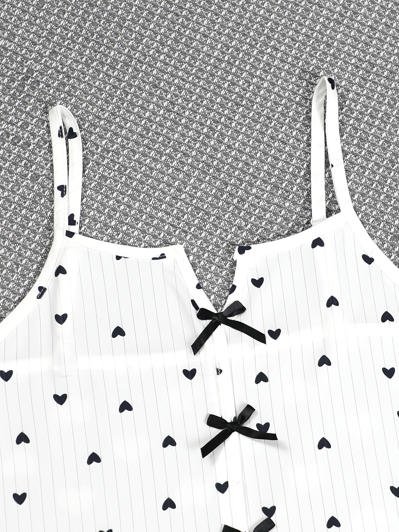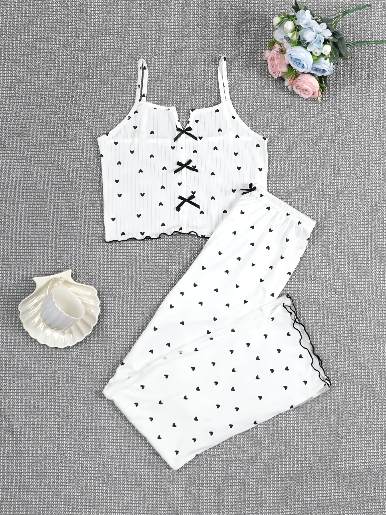 Women'S Pajama Set with Sexy Bow, Backless Love Letter Print & Elegant Long Pants, Comfortable Homewear for Spring/Summer/Fall - Polyester, No Collar, No Belt