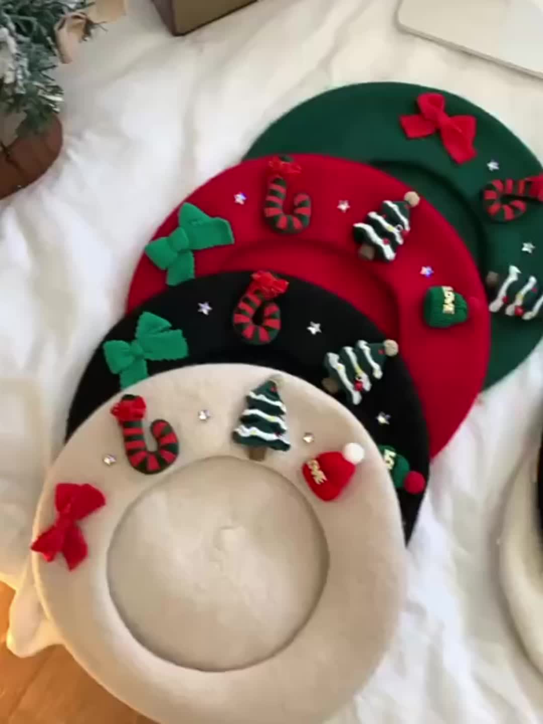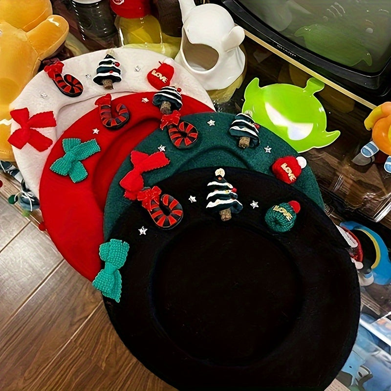Women's Red Christmas Beret Hat with 3D Christmas Tree Decorations - Elastic Drawstring Closure, Lightweight Warm Winter Hat for Holiday Parties, Photo Shoots, Valentine's & New Year's Eve - Festive Movie-Inspired Fashion Acc
