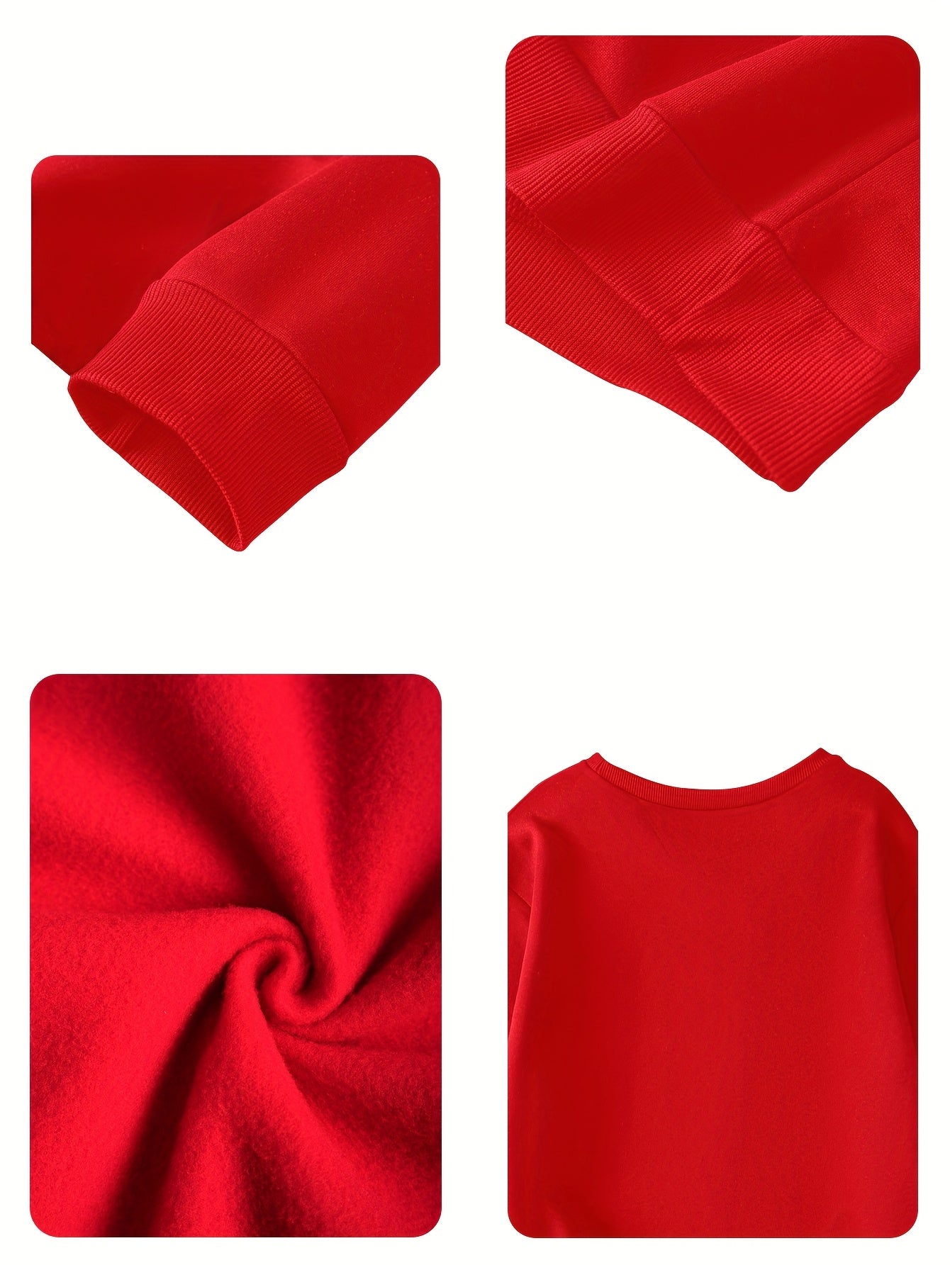 Women's Red Christmas Sweater Sweater Vest-Like Long Sleeve Pullover - Thick Warm Winter Sweater with " a Who Loves Christmas" Slogan, Tree & Snowflake Print, Casual Holiday Party Outfit (Machine Washable) for Xmas Parties &