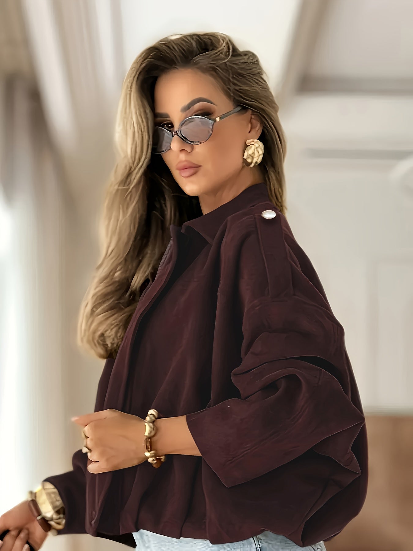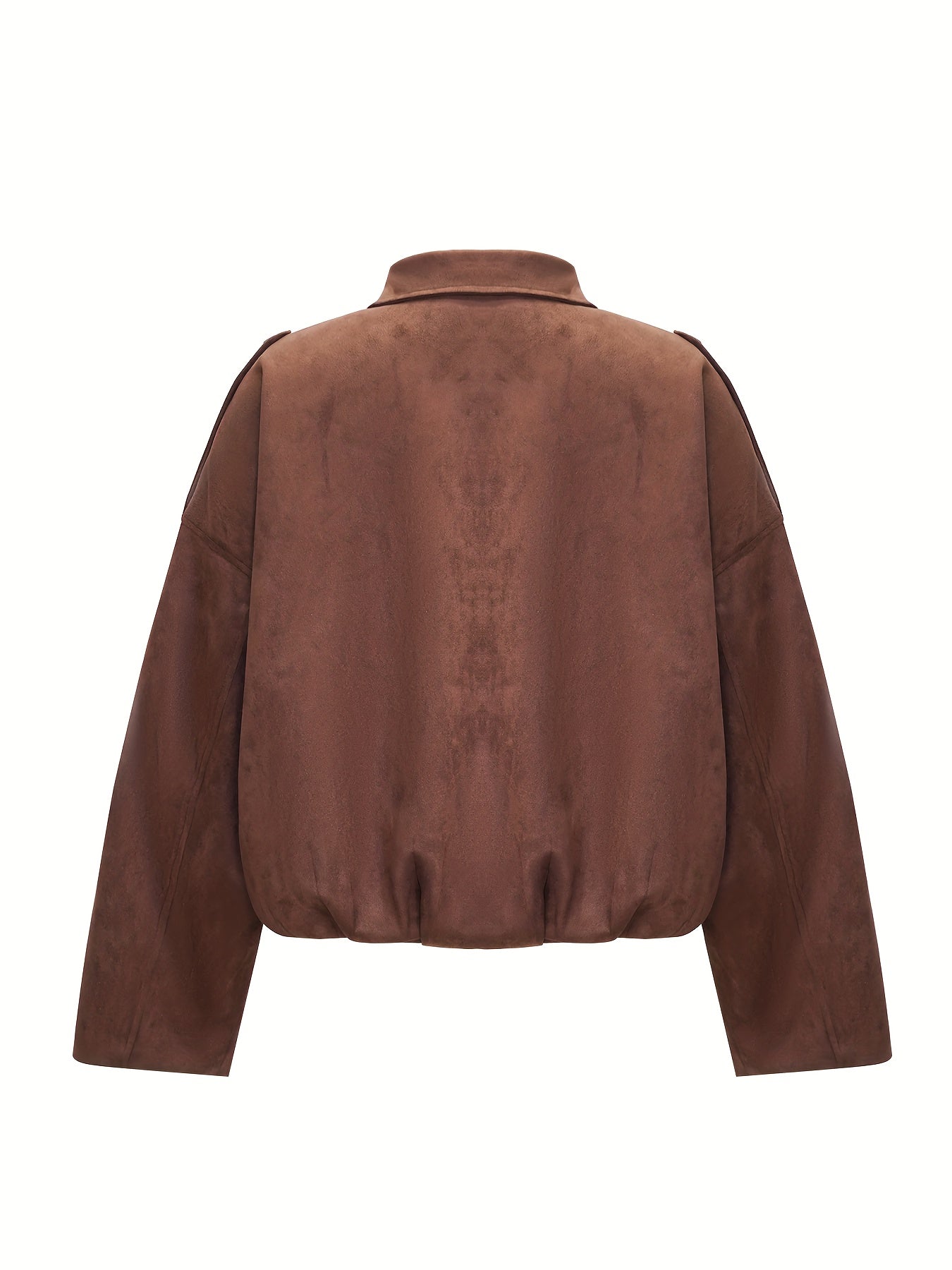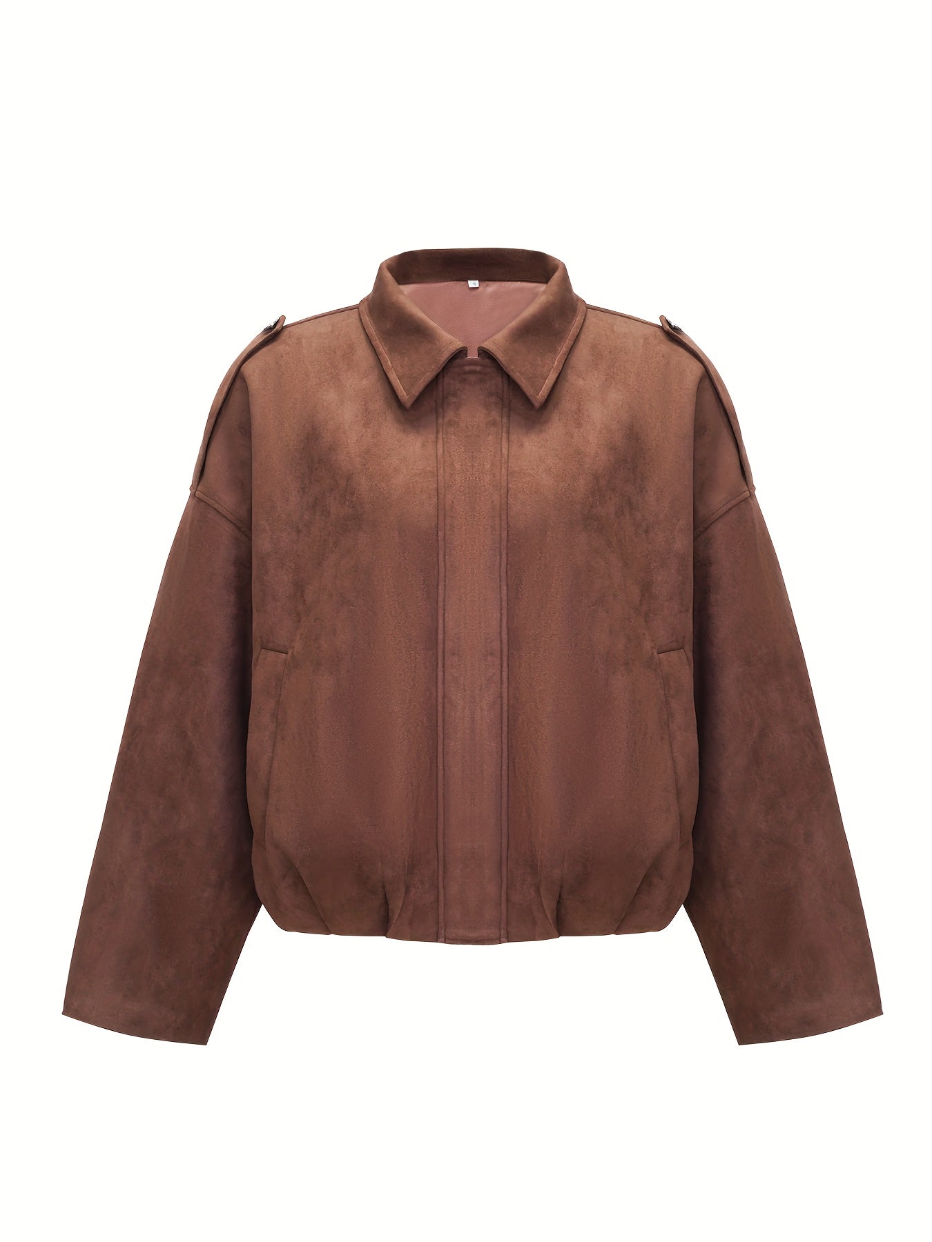 Women's Retro Motorcycle Jacket - Collar Winter Coat with White Piping, Brown Biker Outerwear, Machine Washable Non-Stretch Windbreaker for Fall/Winter, Casual & Motorcycle Riding (Solid Color)