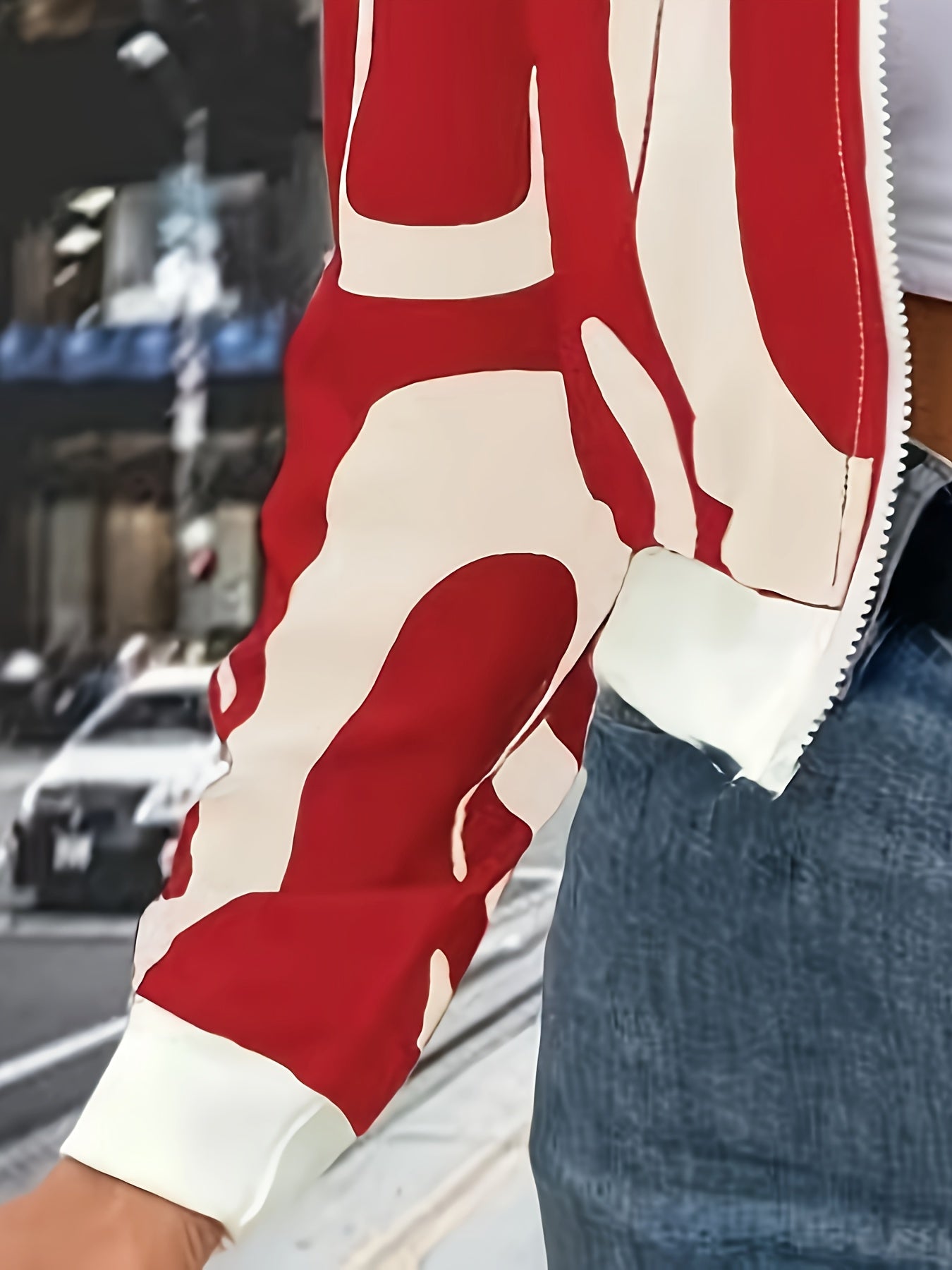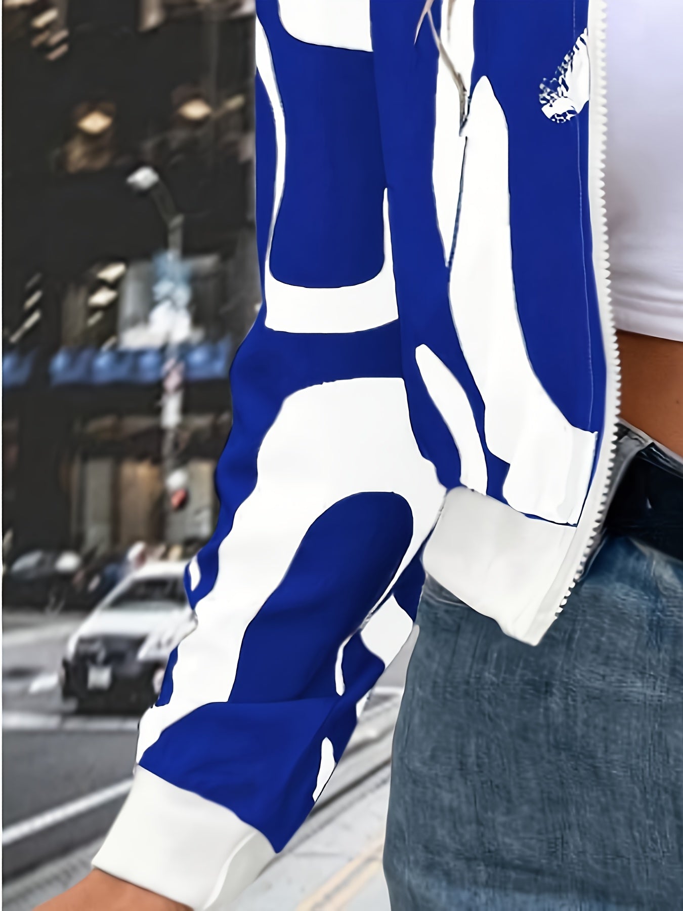 Women'S Stylish Black & White Abstract Print Zip-Up Cardigan Jacket - Casual Long Sleeve Pullover with Belted Waist, All-Season Wear, Casual Attire Jacket|Modern Casual Jacket|Zippered Jacket