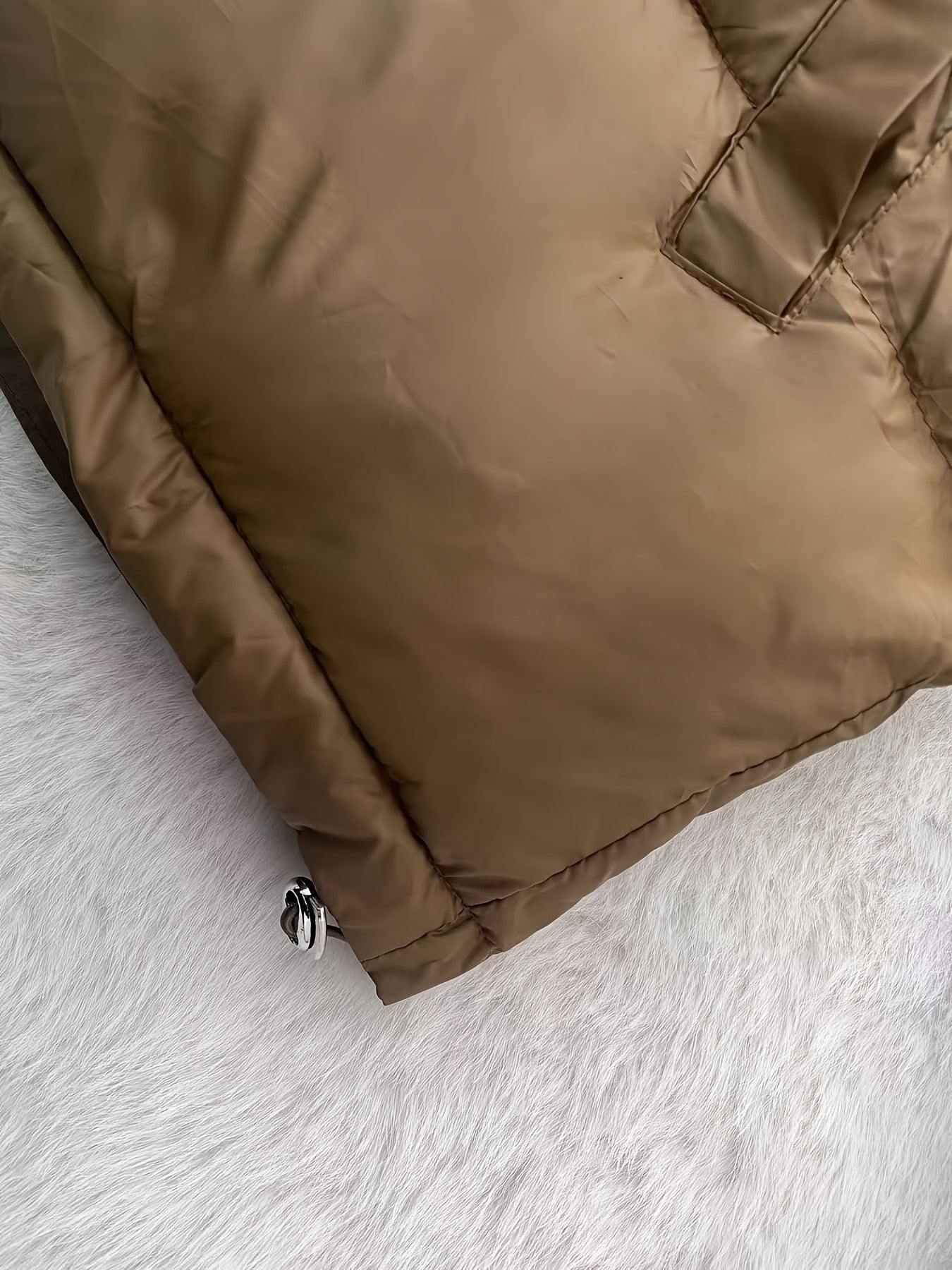 Women'S Stylish Winter Zip-Up Hooded Jacket - Casual Thickened Outerwear with Pockets, Long Sleeve, Non-Stretch Fabric, Solid Color, 100g/m², Perfect for Cold Weather, Winter Clothes