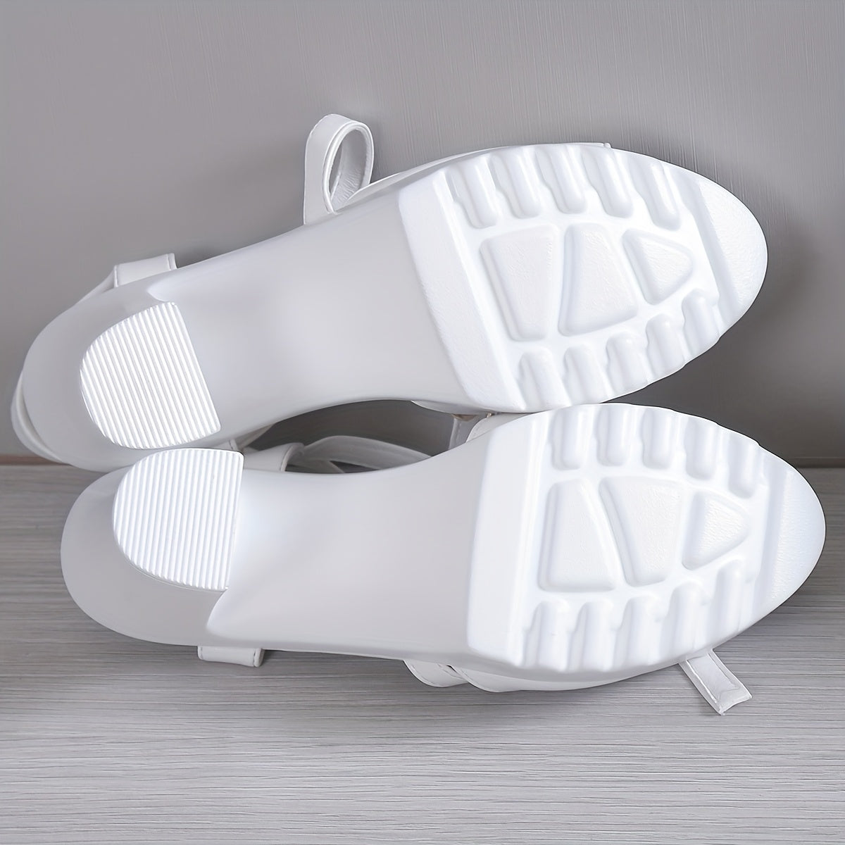 Women'S Summer Fashion Chunky Heel Sandals - White Open Toe with Buckle Strap, Comfortable PU Sole, Stylish High Heel Sandals for Casual Wear, Chunky Heel Sandals
