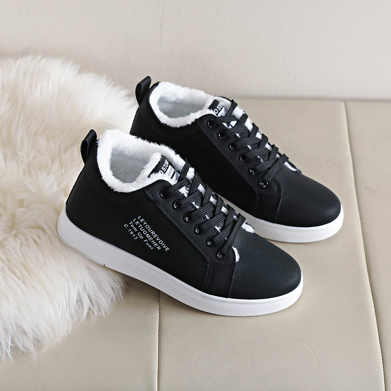 Women's Thermal Winter Shoes - Synthetic Cover Lace-Up Low-Top Boots with Plush Lining & Arch, Warm Brown/Tan Color, Rubber Sole & PVC Cushioning - Cold-Weather Shoes for Winter, Hand Wash or Dry Clean, Faux Cover Exterior, S