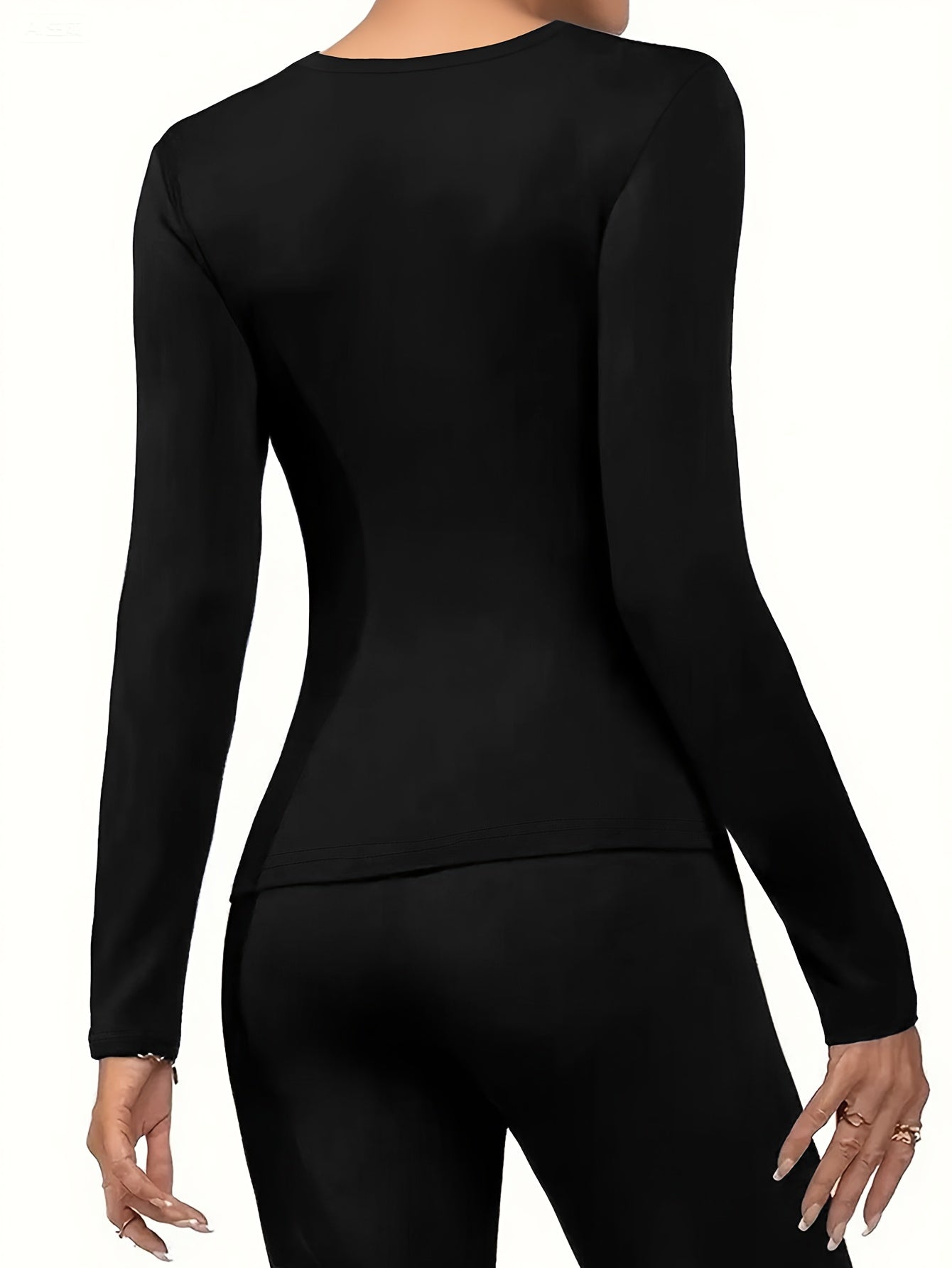 Women'S V-Neck Long Sleeve Top - Elegant Maroon Blouse with Fire Design, Stretchy Fabric for Fall/Winter, Office, Party, Everyday Outfits - Women'S Fashion Clothing, Ladies Tops And Blouses, Party Attire, Office Wear, Stylish
