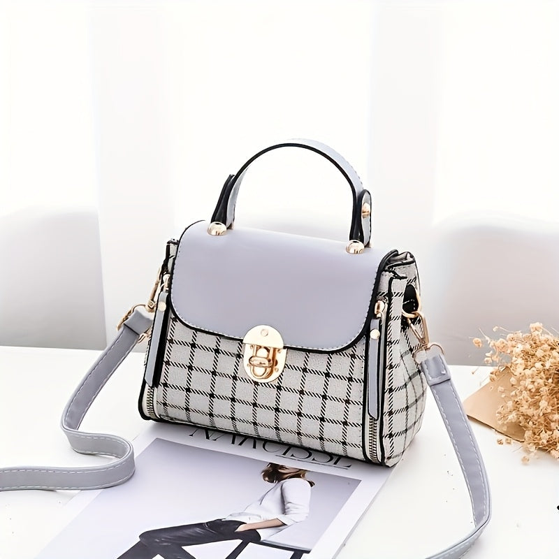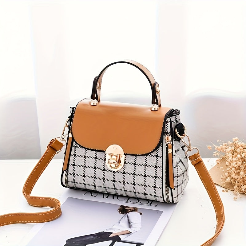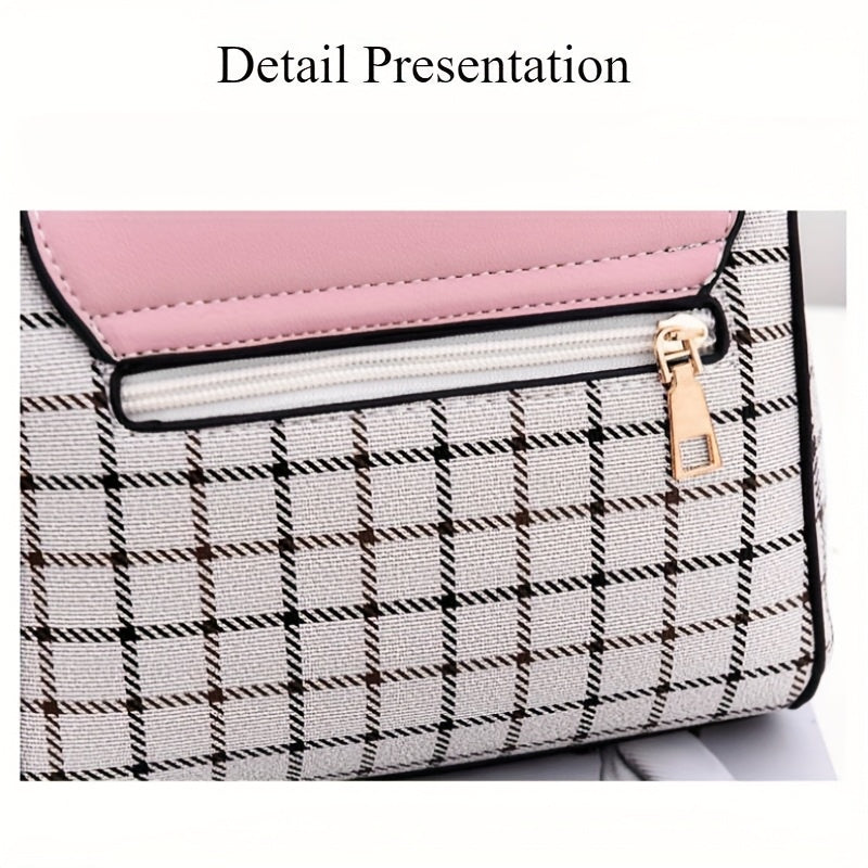 Women'S Vintage Plaid Crossbody Bag with Detachable Shoulder Strap, Zipper Closure, Polyester Lining & Edge Paint - Pink & Black Checkered Design, Perfect for Teens & Women, Ideal Gift for Birthdays, Anniversaries, Valentine'