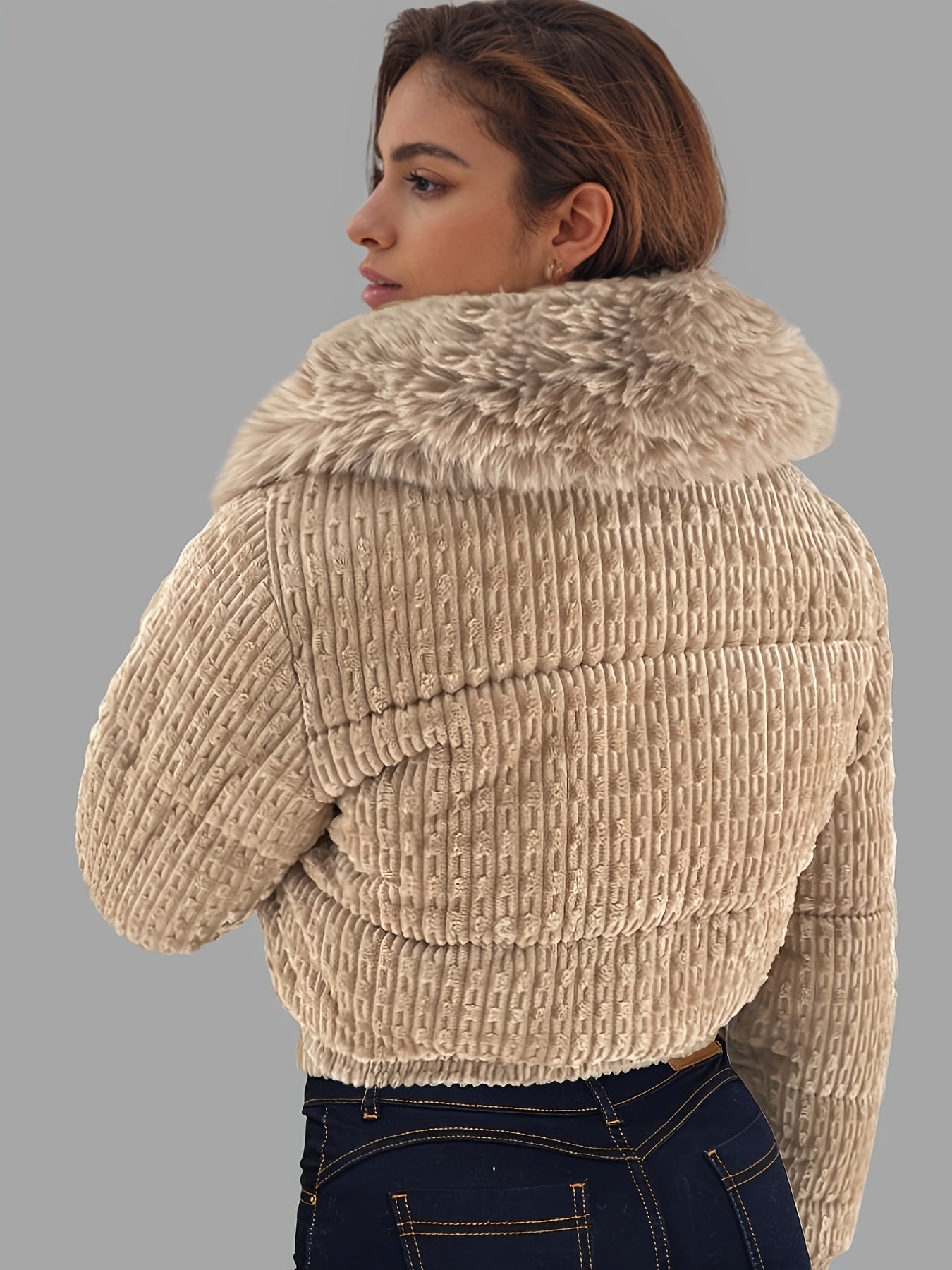 Women'S Winter Jacket - Full-Zip Coat with Detachable Fur Collar, Burgundy/Red - Cold Weather Outerwear for Everyday & Formal Events