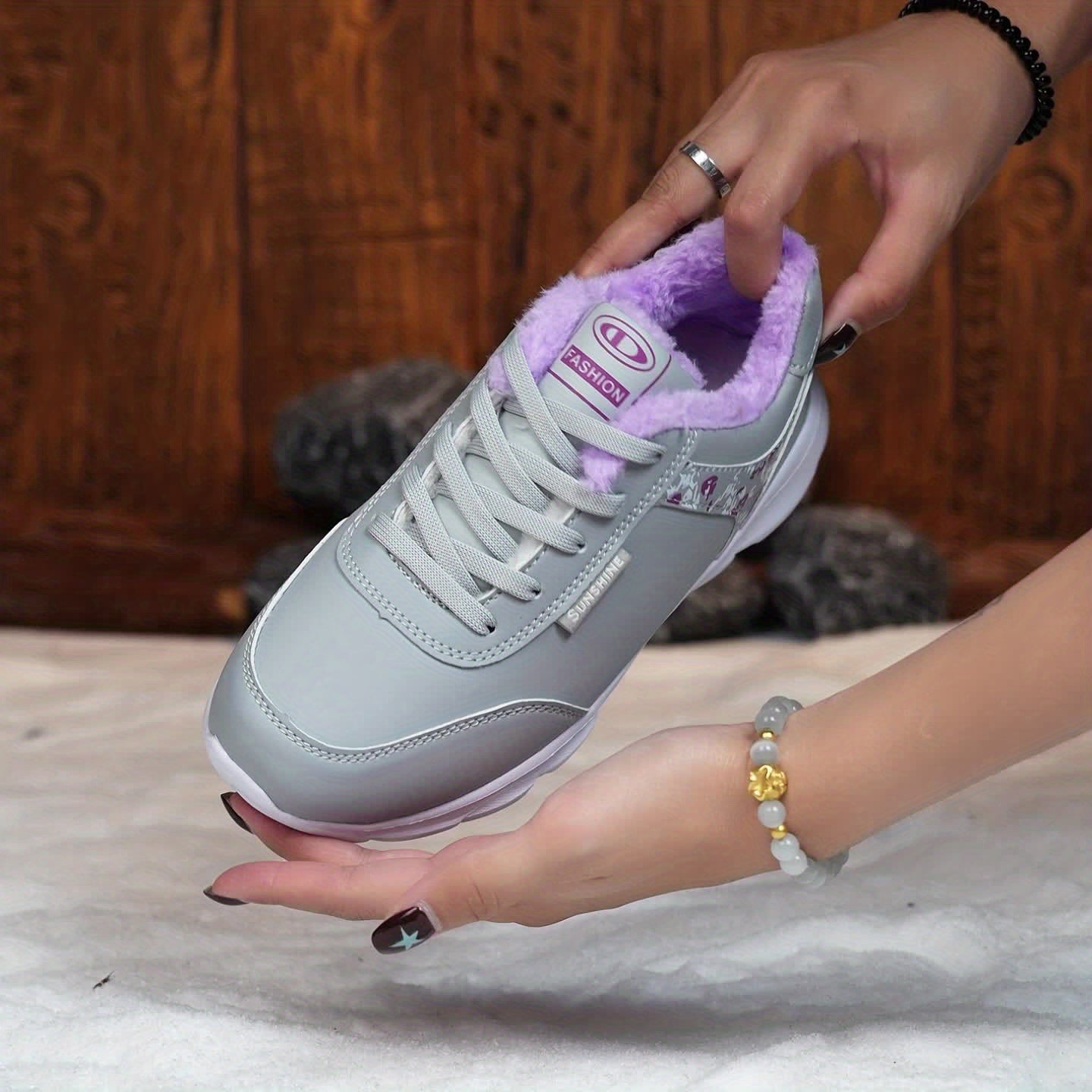 Women's Winter Thermal Fleece-Like Short Boots - Grey & Pink Synthetic Upper, Sole Traction, Lace-Up Low-Top Snow Shoes for Ice Walking, Casual & - Warm Cold Weather Outdoor Footwear