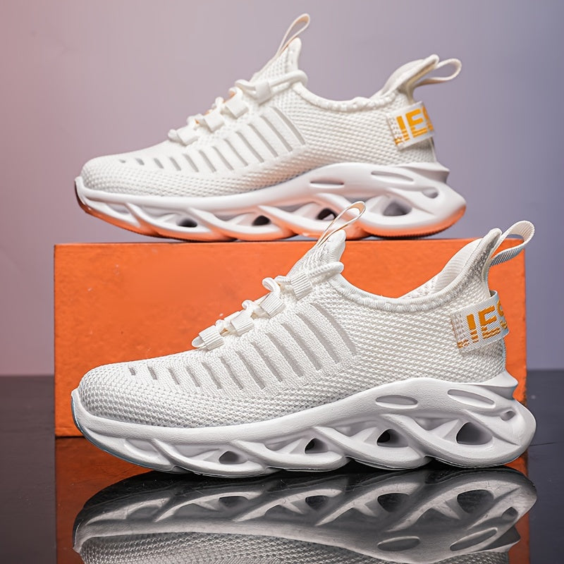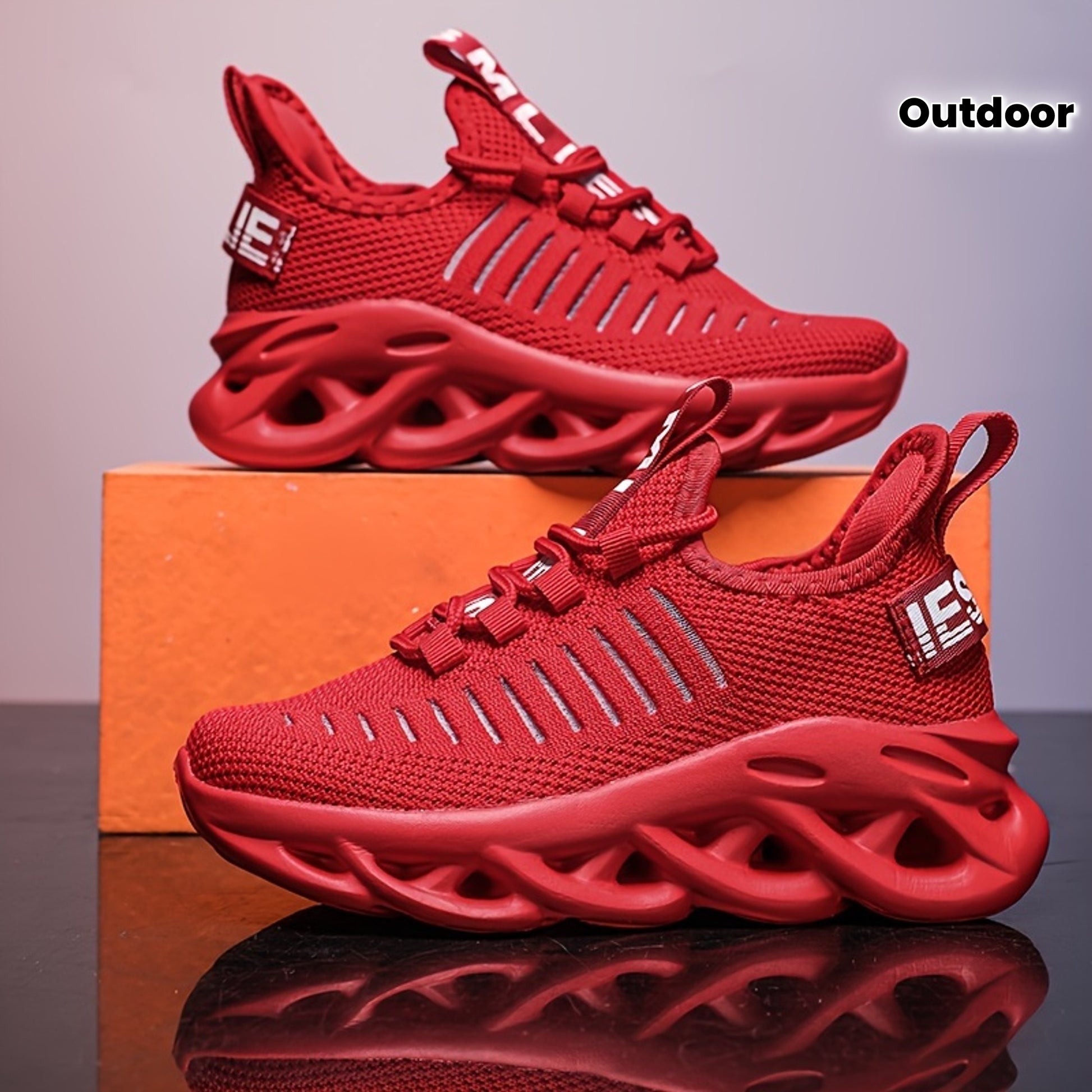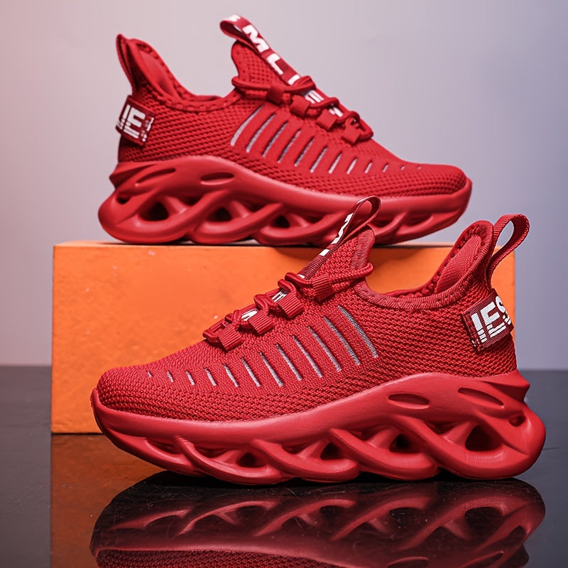 Youngsters' Breathable Knit Sneakers - Lightweight Running Sneakers with Striped Design, EVA Sole & Lace-Up Closure for Boys & Girls | All-Season Outdoor Sports & Casual Wear (Red), Big Kid Shoes, Everyday Youngsters's Footwe