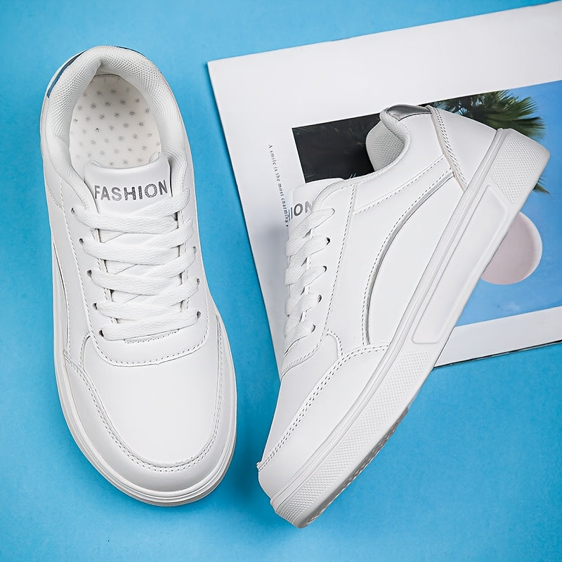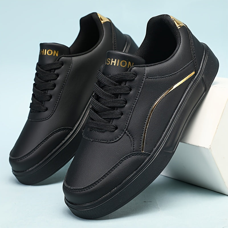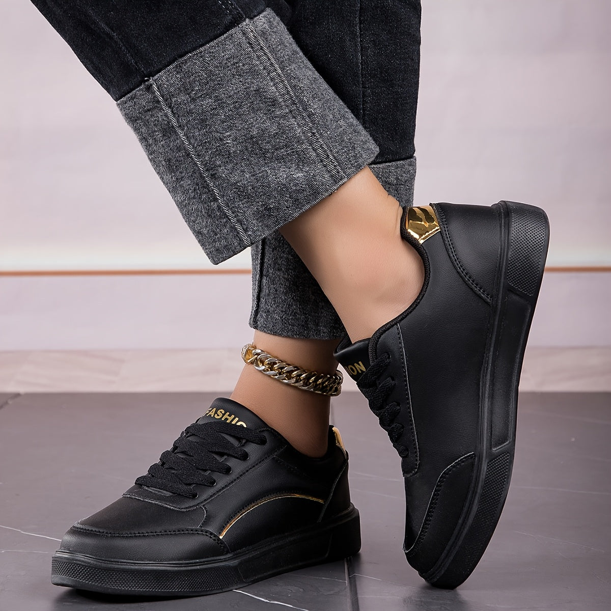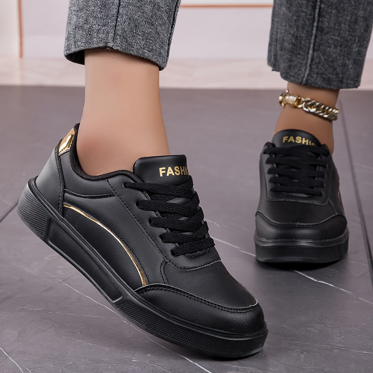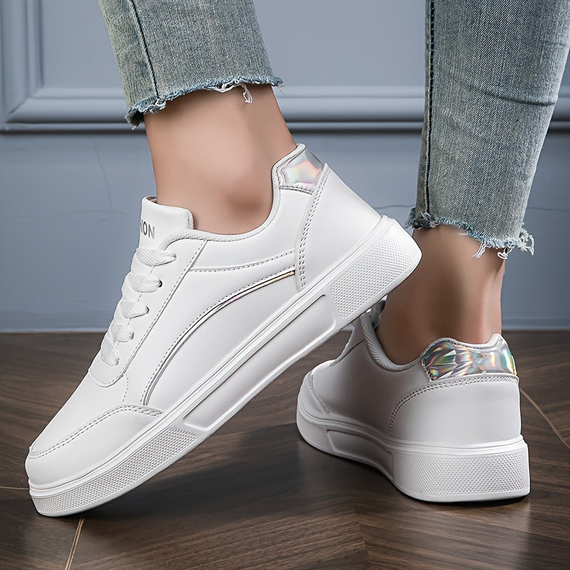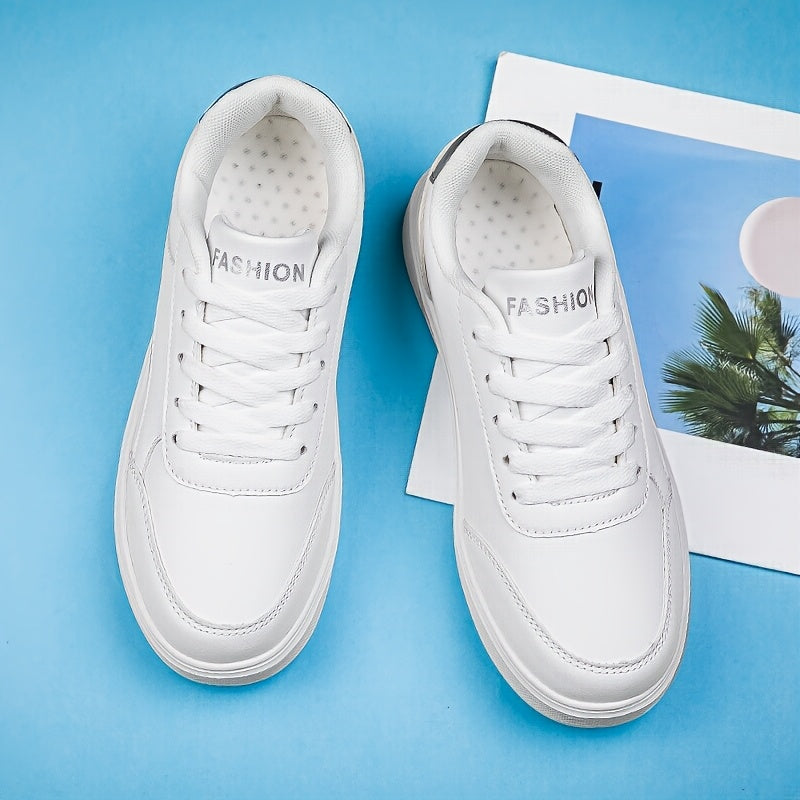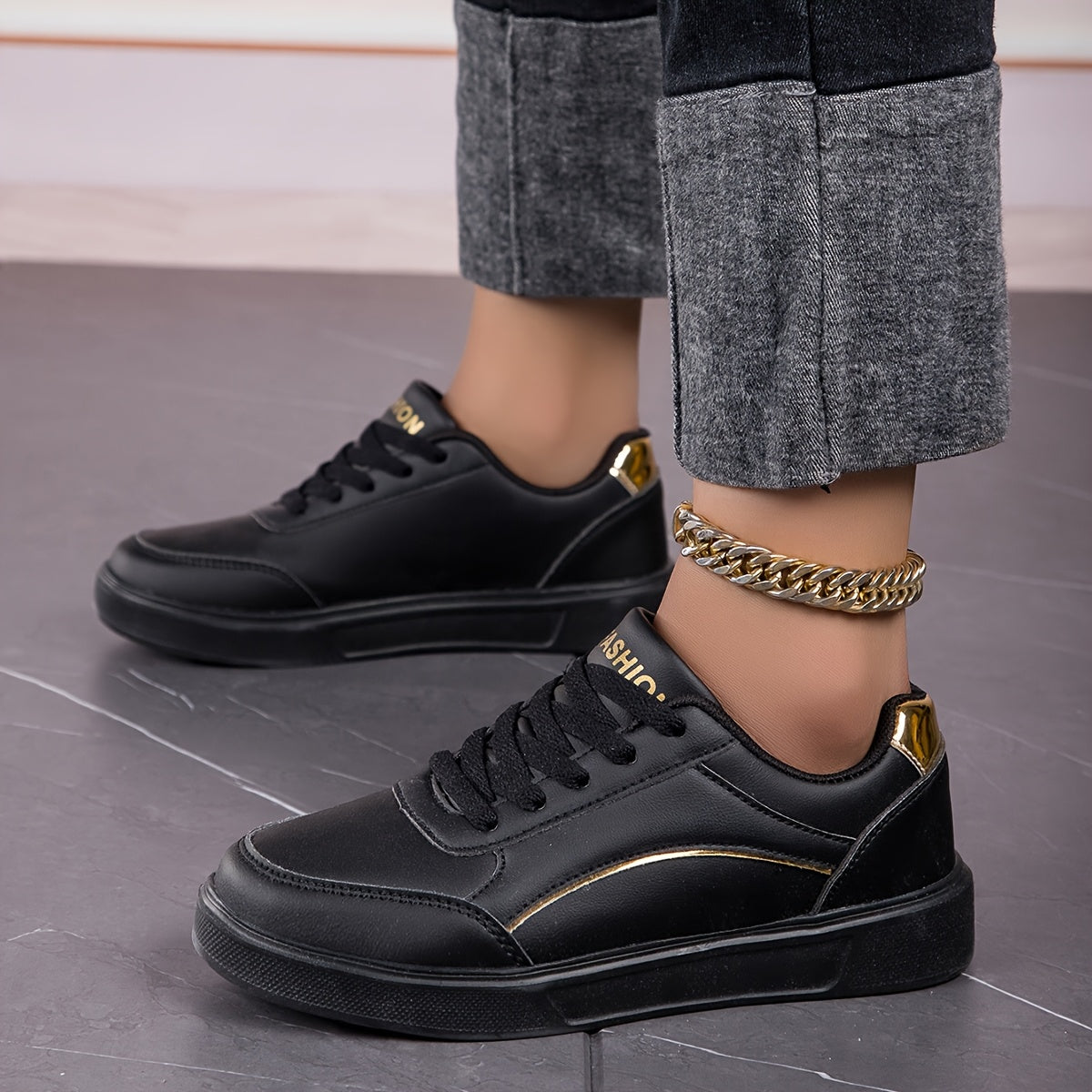 Youngsters' Fashion Sneakers - White PU Upper with Golden Accents, Comfortable & Lightweight Casual Running Shoes for Boys and Girls, All-Season Wear, Low-Top Lace-Up Design, Outdoor Youngsters's Footwear | Fabric Lined Inter