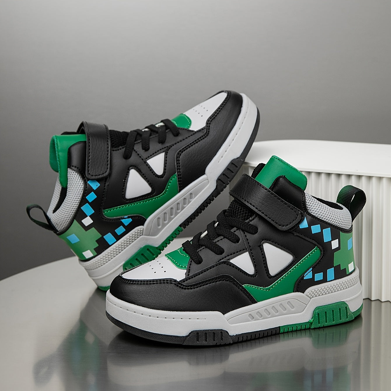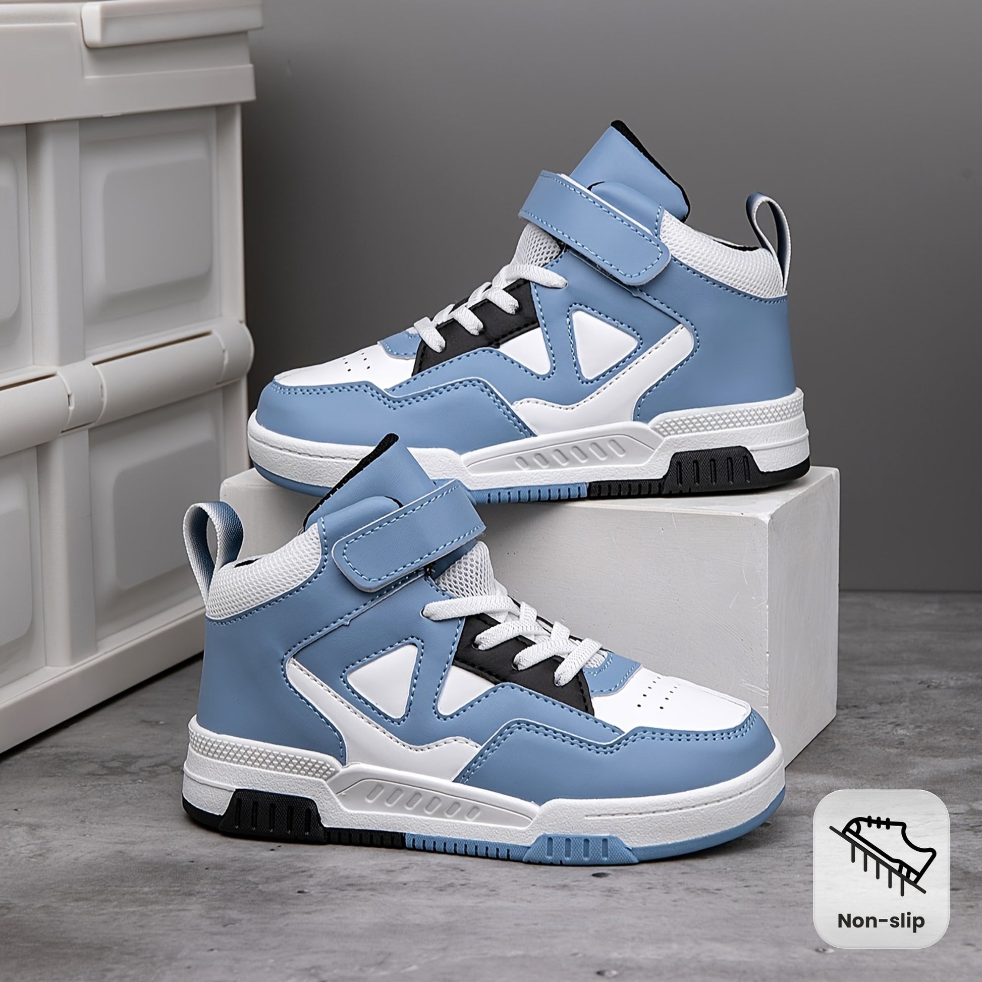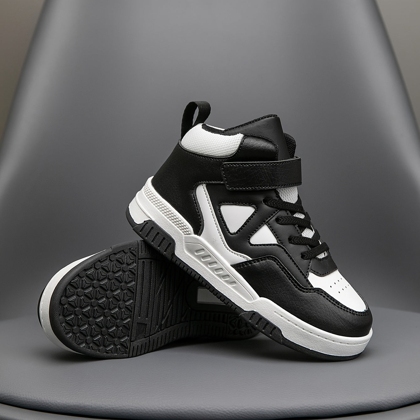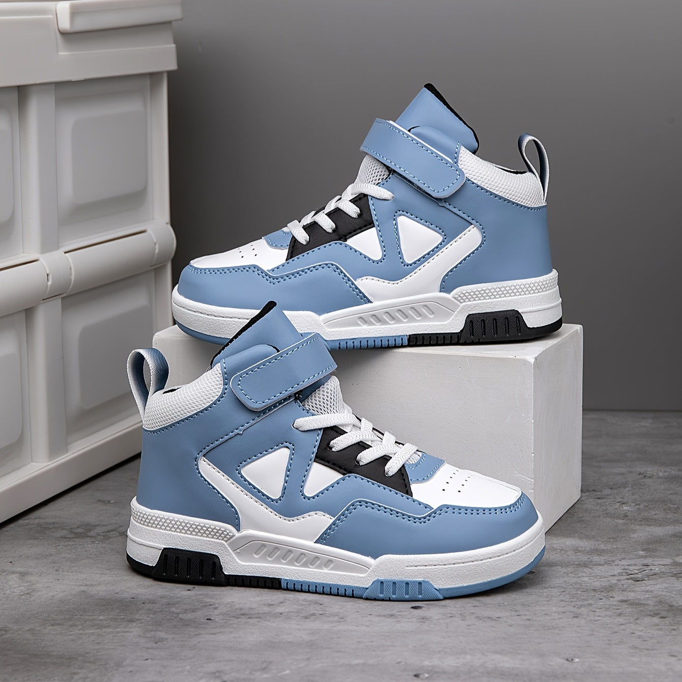 Youngsters' High-Top Sneakers with Hook-and-loop Fastener Closure - Vintage Geometric Print, Breathable & Non-Slip for Boys and Girls - Perfect for Running & Casual Wear
