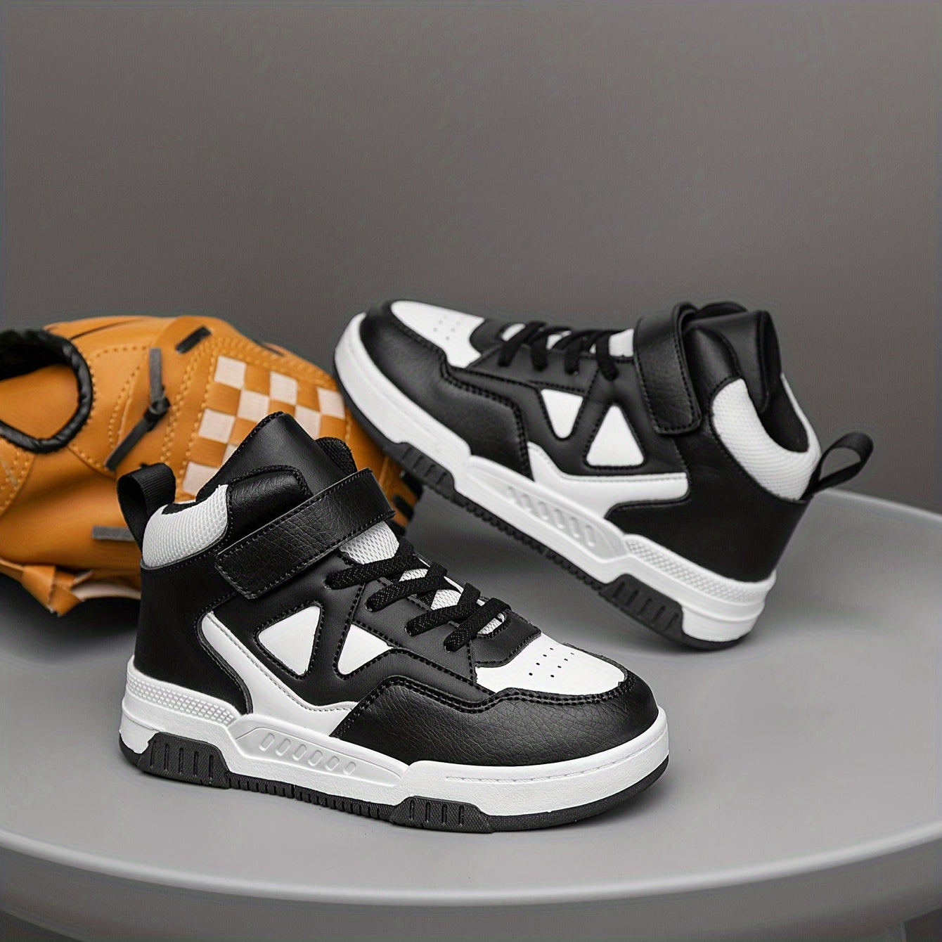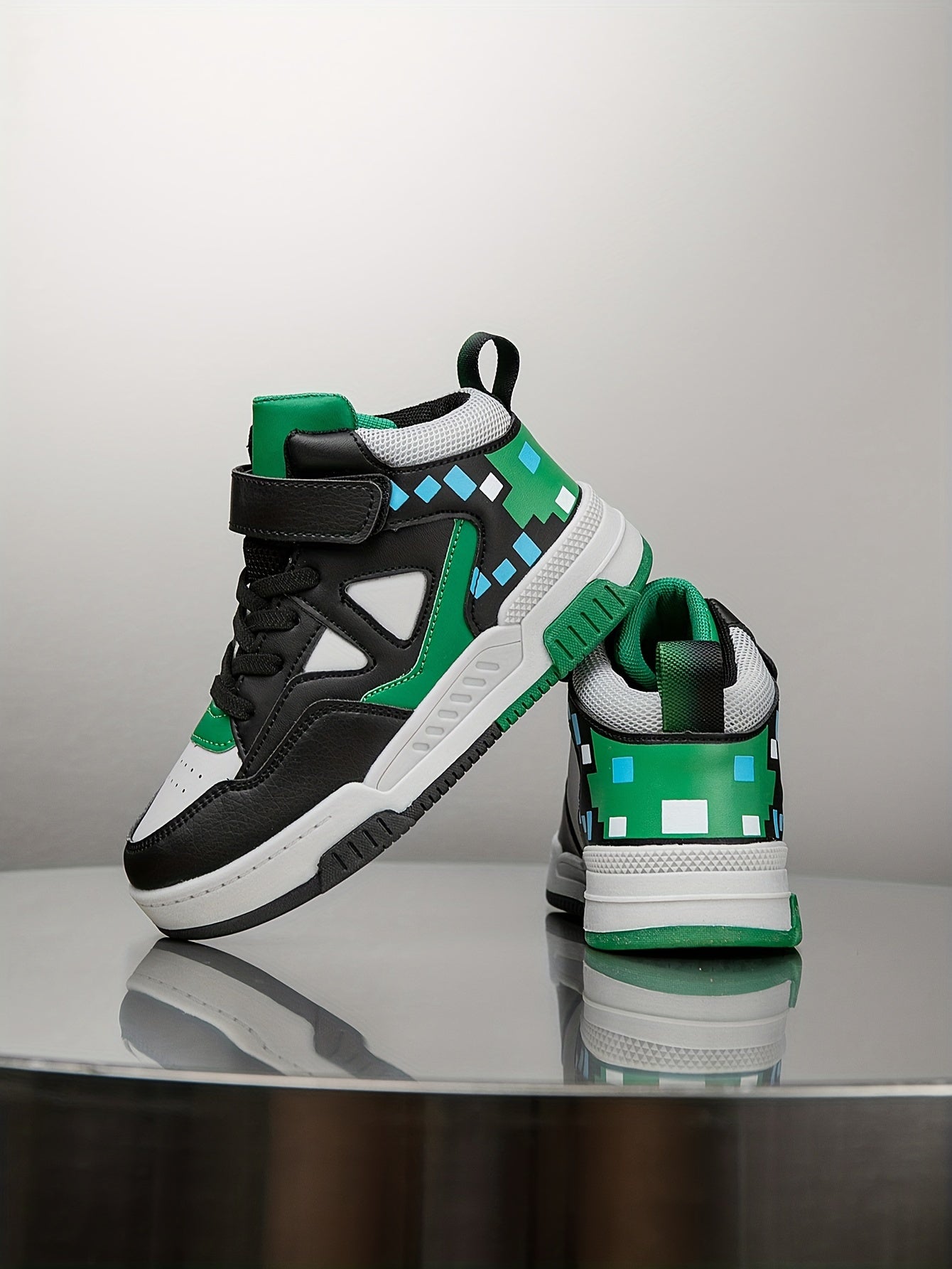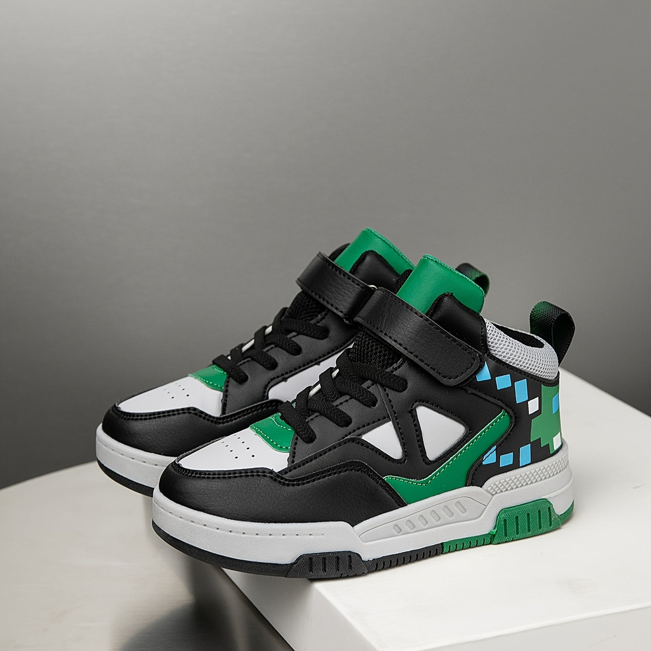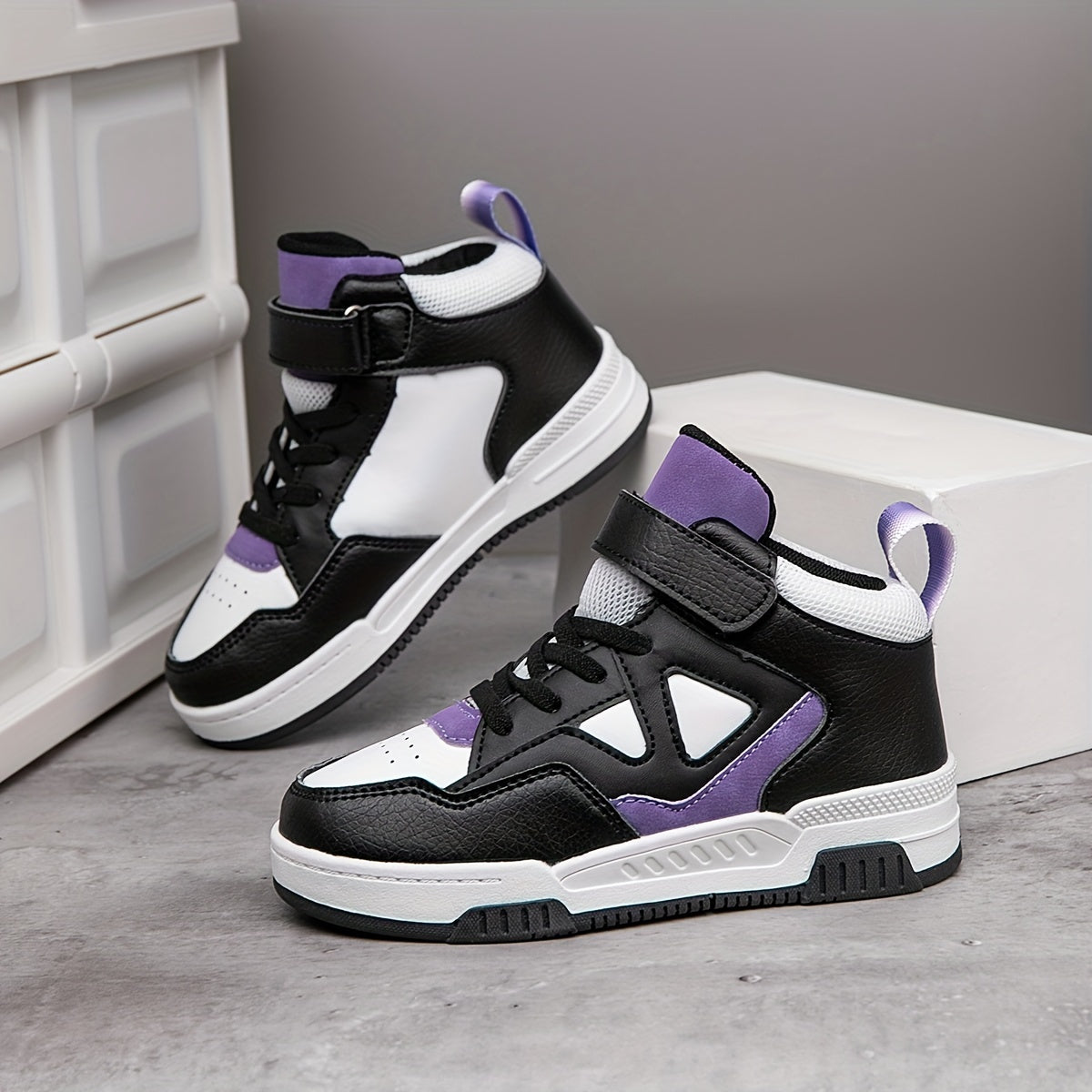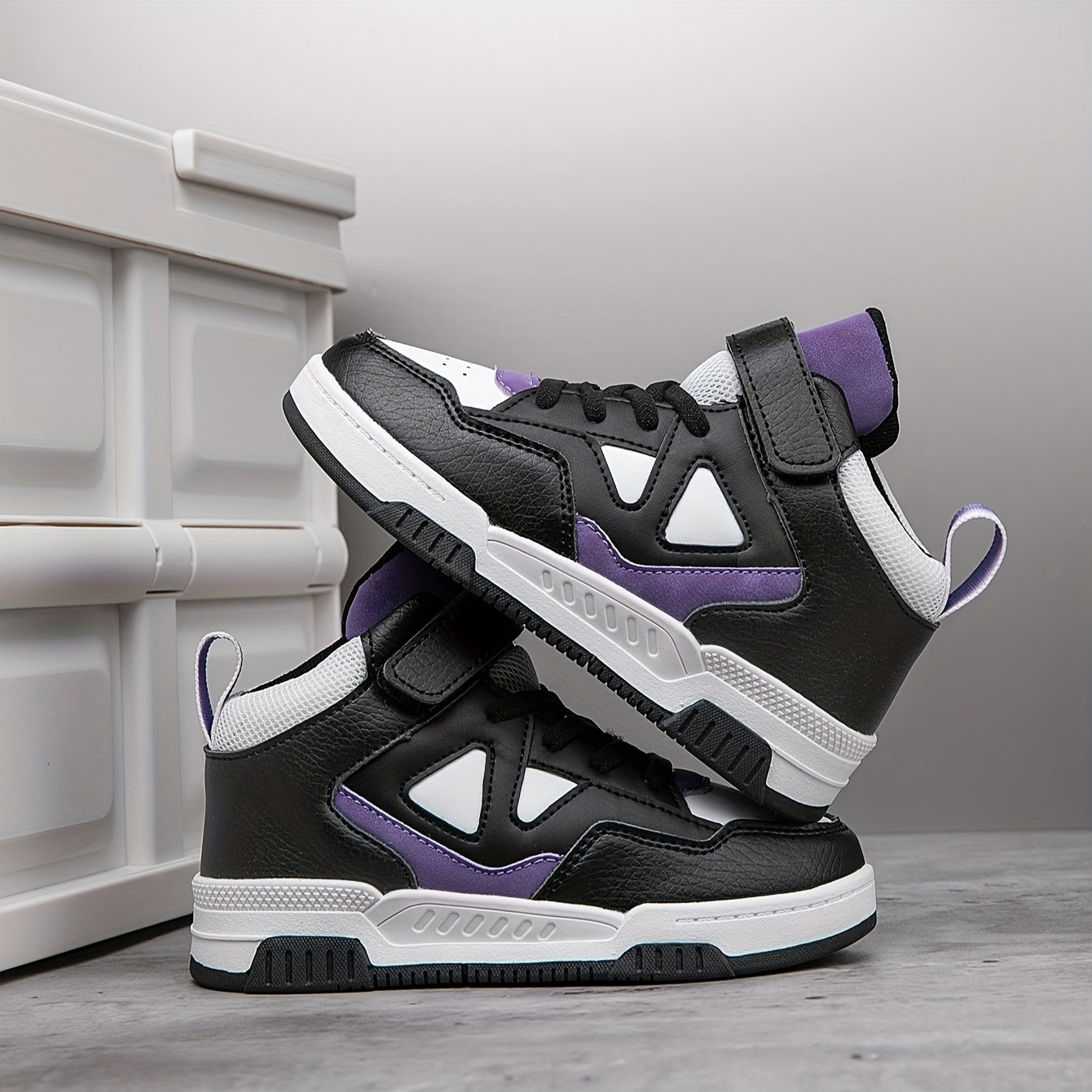 Youngsters' High-Top Sneakers with Hook-and-loop Fastener Closure - Vintage Geometric Print, Breathable & Non-Slip for Boys and Girls - Perfect for Running & Casual Wear