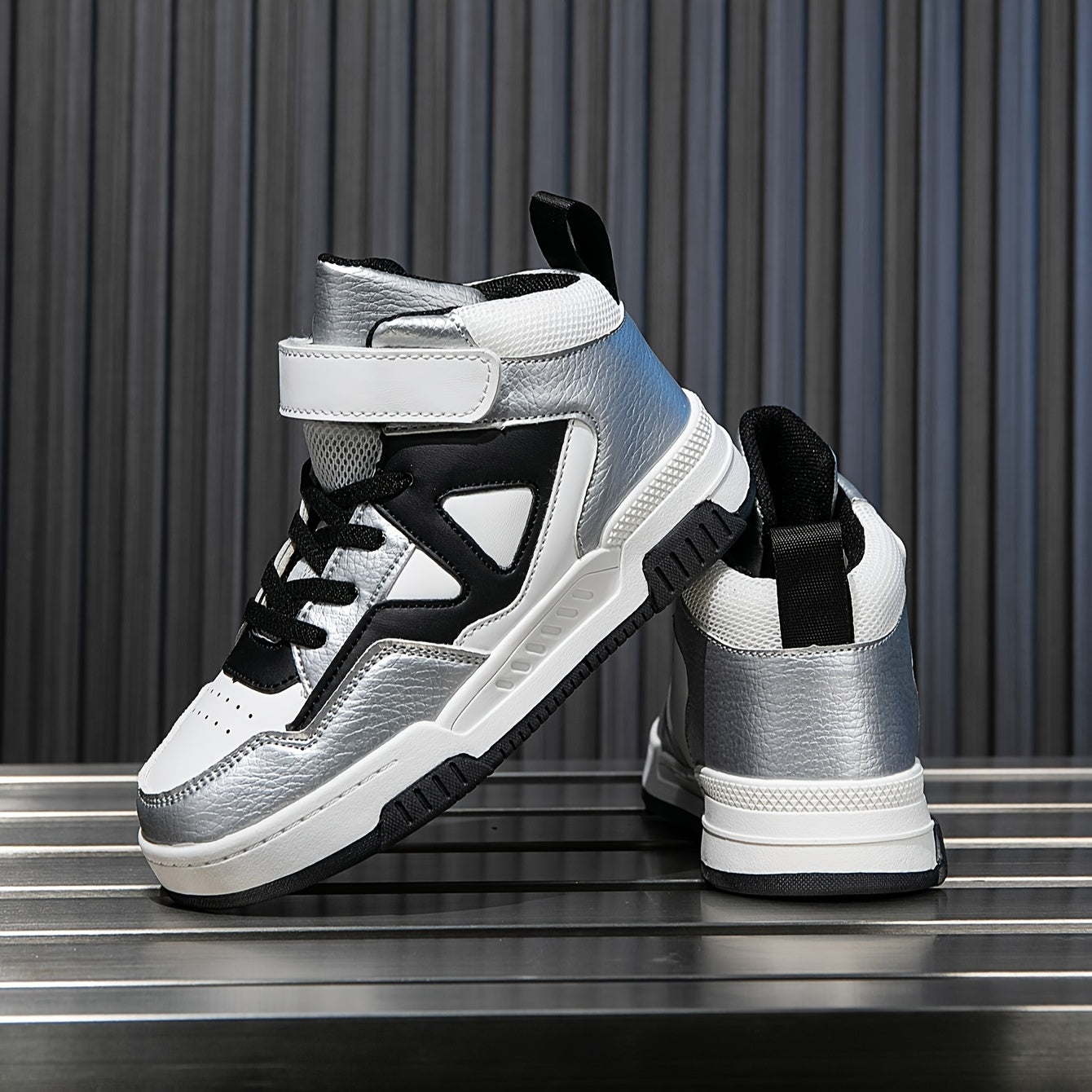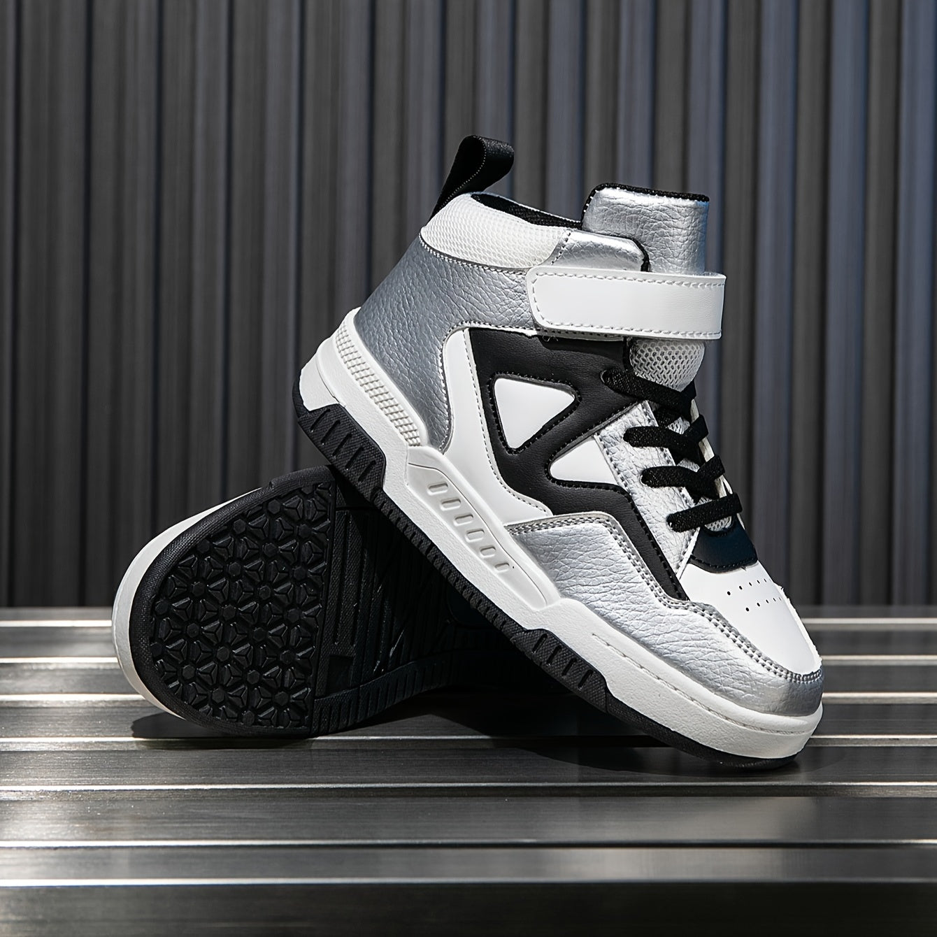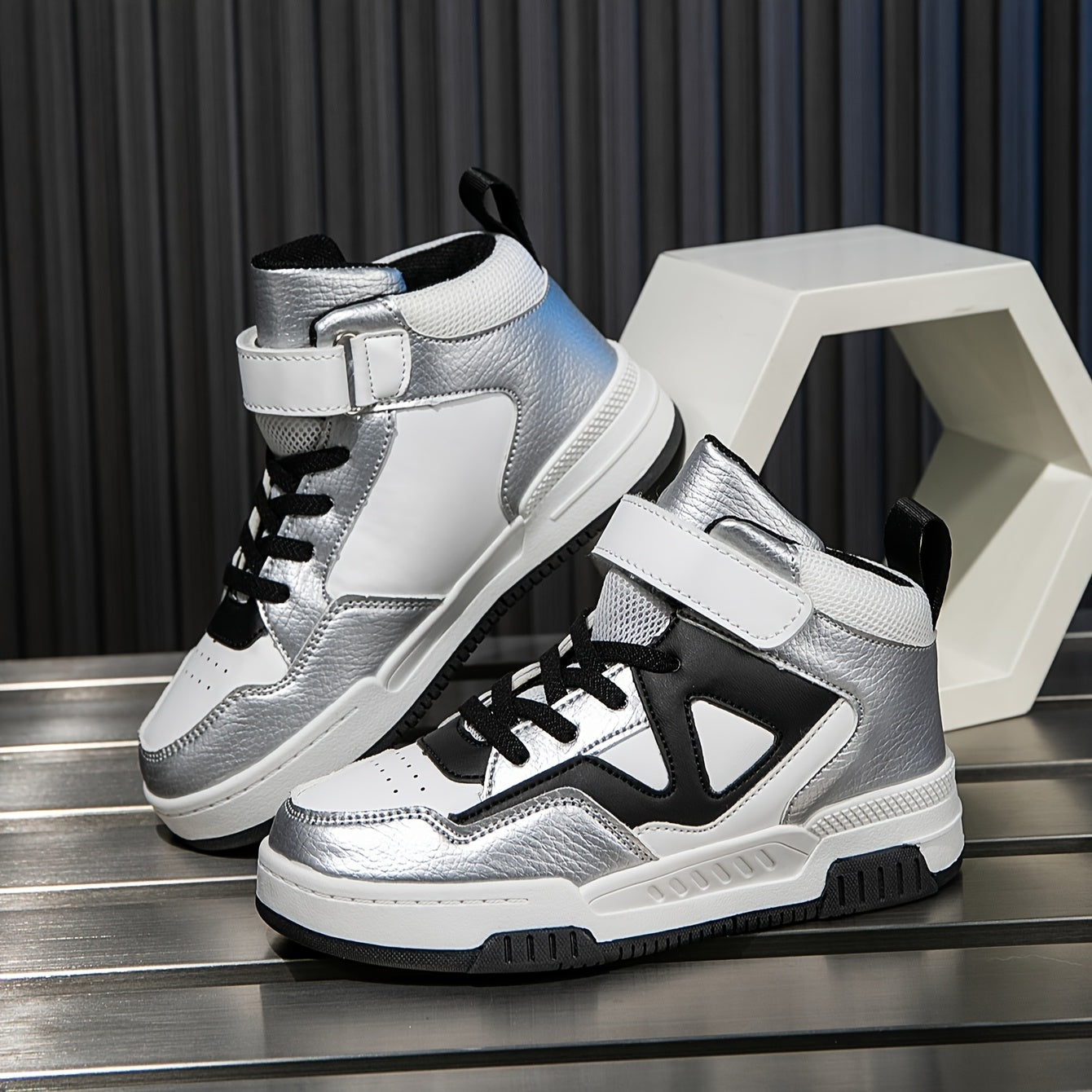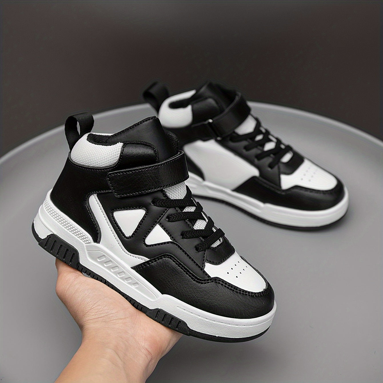 Youngsters' High-Top Sneakers with Hook-and-loop Fastener Closure - Vintage Geometric Print, Breathable & Non-Slip for Boys and Girls - Perfect for Running & Casual Wear