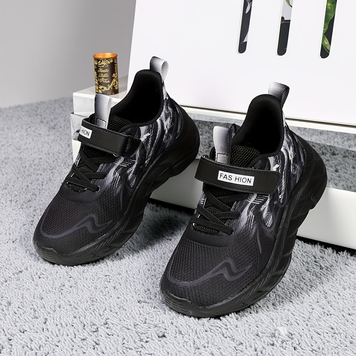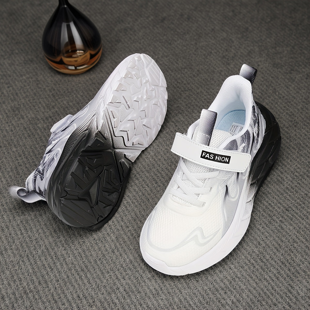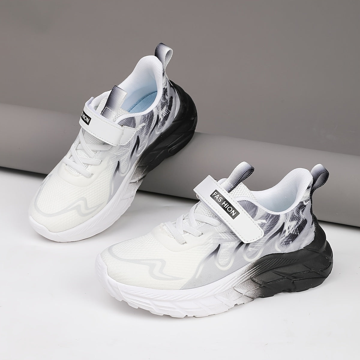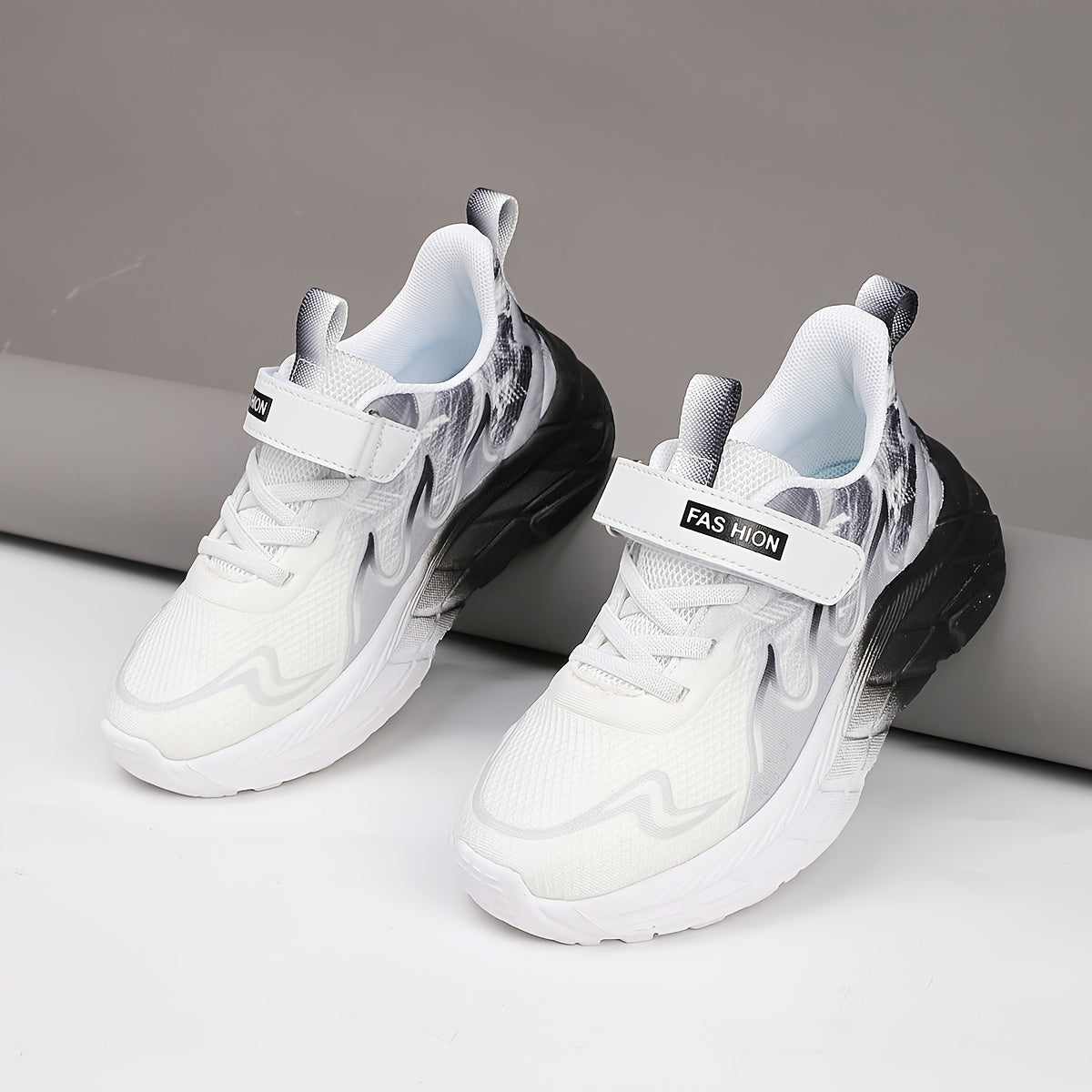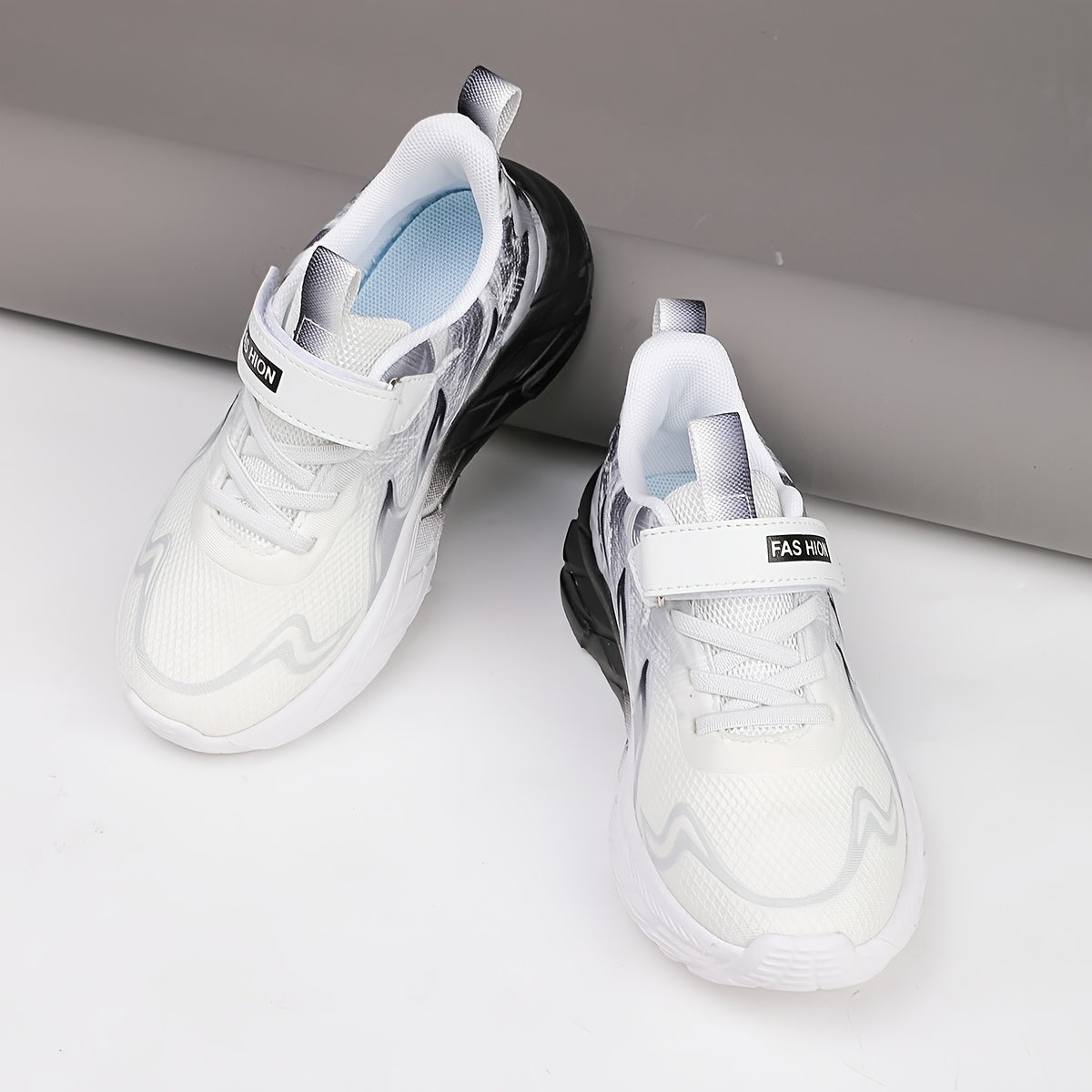 Youngsters' Low-Top Breathable Mesh Running Shoes with EVA Sole - Lightweight Comfortable Casual Outdoor Sneakers, White with Black Accents & Hook-and-Loop Closure for Boys and Girls, Kid Shoes, Youngsters Sports Footwear, St