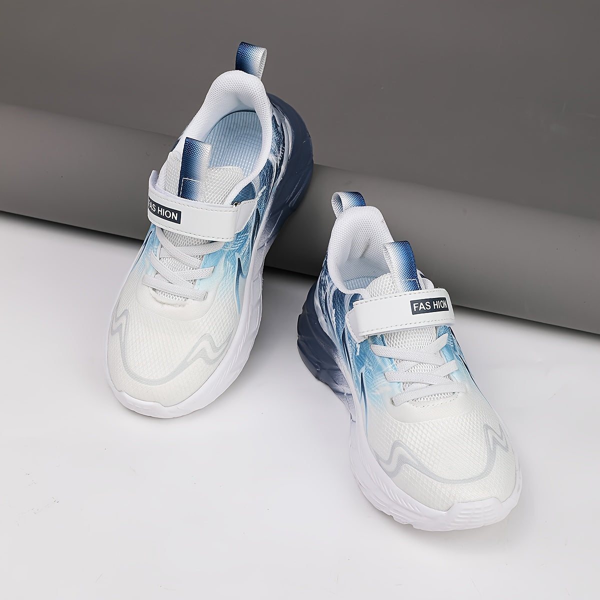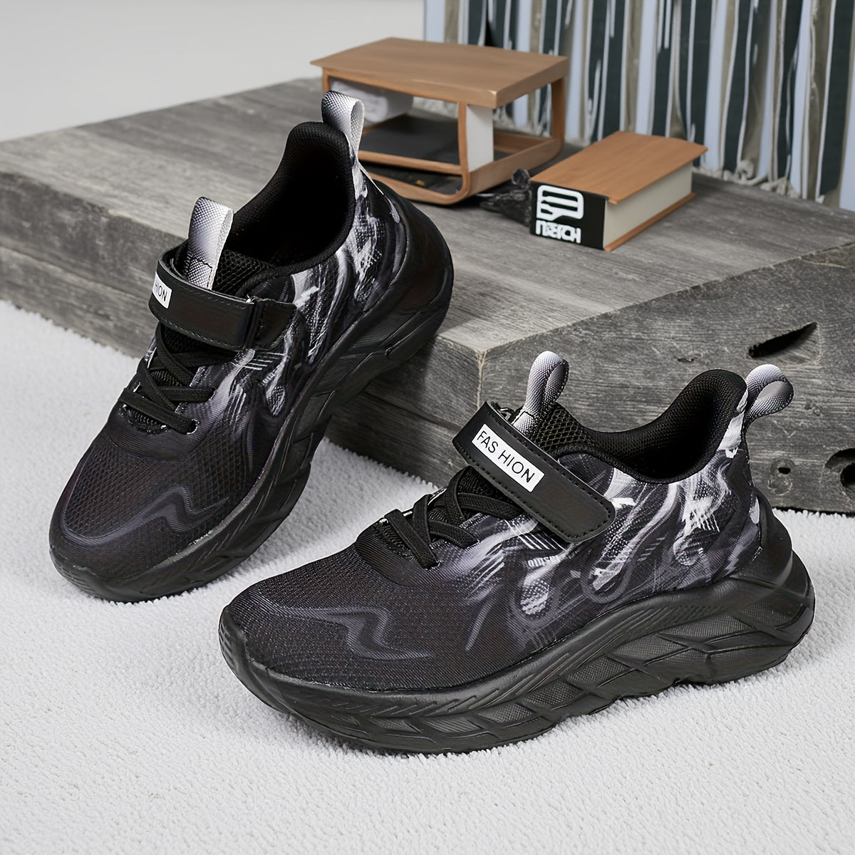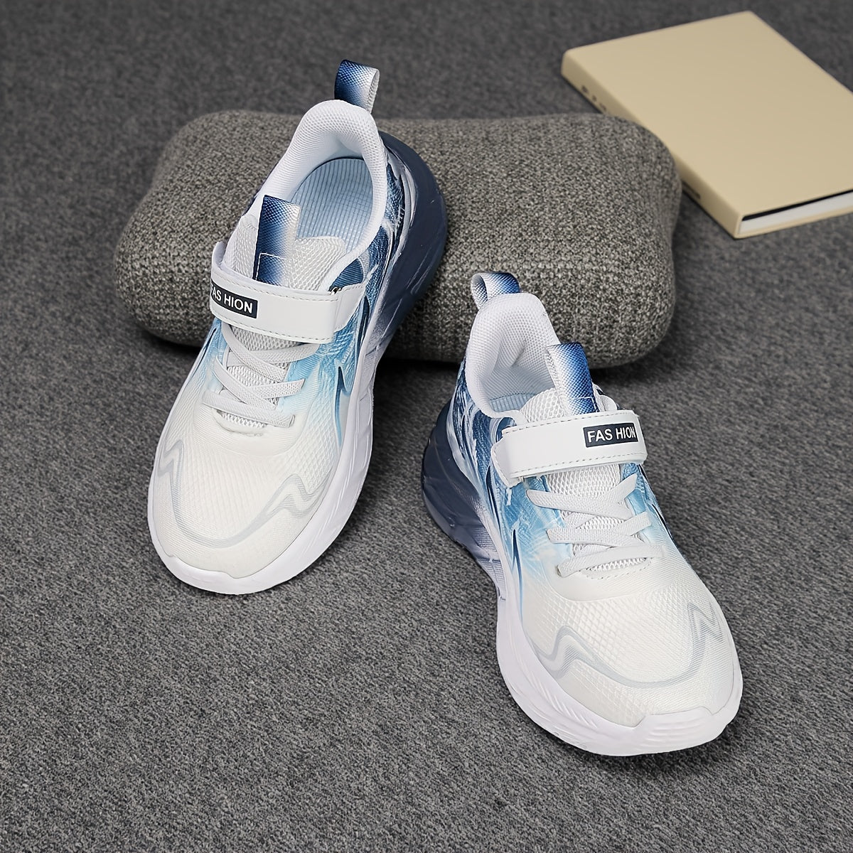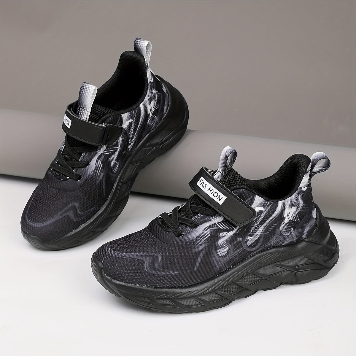 Youngsters' Low-Top Breathable Mesh Running Shoes with EVA Sole - Lightweight Comfortable Casual Outdoor Sneakers, White with Black Accents & Hook-and-Loop Closure for Boys and Girls, Kid Shoes, Youngsters Sports Footwear, St