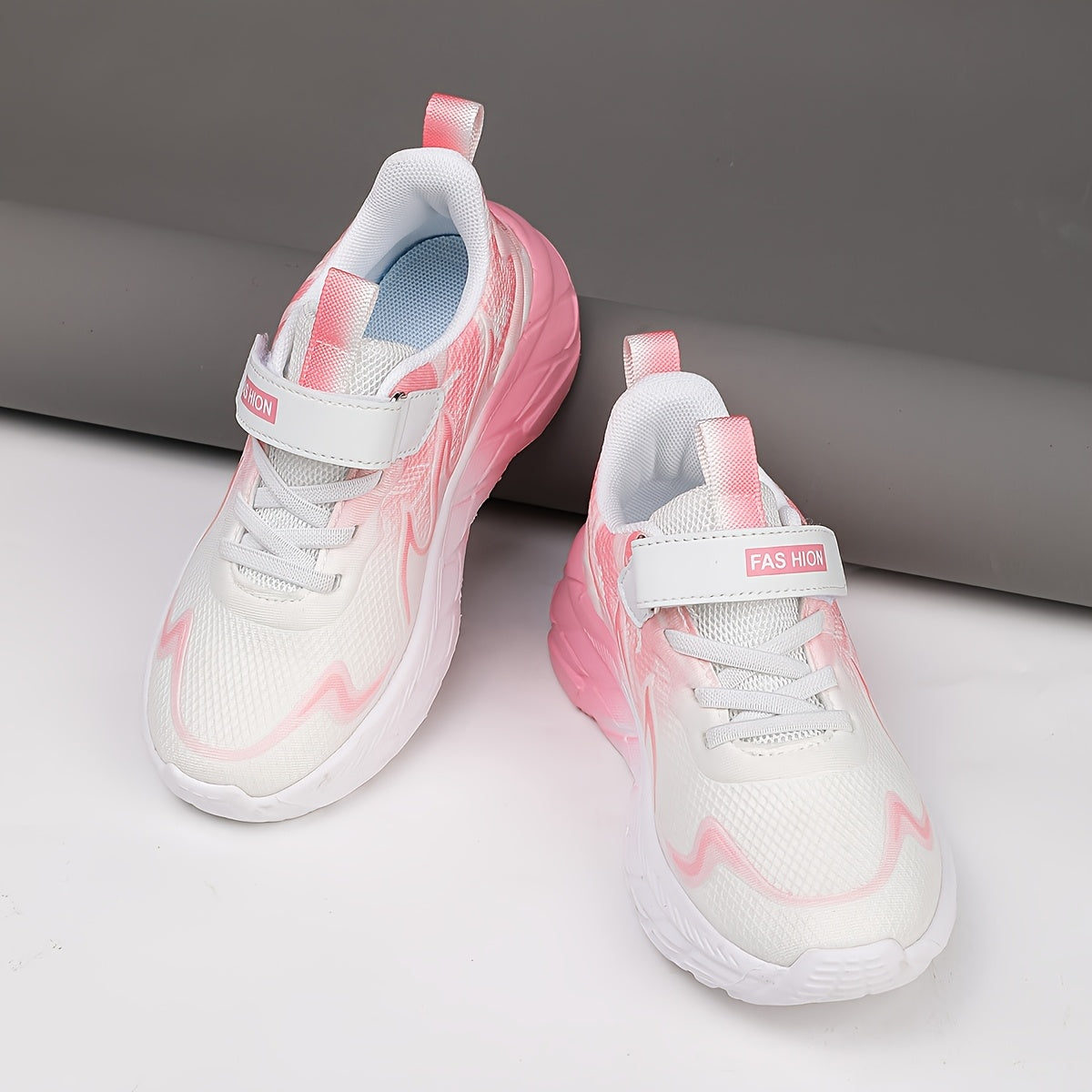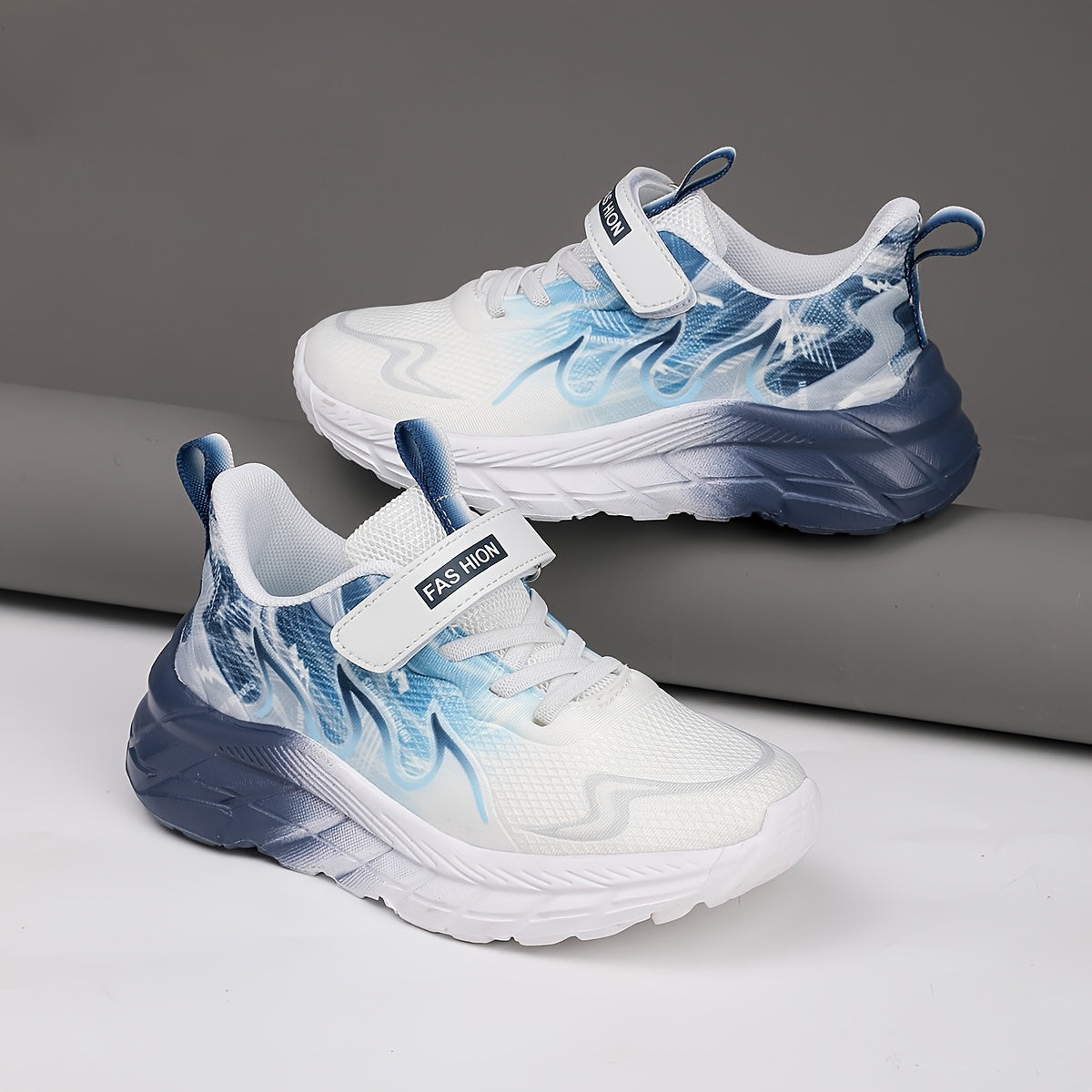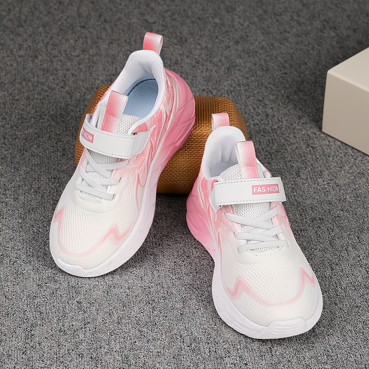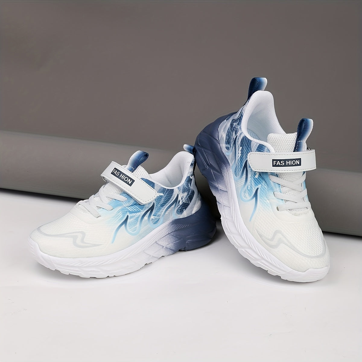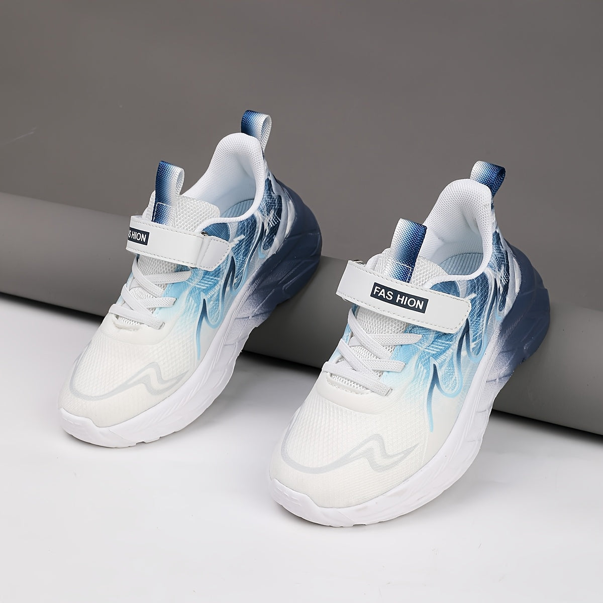 Youngsters' Low-Top Breathable Mesh Running Shoes with EVA Sole - Lightweight Comfortable Casual Outdoor Sneakers, White with Black Accents & Hook-and-Loop Closure for Boys and Girls, Kid Shoes, Youngsters Sports Footwear, St