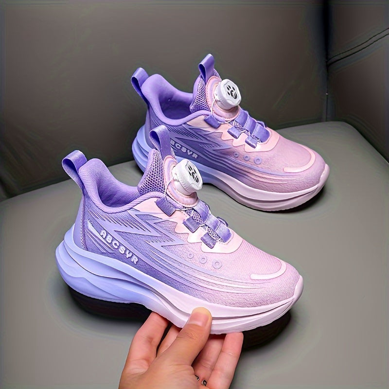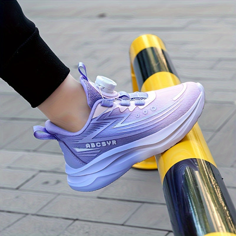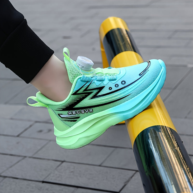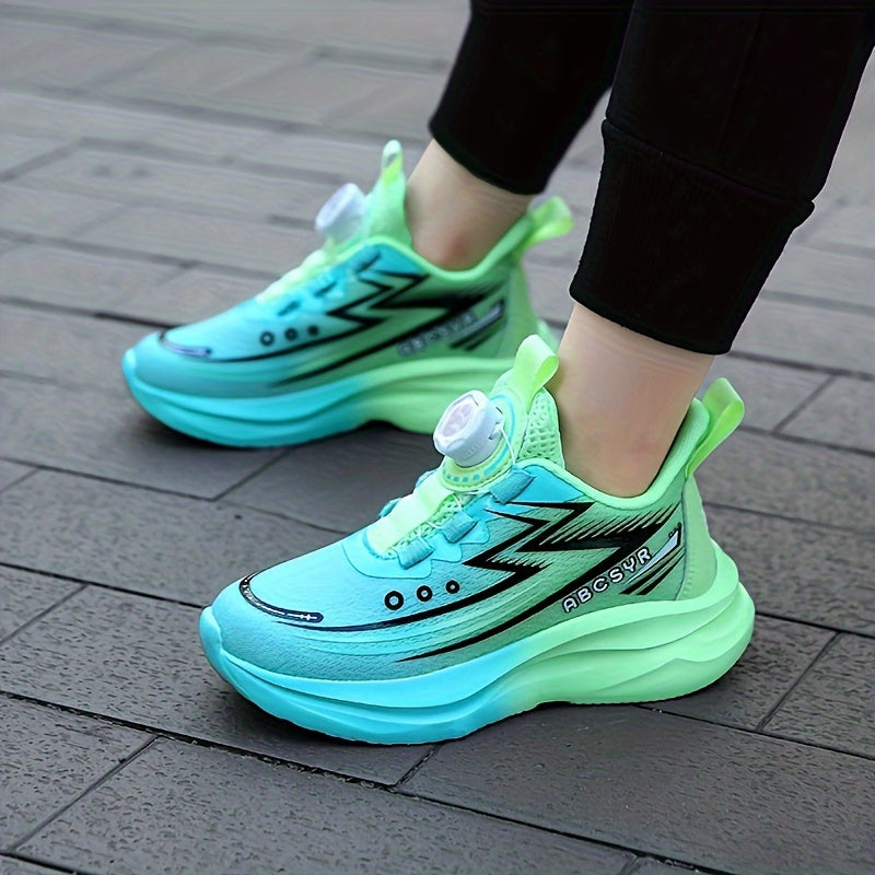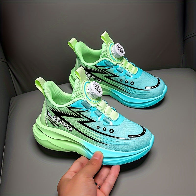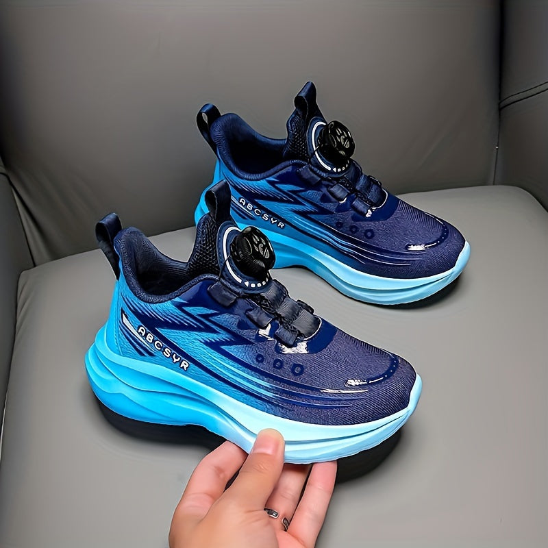Youngsters' Rotating Buckle Sneakers - Breathable Mesh Sneakers for Boys and Girls, Navy Blue with Striped Design, Lightweight EVA Sole, Casual & Running Wear, Hand or Dry Clean Only