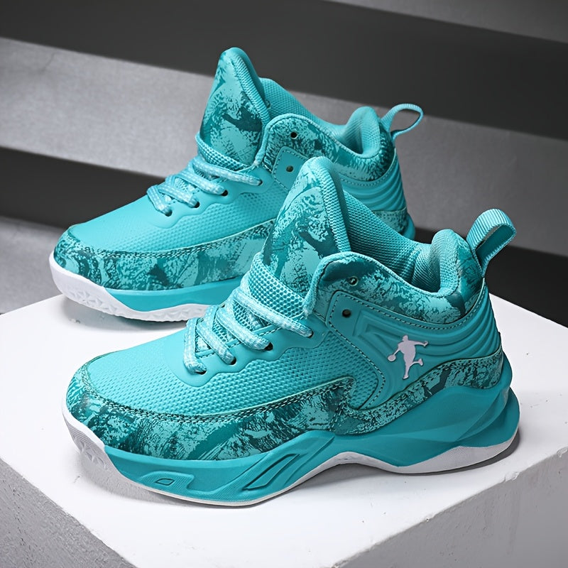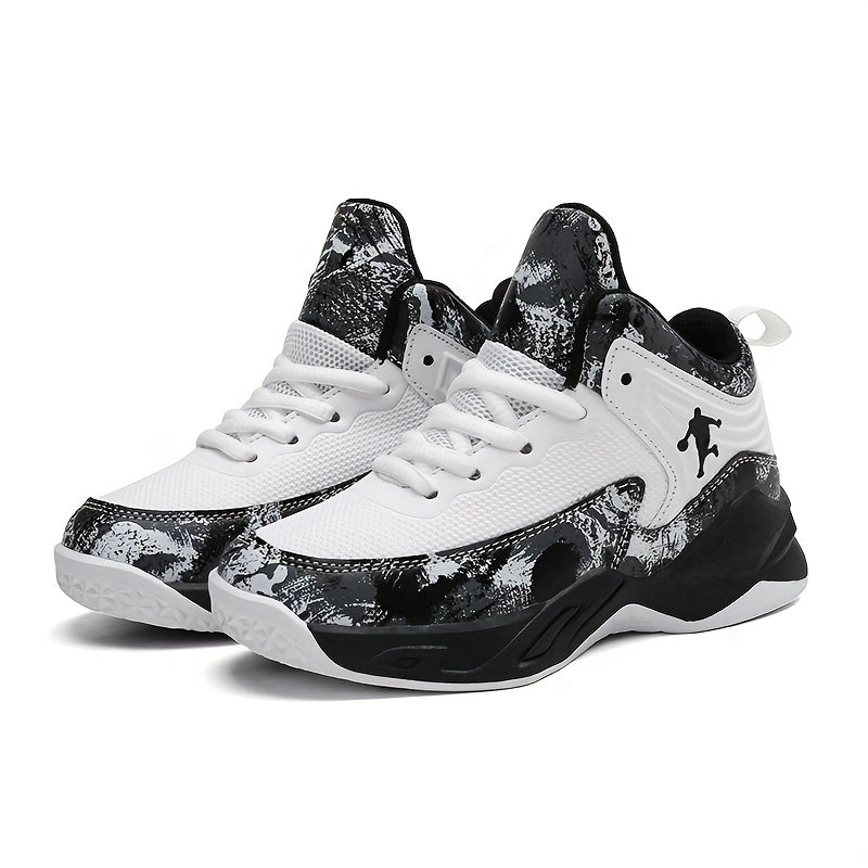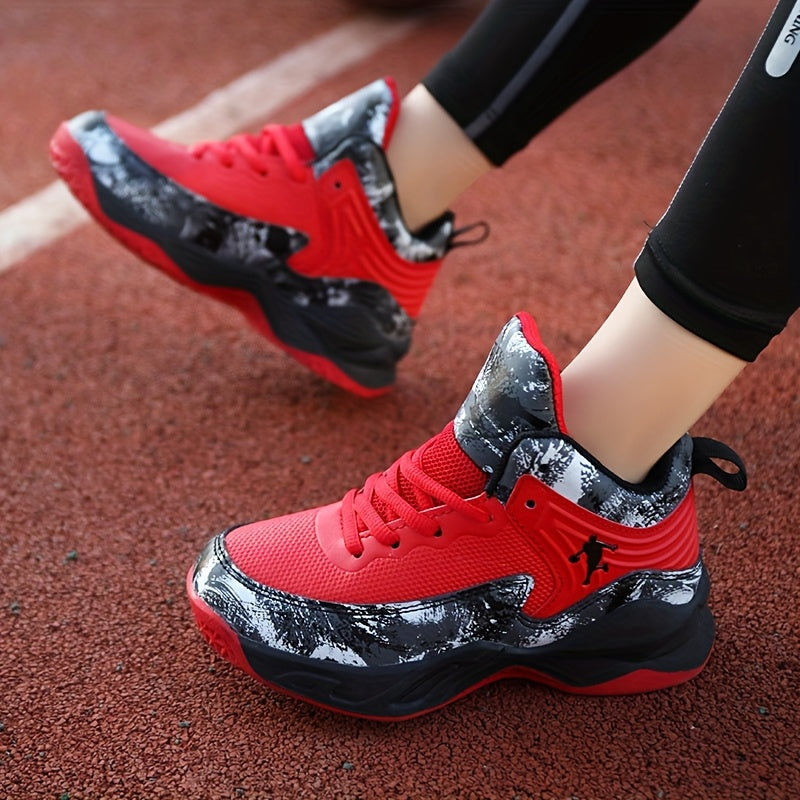 Youth Mid-Top PU Sports Sneakers - Comfortable, Lace-Up Basketball Shoes with Red & Black Design, TPR Sole for Outdoor Training, Running & Casual Wear, Basketball Shoes