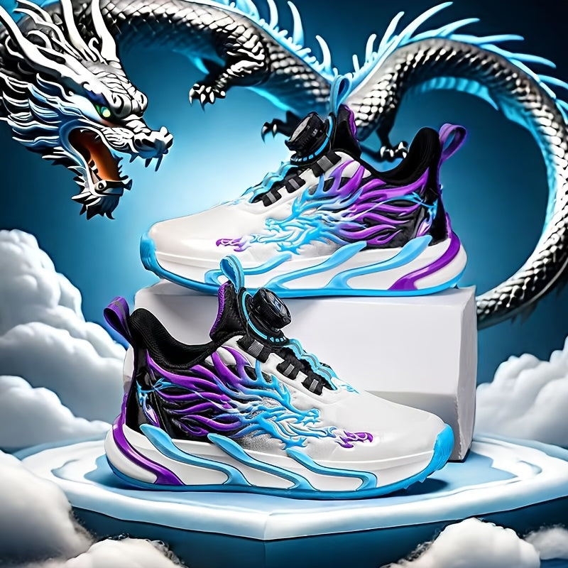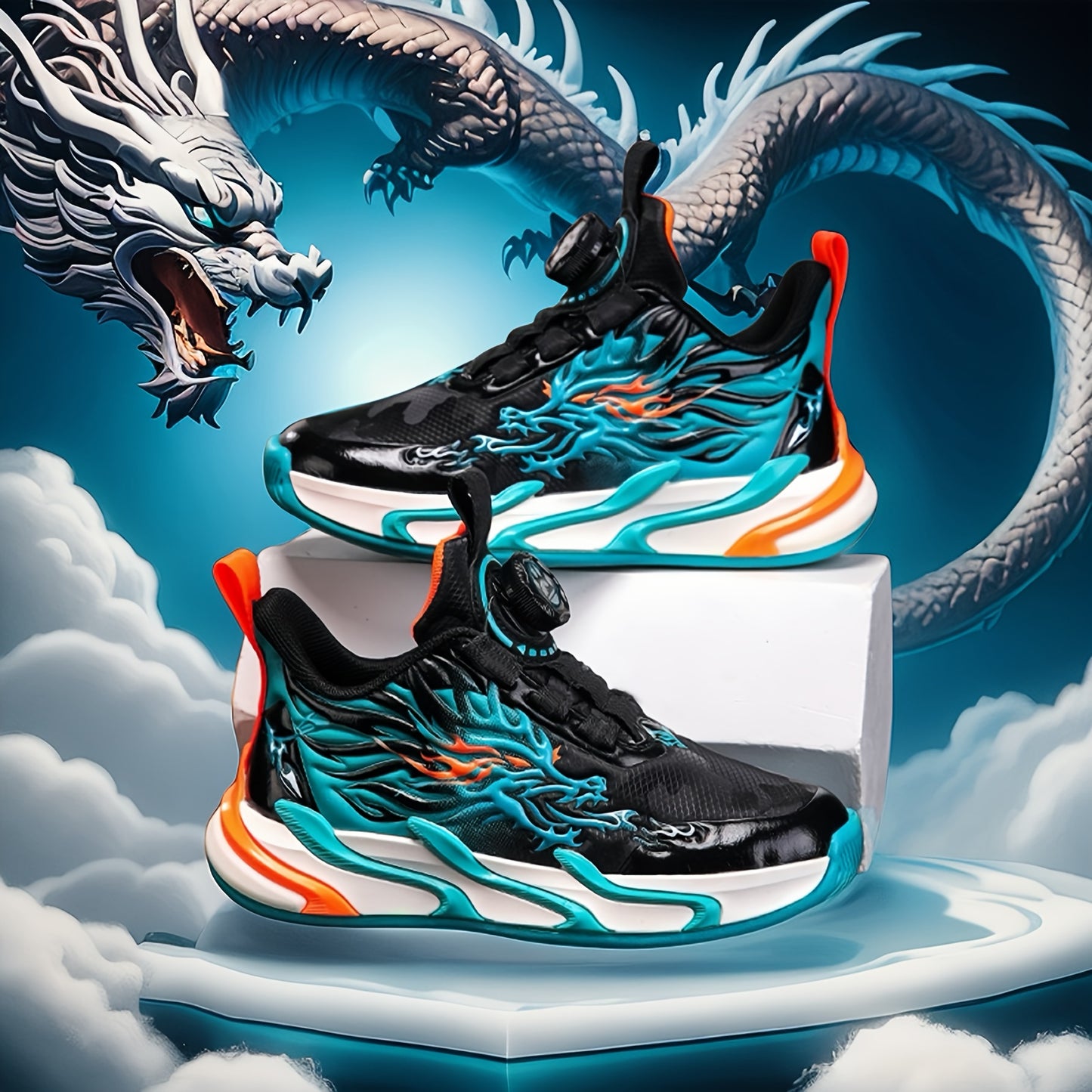 Youth Rotary Buckle Striped Cross-Training Sneakers - Low Top PU Upper, Fabric Inner, PVC Sole, Fabric Insole for Ages 14 and Under - Stylish Fitness Running Shoes for