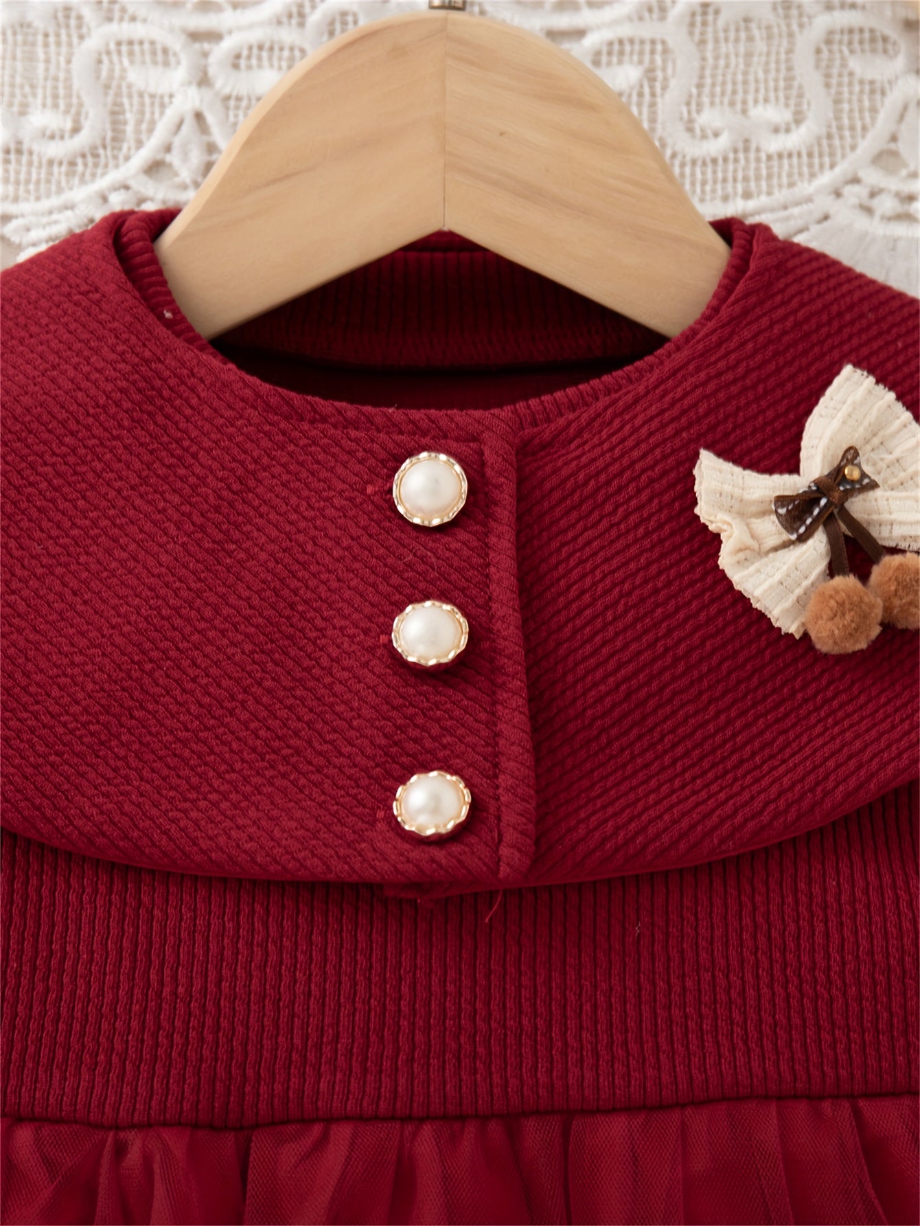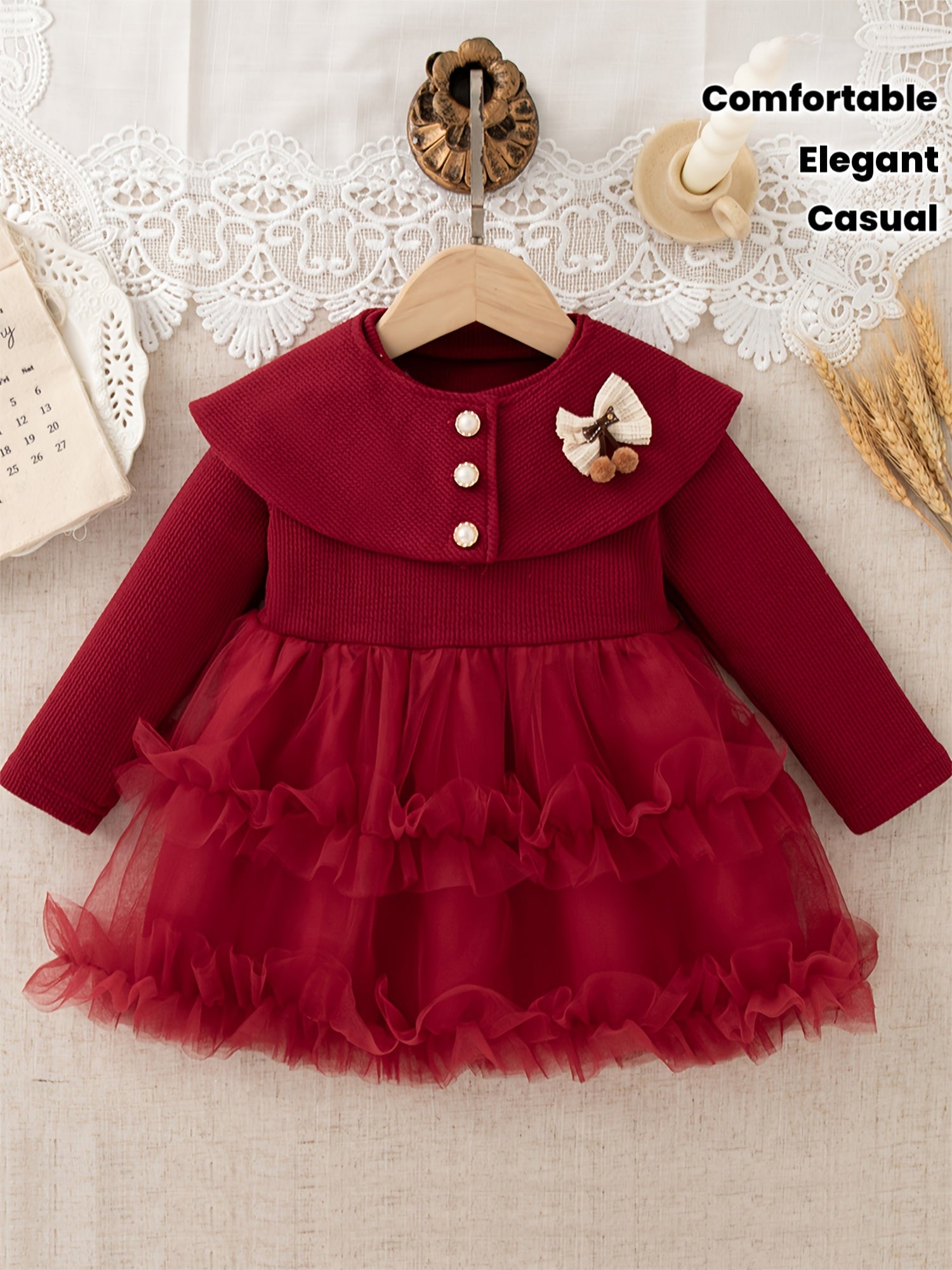 ZOSEYIES Girls' Elegant Red Princess Party Dress with Ruffled Hem & Puff Sleeves - Long Sleeve Winter Formal Outfit, A-Line Skirt with Ruffled Trim, Soft Non-Stretch Fabric for Christmas, New Year's, Birthday & Casual Attire
