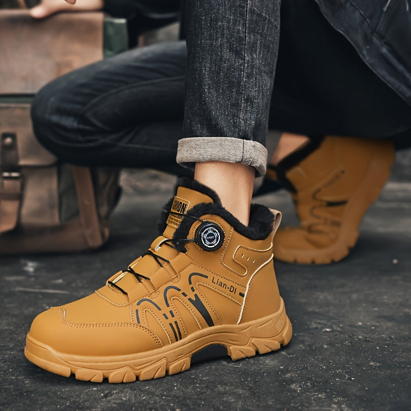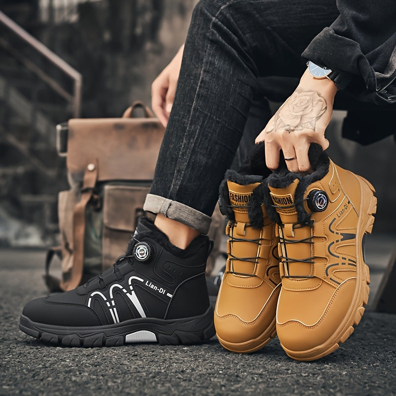 ZQBOBING Men'S Winter Hiking Boots - Slip-Resistant Traction, All-Season Outdoor Trekking Shoes with Cushioned EVA Insole - Lightweight Ankle Support for Mountain Climbing, Snowshoeing, Everyday - Brown/Black Accent - Lace-Up